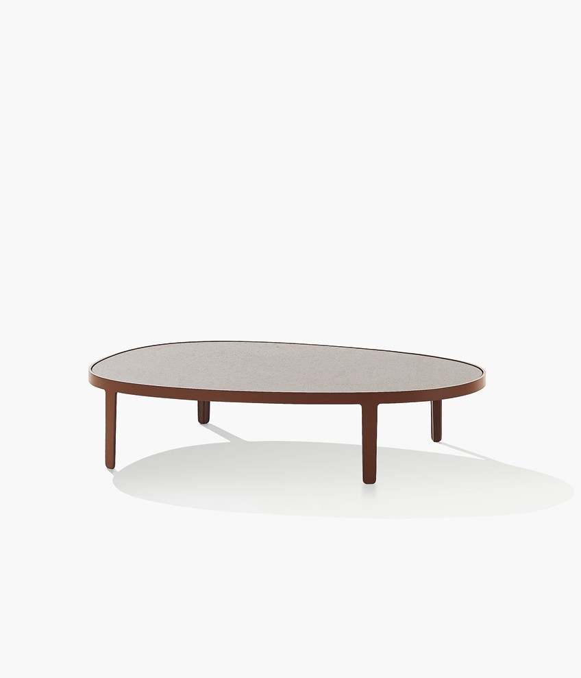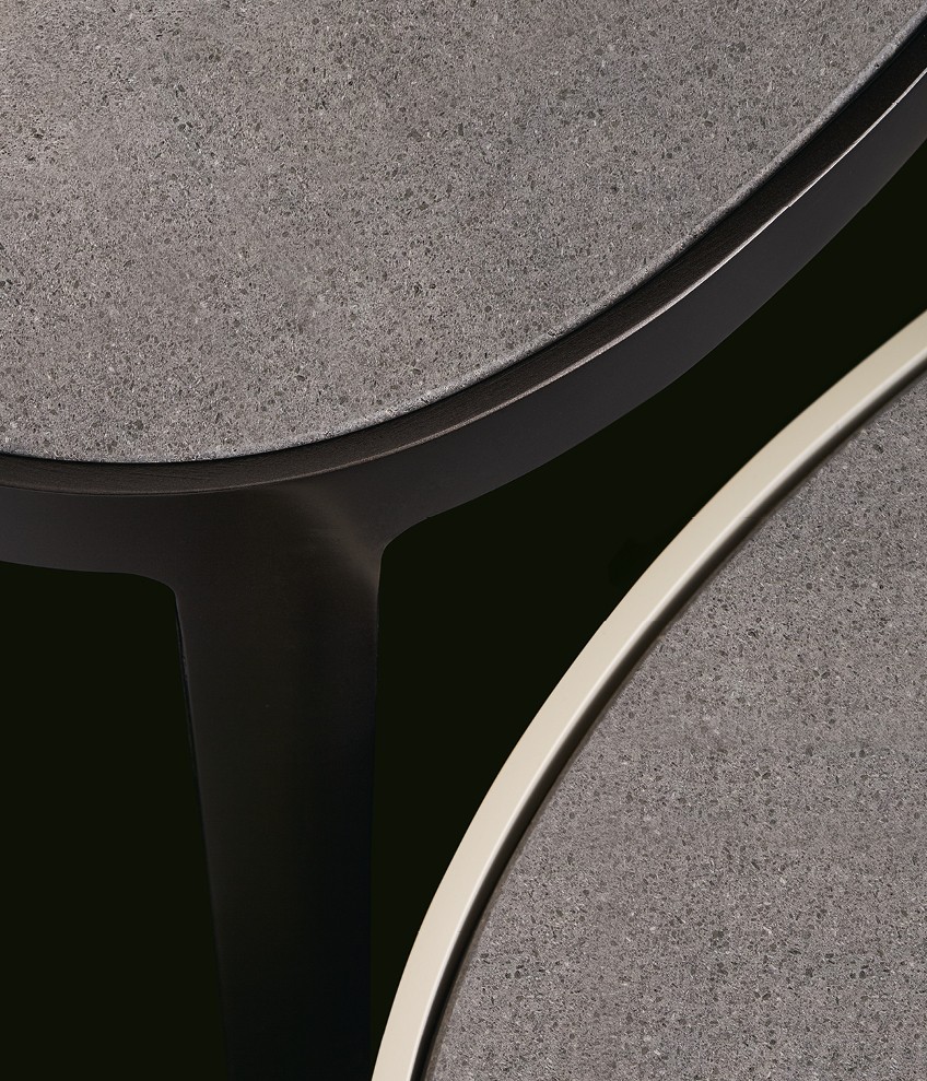 Коллекция мягкой мебели Mad Out, разработанная Марселем Вандерсом, дополняется одноименной серией журнальных столиков. Столешница из лавового камня двух разных оттенков, зависящих от очень высоких температур обжига, может быть украшена декором из стеклянной пудры, что создает интересный контраст между непрозрачными и блестящими поверхностями.