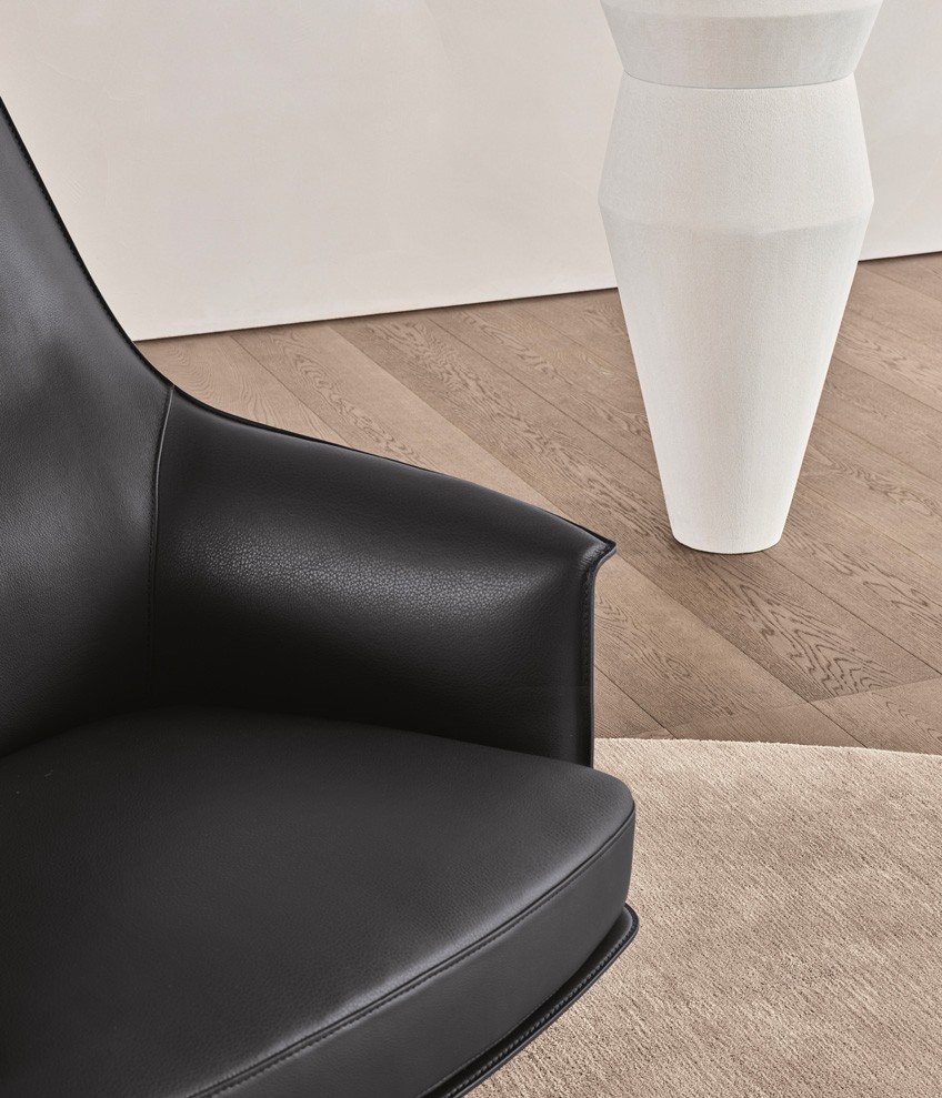 Кресло Stanford Lounge сочетает в себе поворотное металлическое основание и высокую спинку, а линии коллекции Stanford сглажены, что делает его более привлекательным. Специальная версия с кожаной обивкой имеет кожаную внешнюю отделку и кожаную внутреннюю отделку в тон.