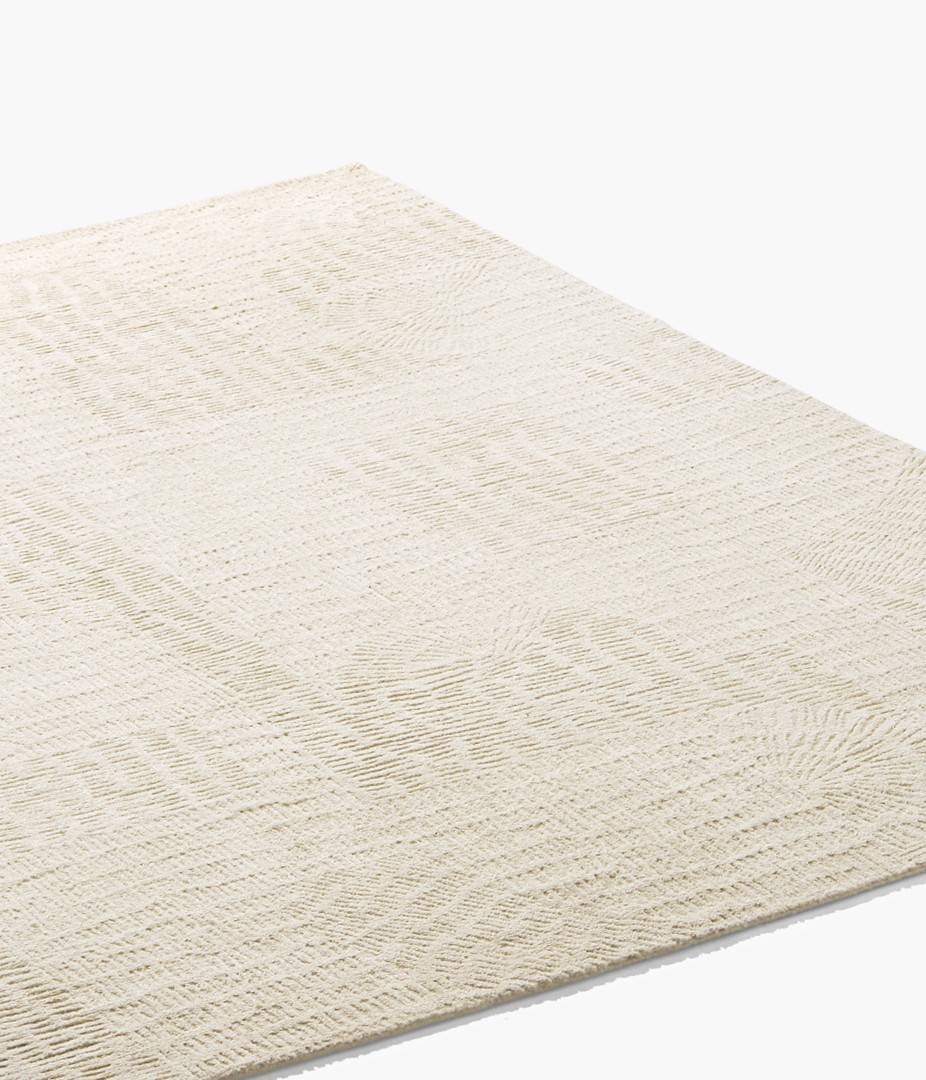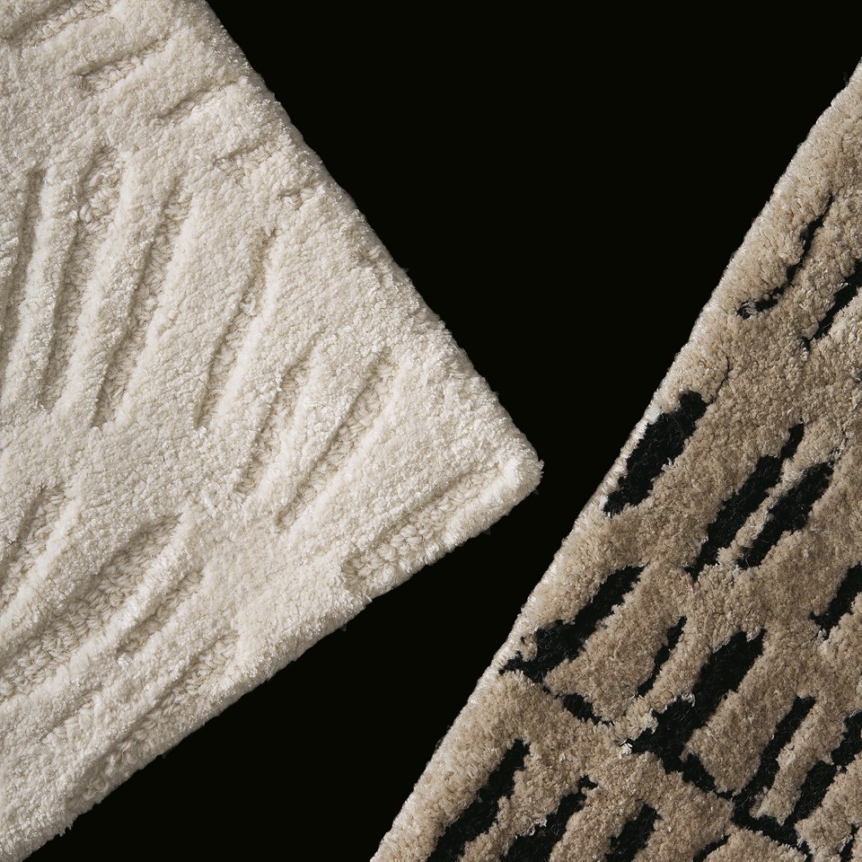 Ковер Trace, изготовленный из смеси шерсти и бамбукового шелка, производится методом жаккардового плетения. Характерный узор, доступный в двух цветах, создается за счет чередования петлевой букле основы и чесаного шелкового волокна.