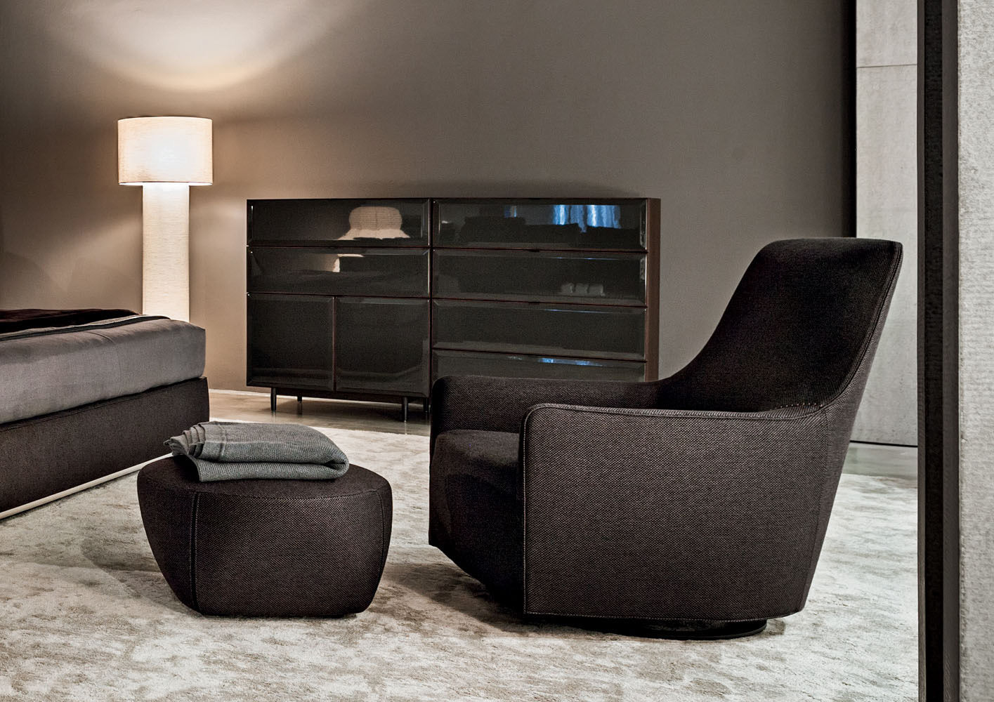 Описание: Кресло Portofino сочетает комфорт дивана с пропорциями индивидуального сиденья. Углублённая посадка и мягкие объёмы создают ощущение расслабленности и защищённости.