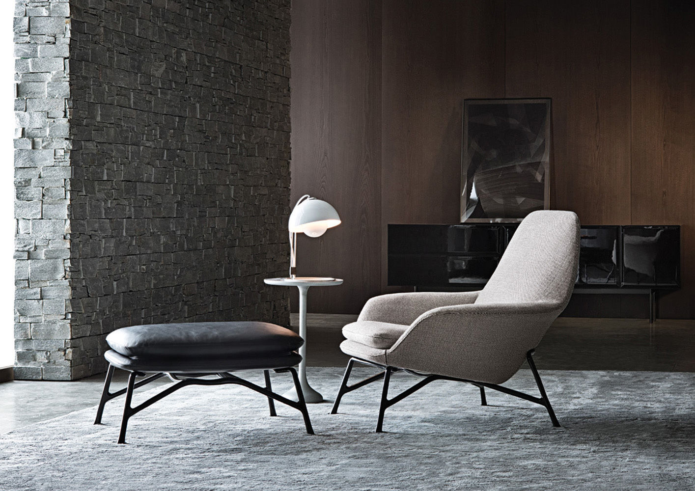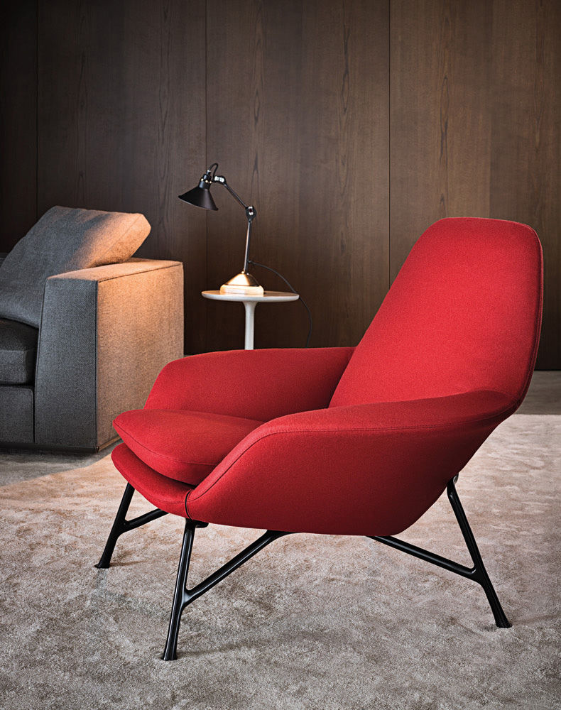 Материалы: каркас из стали с деревянными элементами, обивка — кожа или ткань