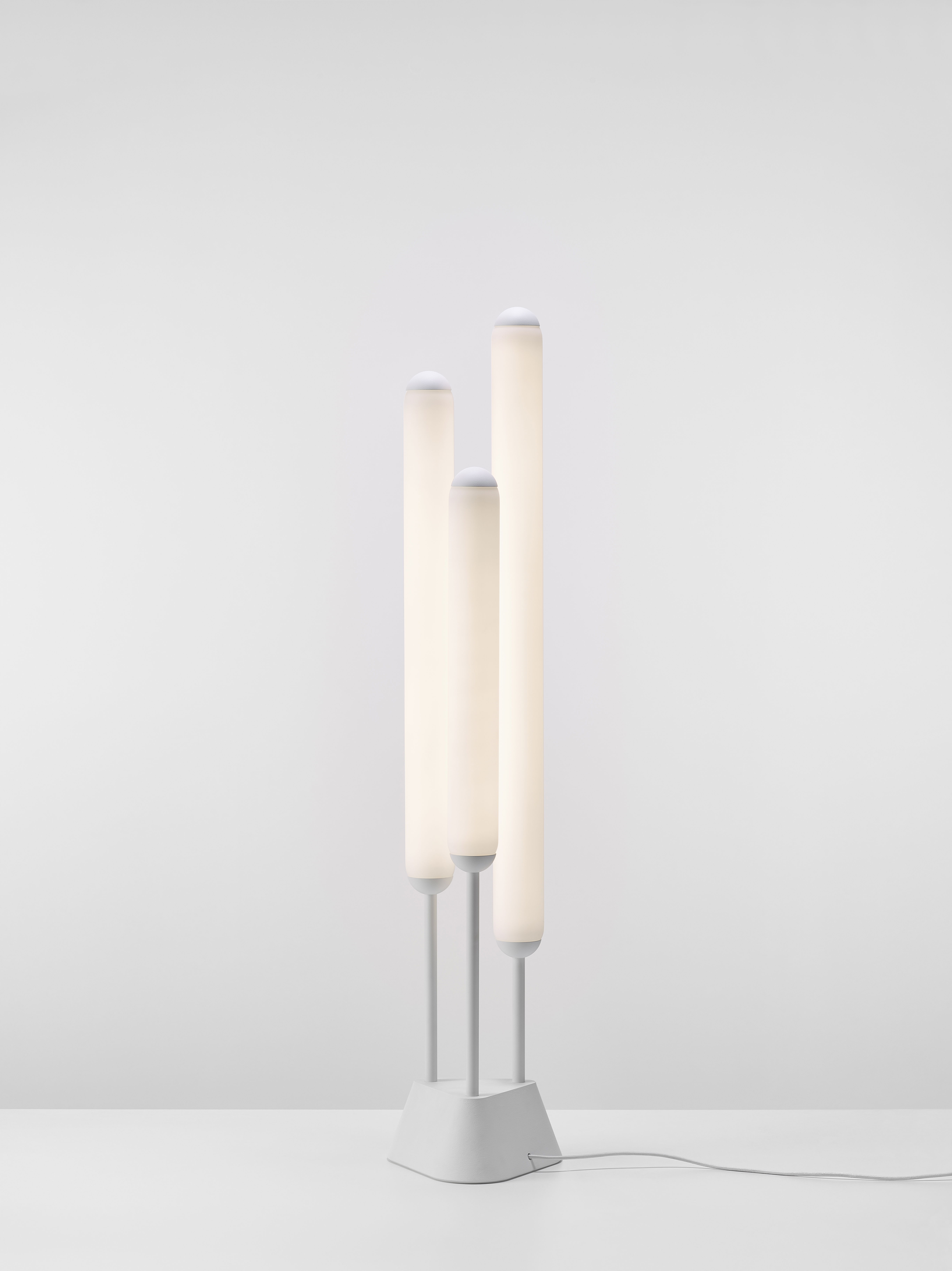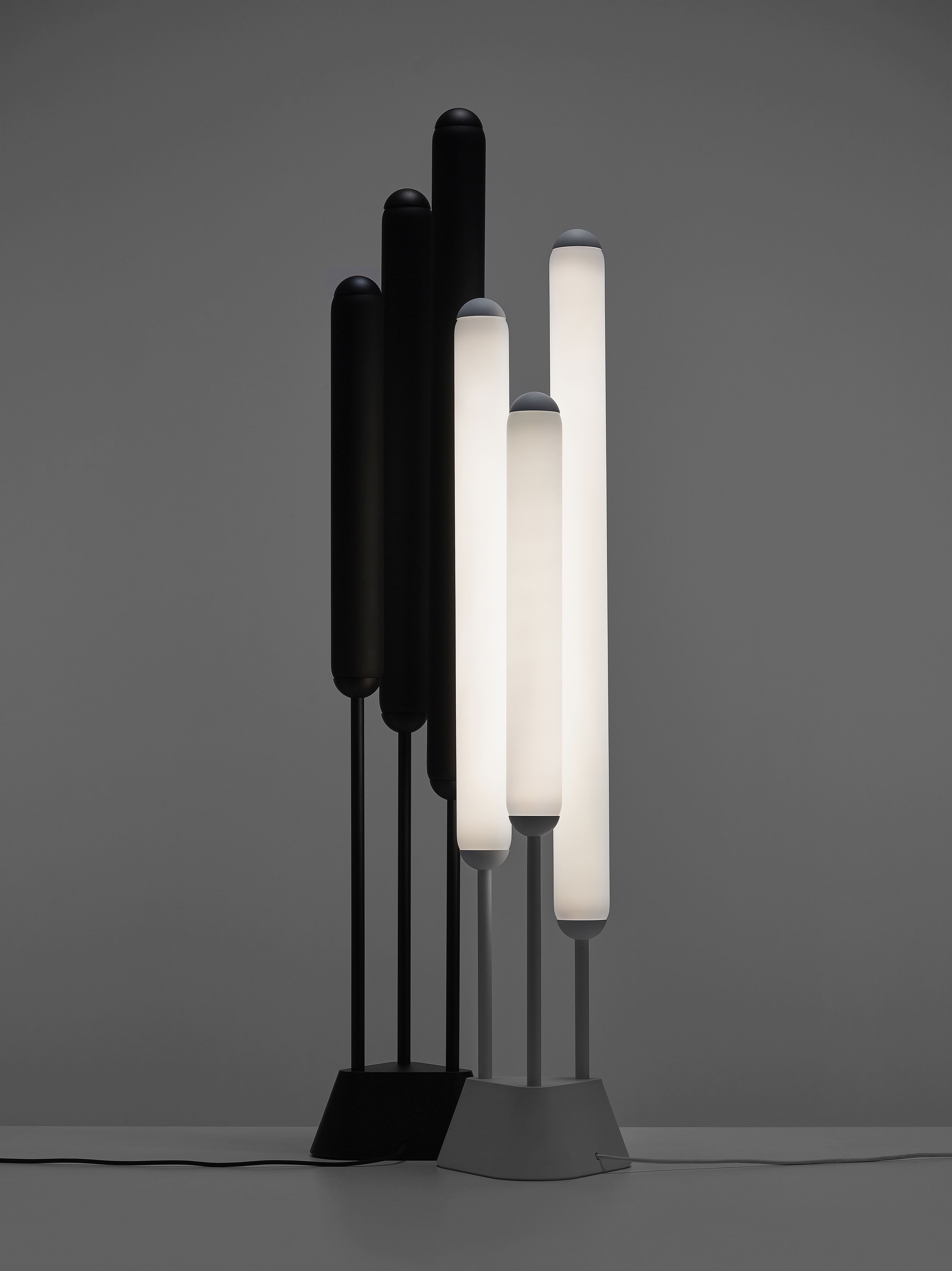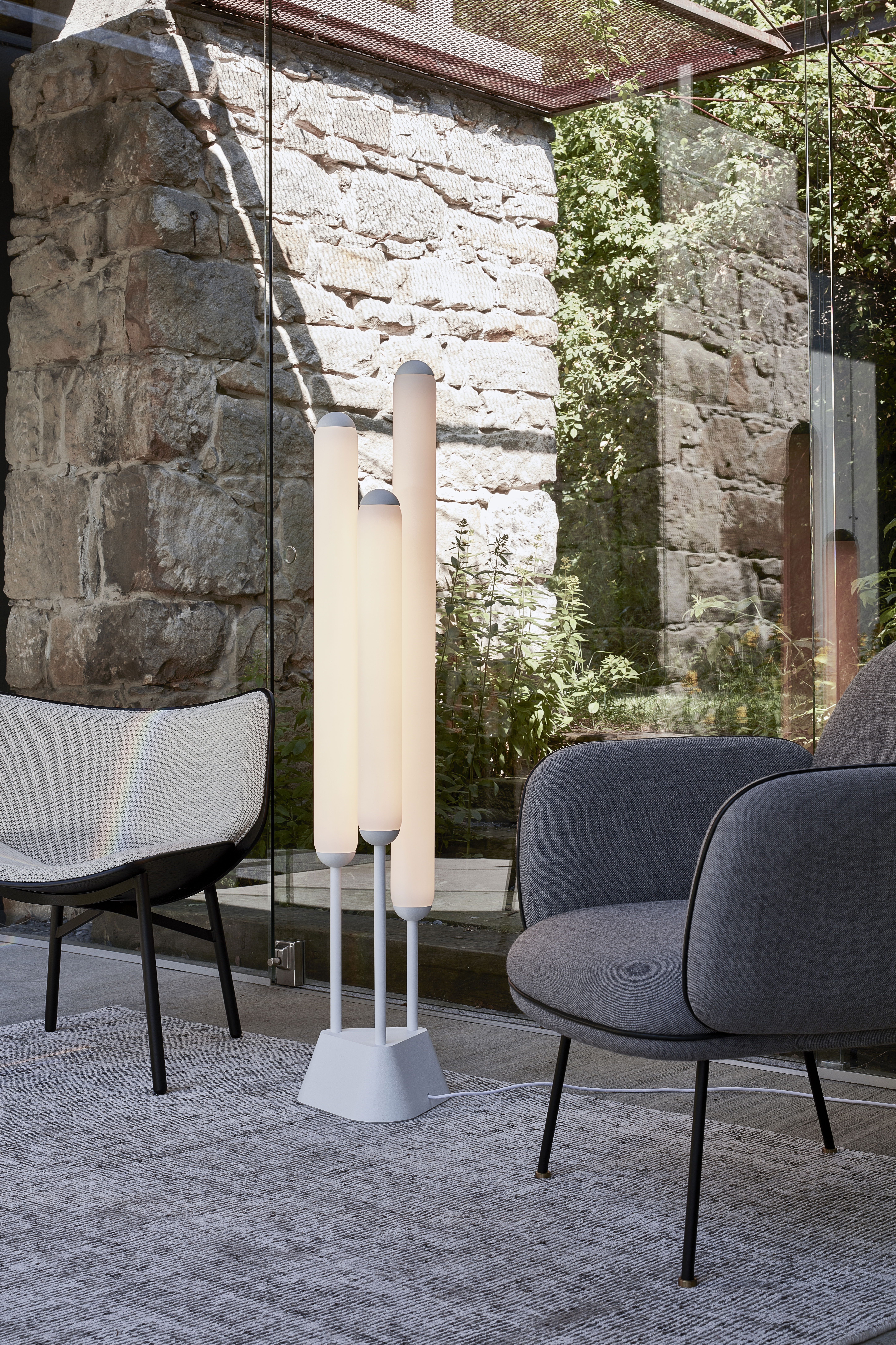 Светильник Puro Floor представлен в двух размерах с плафонами из матового опалового или дымчато-серого стекла. Световые трубки можно комбинировать в различных цветовых сочетаниях, создавая индивидуальные композиции. Мягкое рассеянное свечение наполняет пространство динамикой и уютом, а матовое покрытие добавляет лёгкий акцент выразительности.
