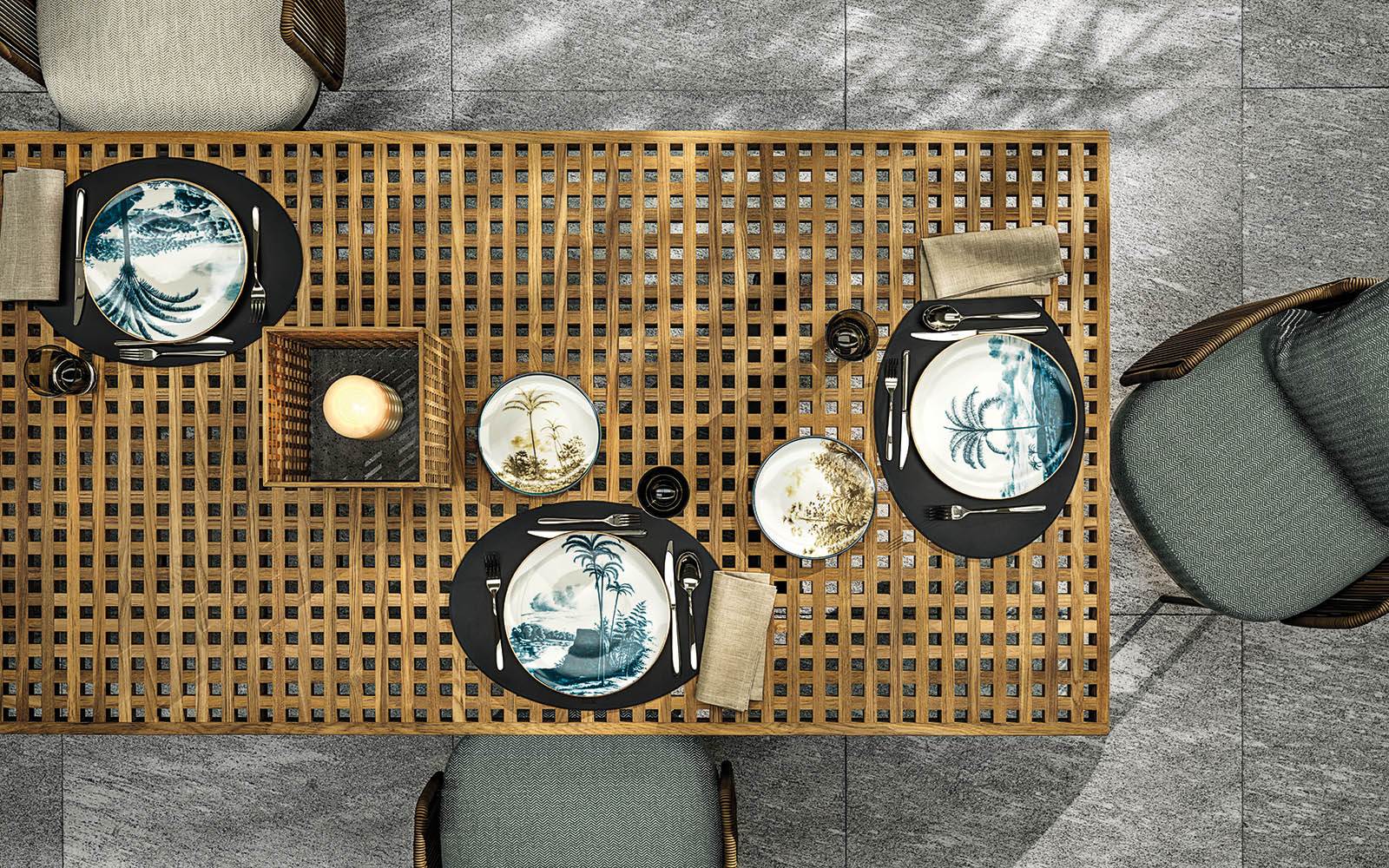 Quadrado Table от итальянского бренда Minotti, разработанный бразильским архитектором Марсио Коганом и студией Studio MK27, представляет собой элегантный обеденный стол для использования на открытом воздухе. Он сочетает в себе минималистичный дизайн и высококачественные материалы, вдохновлённые морской тематикой.