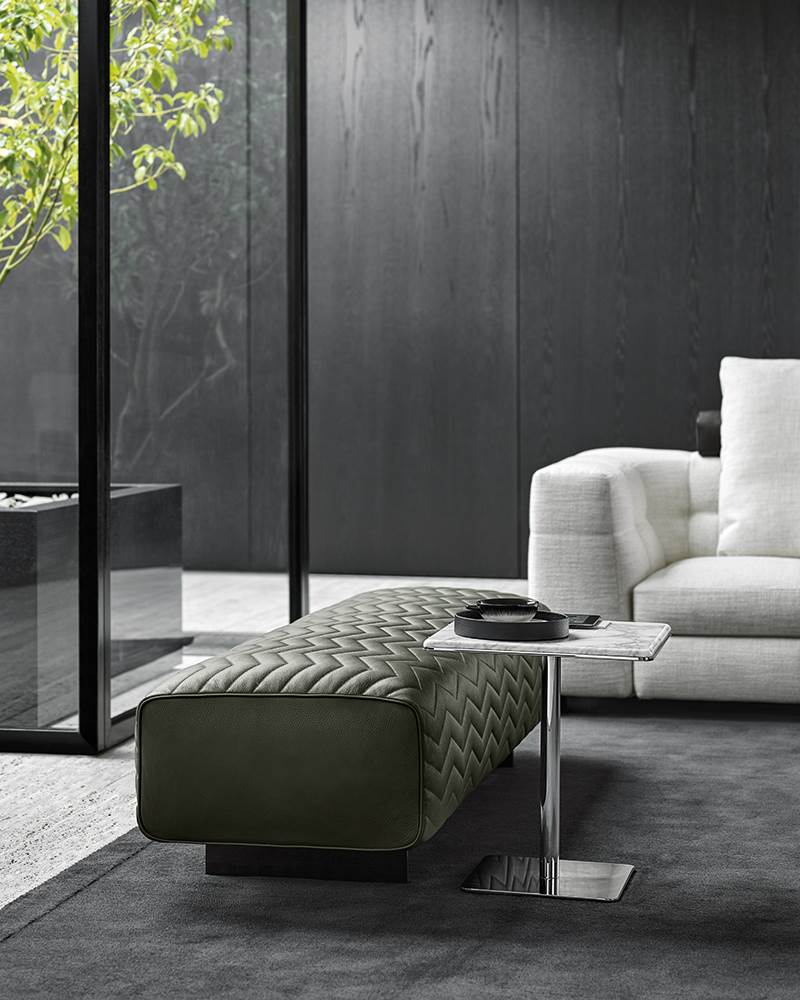 Quincy Chevron — элегантная скамья от Minotti, разработанная дизайнером Родольфо Дордони, представляет собой современное сочетание минималистичного дизайна и высококачественного исполнения.