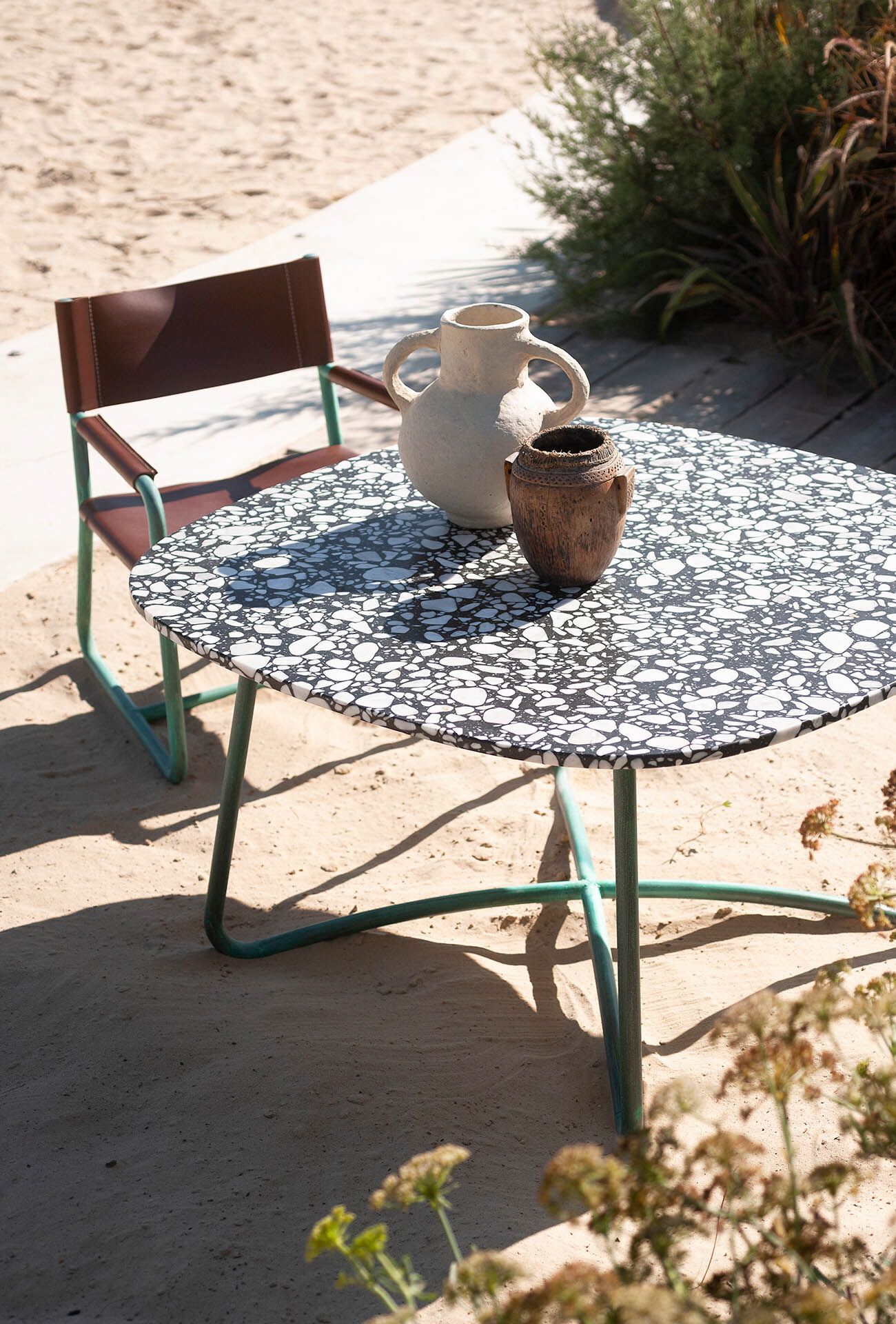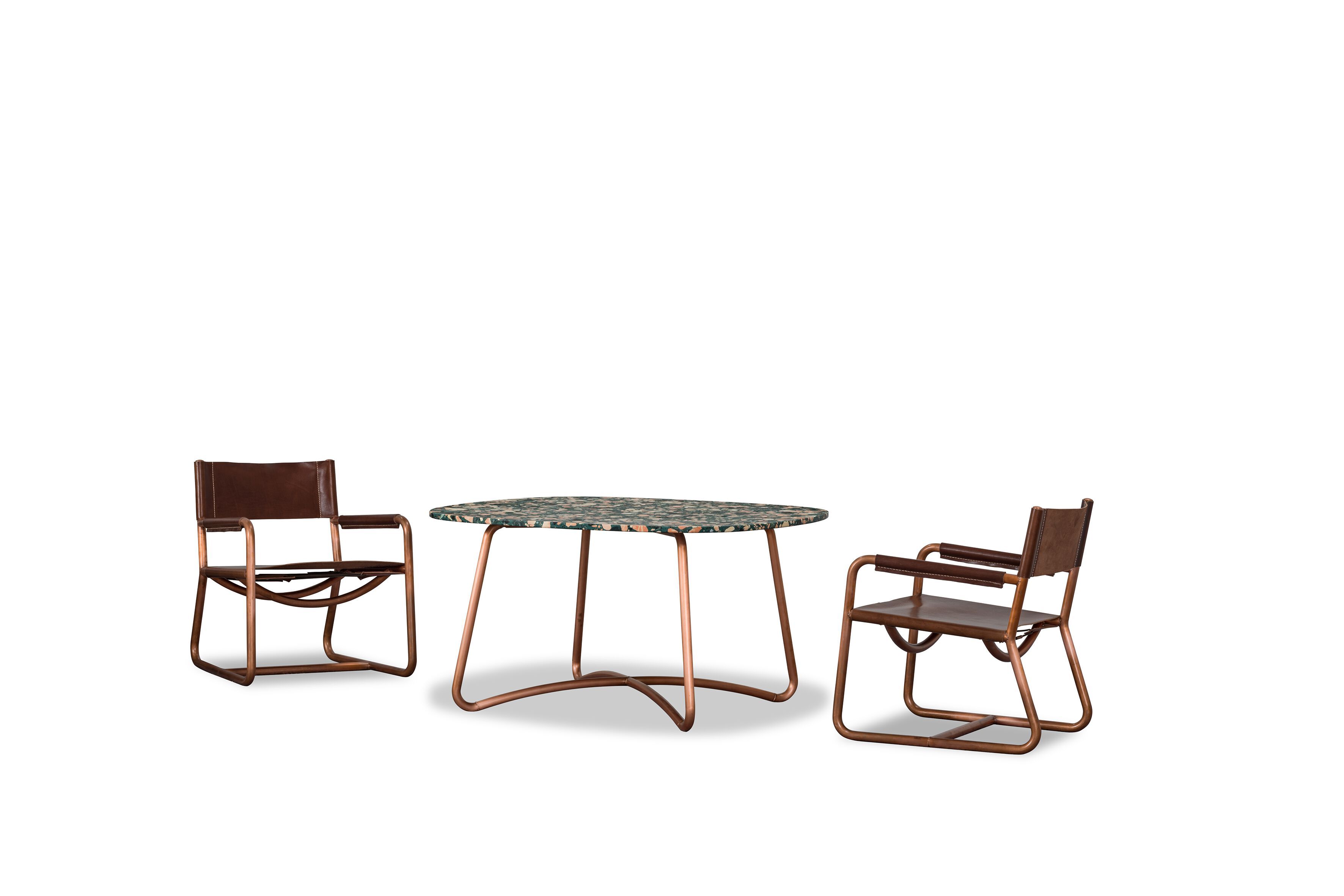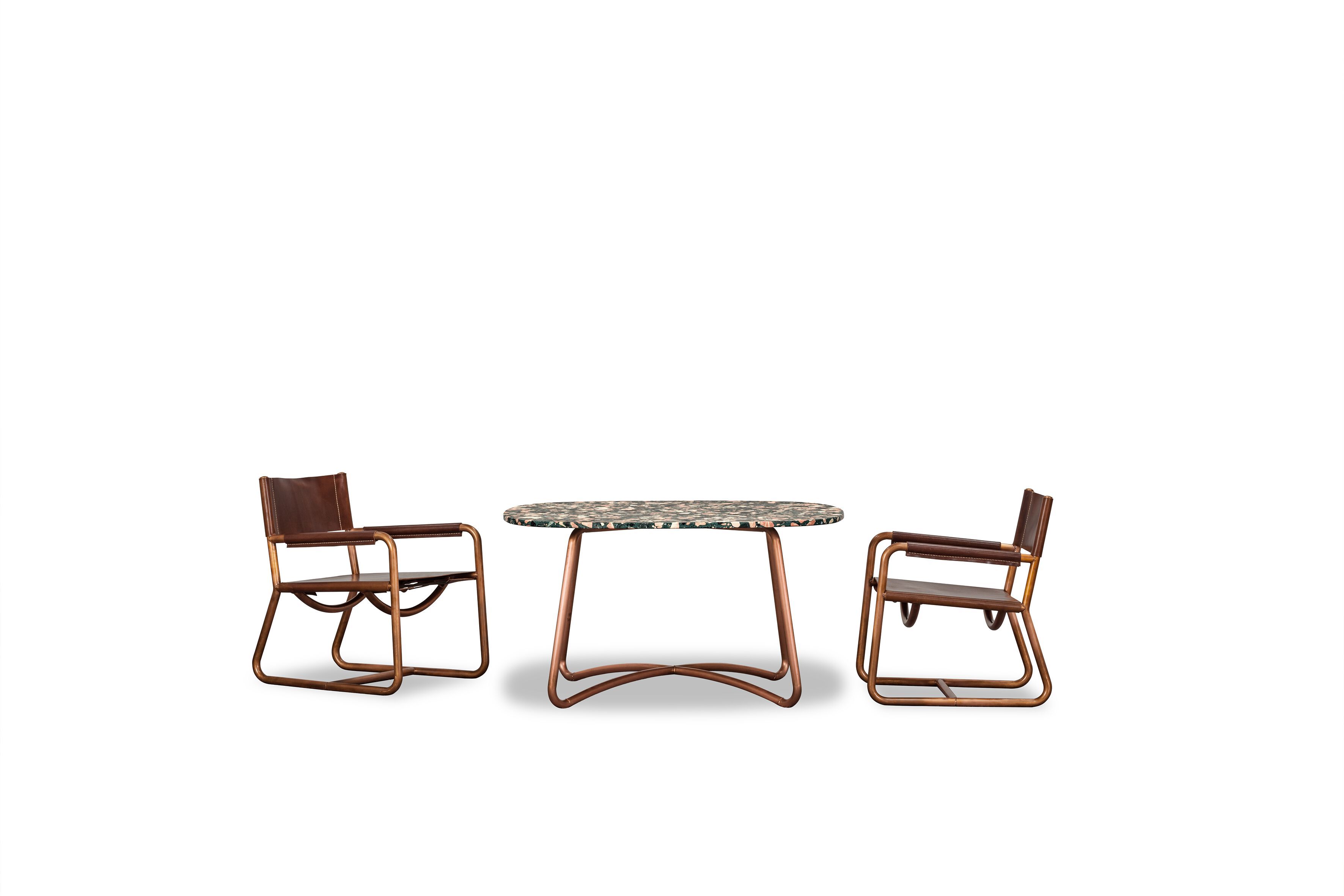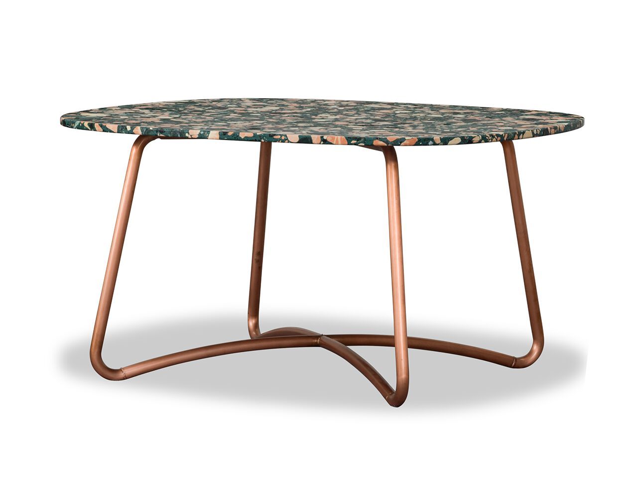 Rimini — стол с ножками из медных труб и столешницей из палладиевого камня, дизайн Paola Navone.
