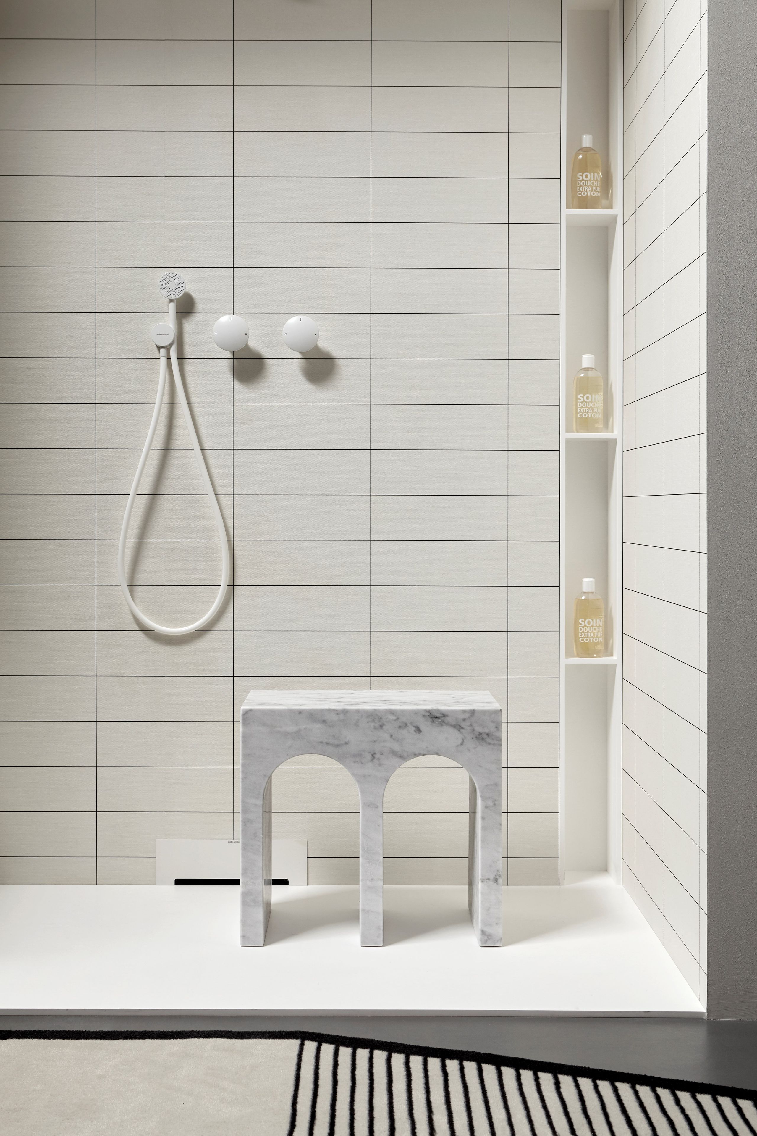 Мрамор Каррара (Bianco Carrara) — классический выбор коллекции, подчёркивающий её монументальность и элегантность