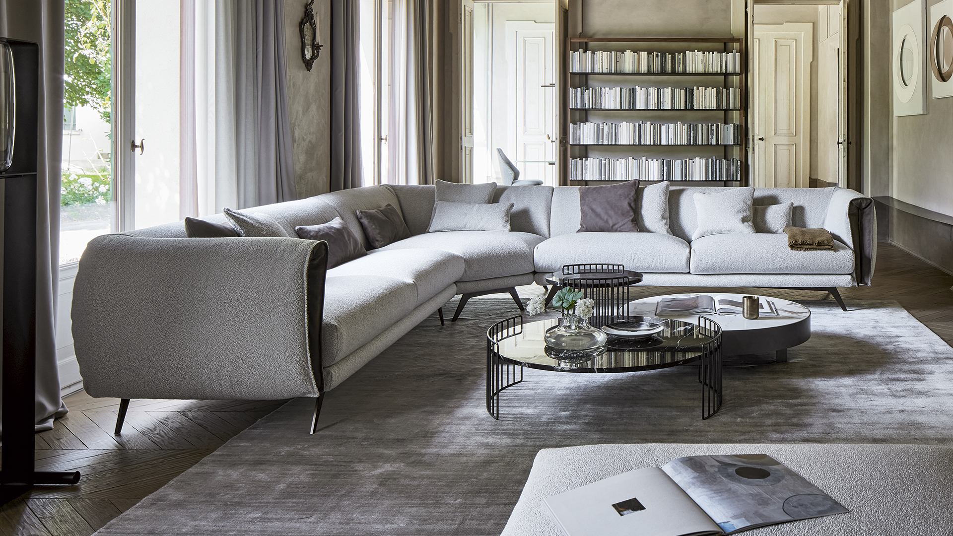 Диван Saddle разработан для того, чтобы предложить максимальную элегантность, сочетая современный стиль с функциональной эстетикой. Его спинка и подлокотники, напоминающие форму седла, создают ощущение мягкости и уюта, в то время как мягкое сиденье усиливает комфорт. Эстетический эффект подчеркивается кожаной вставкой внутри подлокотников, которая акцентирует переднюю часть и позволяет играть с материалами и их комбинациями, создавая оптический эффект. Чехол из ткани или кожи полностью съемный, а металлические ножки придают легкость и современность. Модульная конструкция дивана позволяет создавать различные конфигурации, подходящие для любых интерьеров