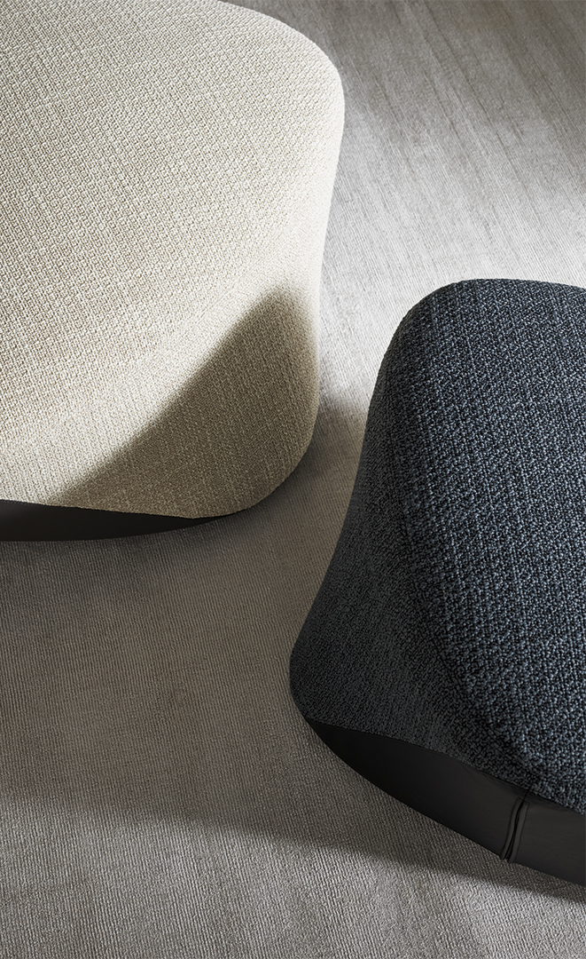 Пуфы Seki, с их изысканной и скульптурной формой, представляют собой удивительное сочетание природной эстетики и мастерства дизайна. Их форма, напоминающая отшлифованные камни, создаёт эффект текучести, как будто они были обработаны временем, водой и ветром. Силуэт пуфов меняется в зависимости от угла обзора, что придаёт им динамичность и уникальность. Обивка пуфов разделена на две части, создавая эффект «прибоя» на нижней части и контрастируя с верхней, которая имитирует текстуру и формы камня. Они доступны в двух размерах и могут быть обиты тканью или кожей, с возможностью выбора варианта с комбинированной обивкой из двух материалов.