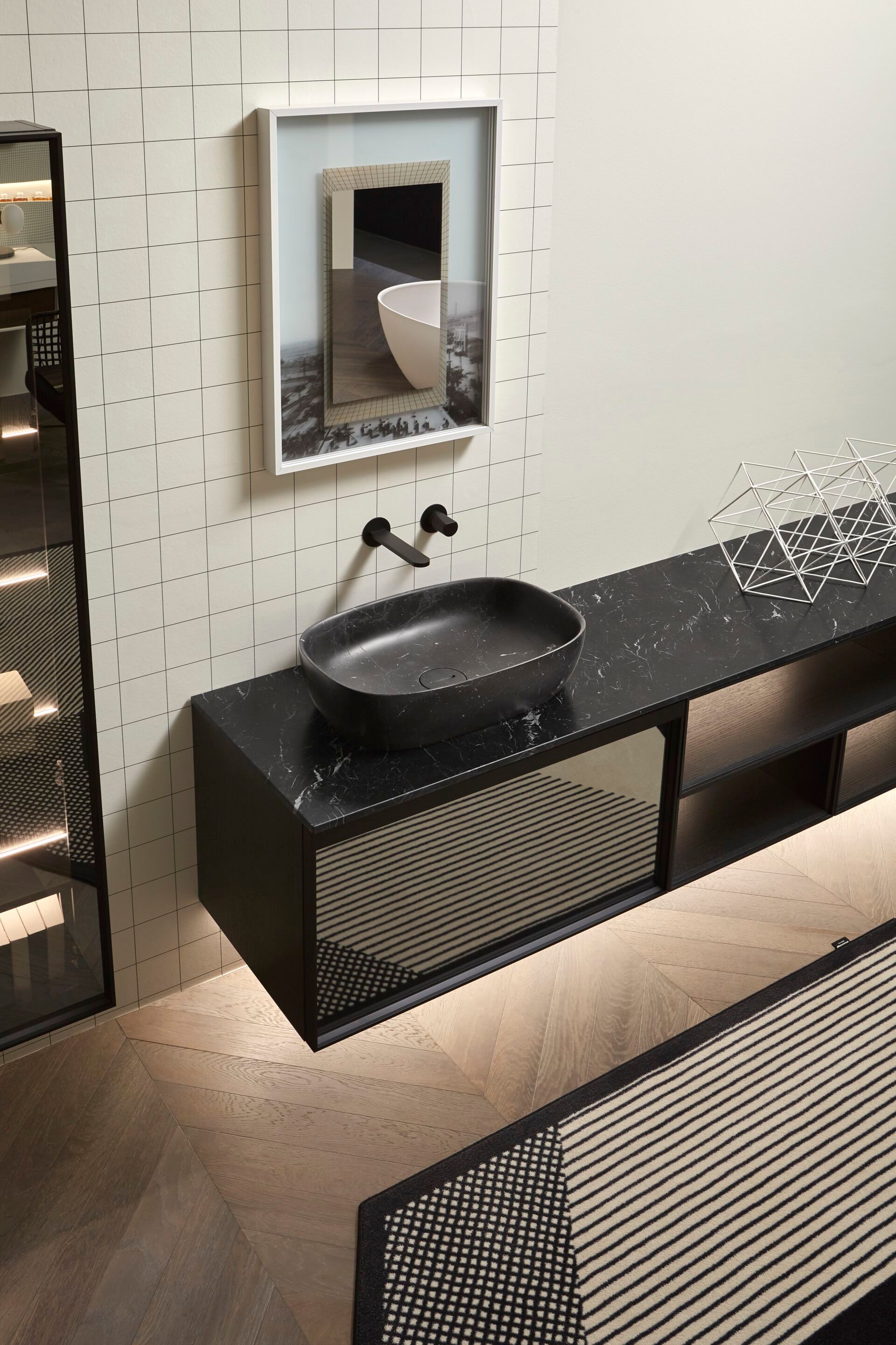 Раковина Senso отличается плавными, органичными линиями, которые смягчают строгую прямоугольную форму. Такой силуэт делает модель визуально лёгкой и деликатной, несмотря на её архитектурную выразительность. Она одинаково гармонично вписывается как в минималистичные, так и в более эклектичные интерьеры.
