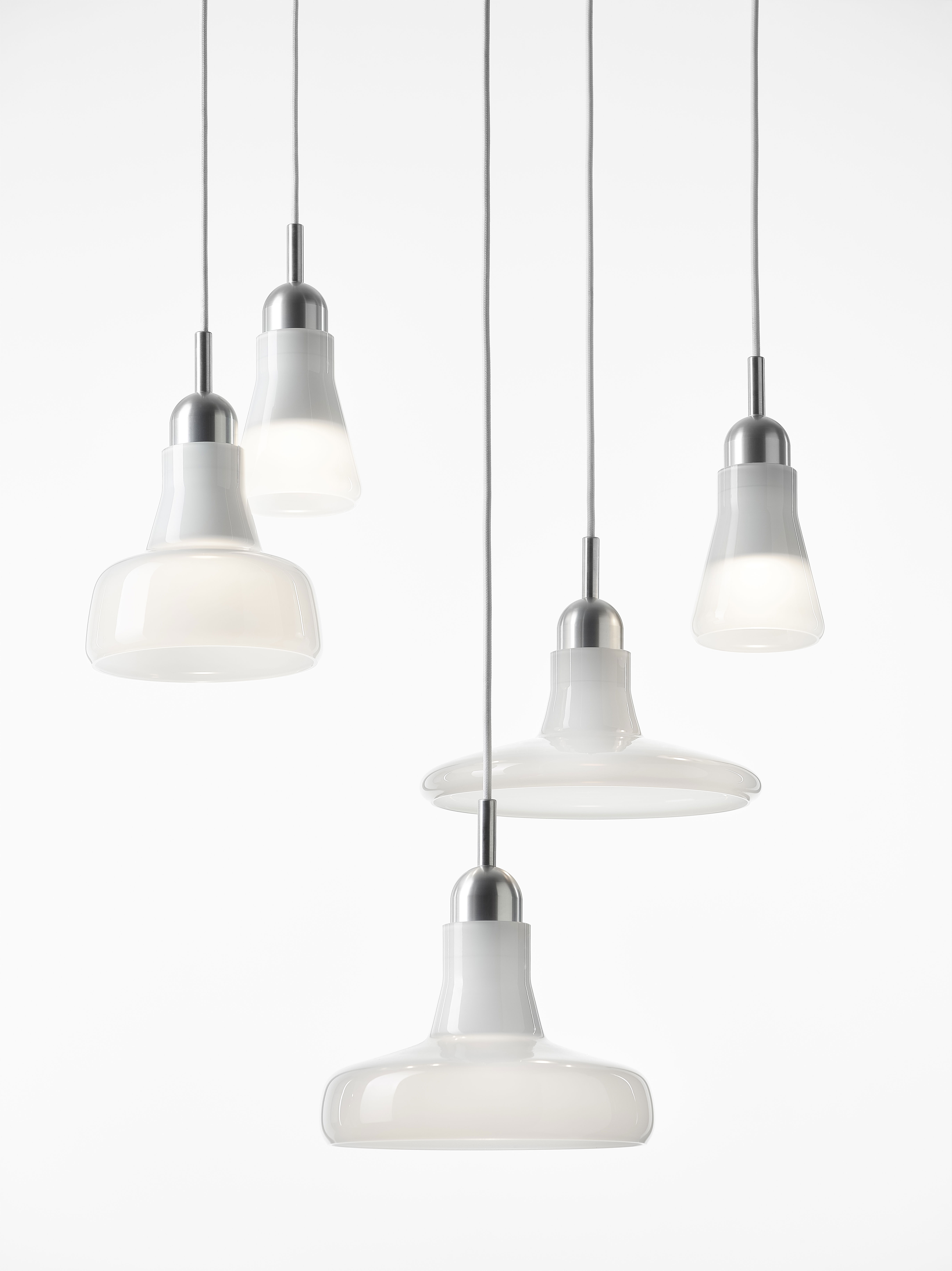 Коллекция включает подвесные светильники четырех форм с широкой палитрой цветовых решений. Их можно использовать как самостоятельные элементы освещения или объединять в разнообразные композиции в зависимости от задач проекта.