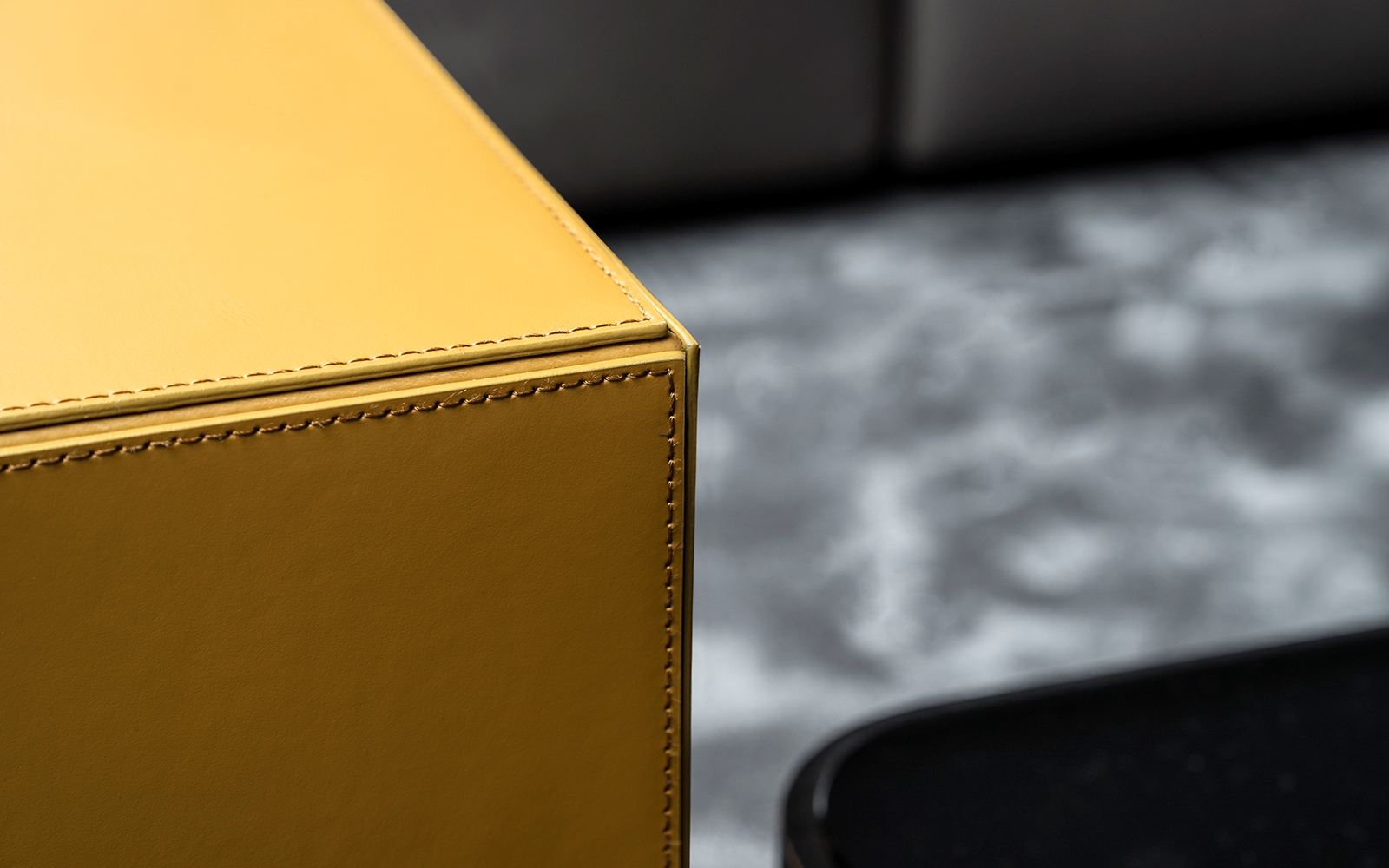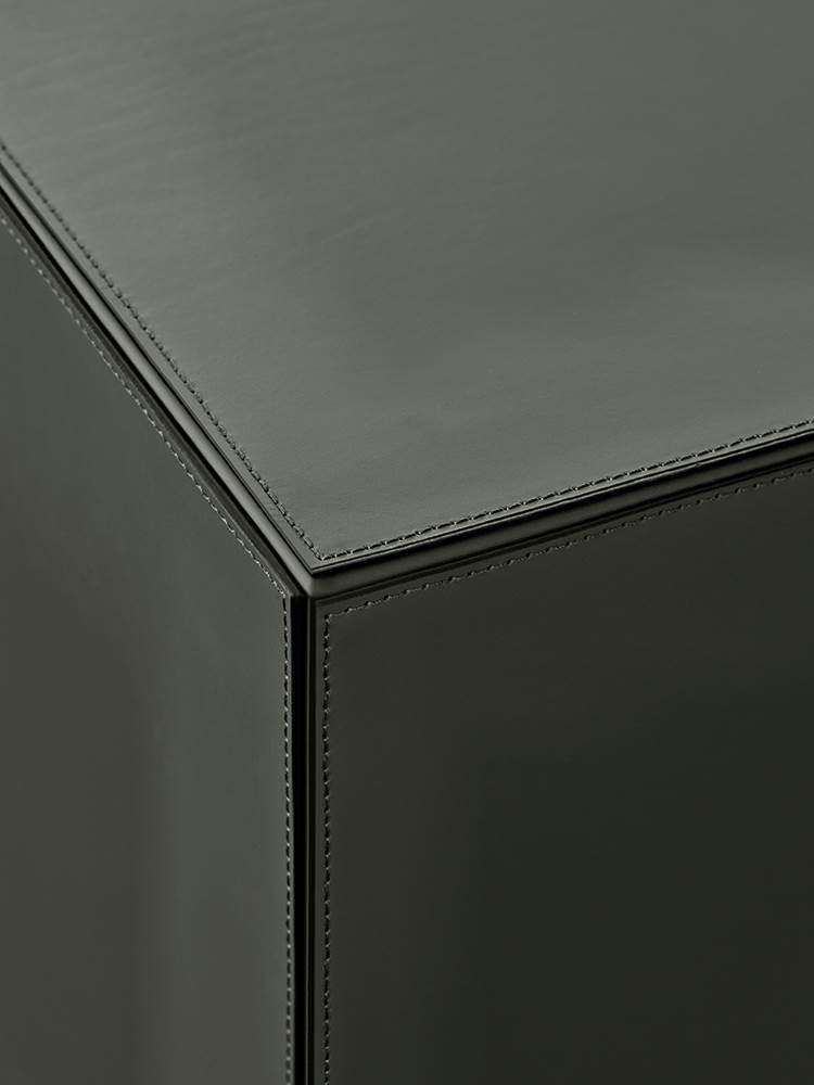 Solid Saddle-Hide — это минималистичный и универсальный предмет мебели, выполненный в виде параллелепипеда. Полностью обтянутый седельной кожей, он изготовлен с использованием техники, применяемой в производстве высококачественного кожаного багажа. Каждая сторона аккуратно прошита по краям, подчёркивая чёткие линии и придавая изделию изысканный вид. Этот аксессуар может свободно размещаться в пространстве: использоваться как дополнительное сиденье рядом с обеденным столом, как кофейный столик или даже как прикроватная тумба.