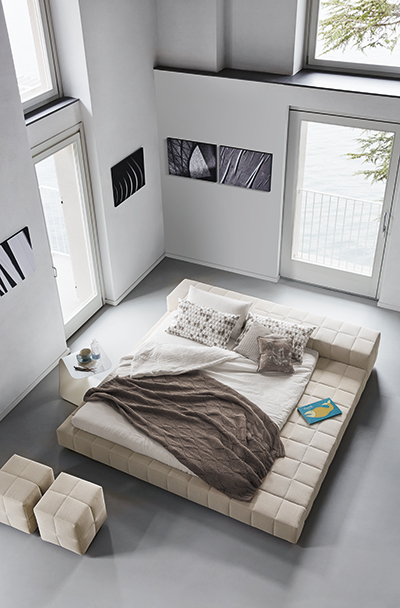 Кровать Squaring — это пример архитектуры отдыха, которая акцентирует внимание на современных геометрических формах и авангардных технических решениях. Съемный чехол, доступный в ткани, коже или эко-коже, придает кровати уникальность и позволяет разместить ее в центре комнаты. Особенно выразительно кровать выглядит в версии с боковым полуостровом, который создает эффект расслабления. Кровать доступна в различных вариантах размеров и конфигурации изголовья и каркаса. Спальня может быть дополнена пуфами и прикроватными элементами для завершения интерьера.