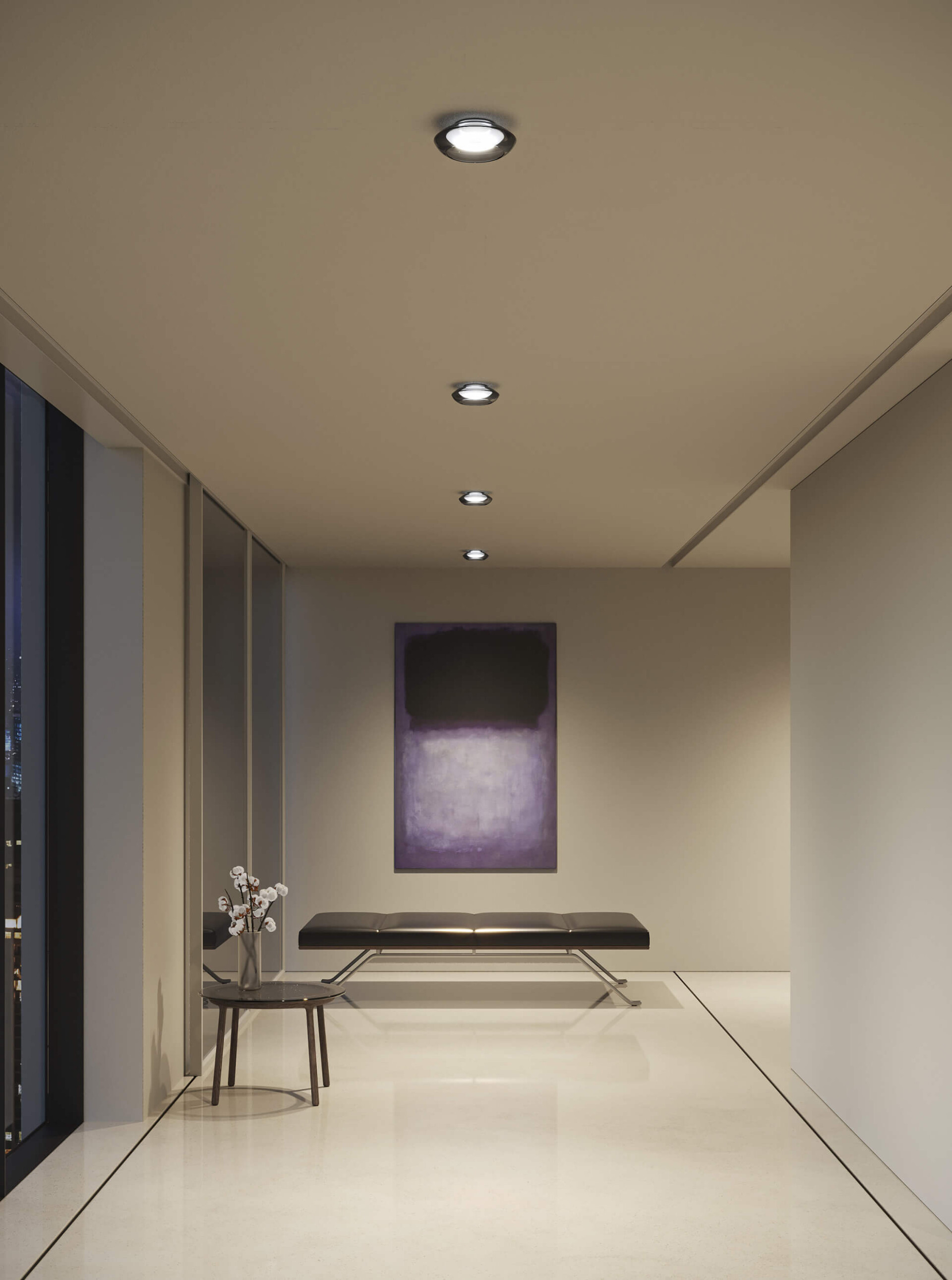 Прожектор с внешним прозрачным черным дутым стеклом и белым внутренним рассеивателем.
