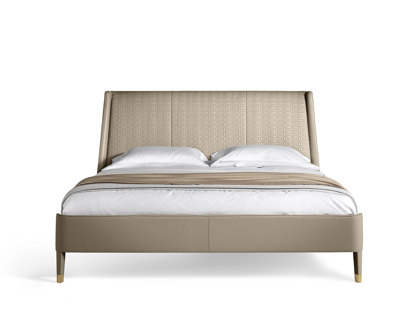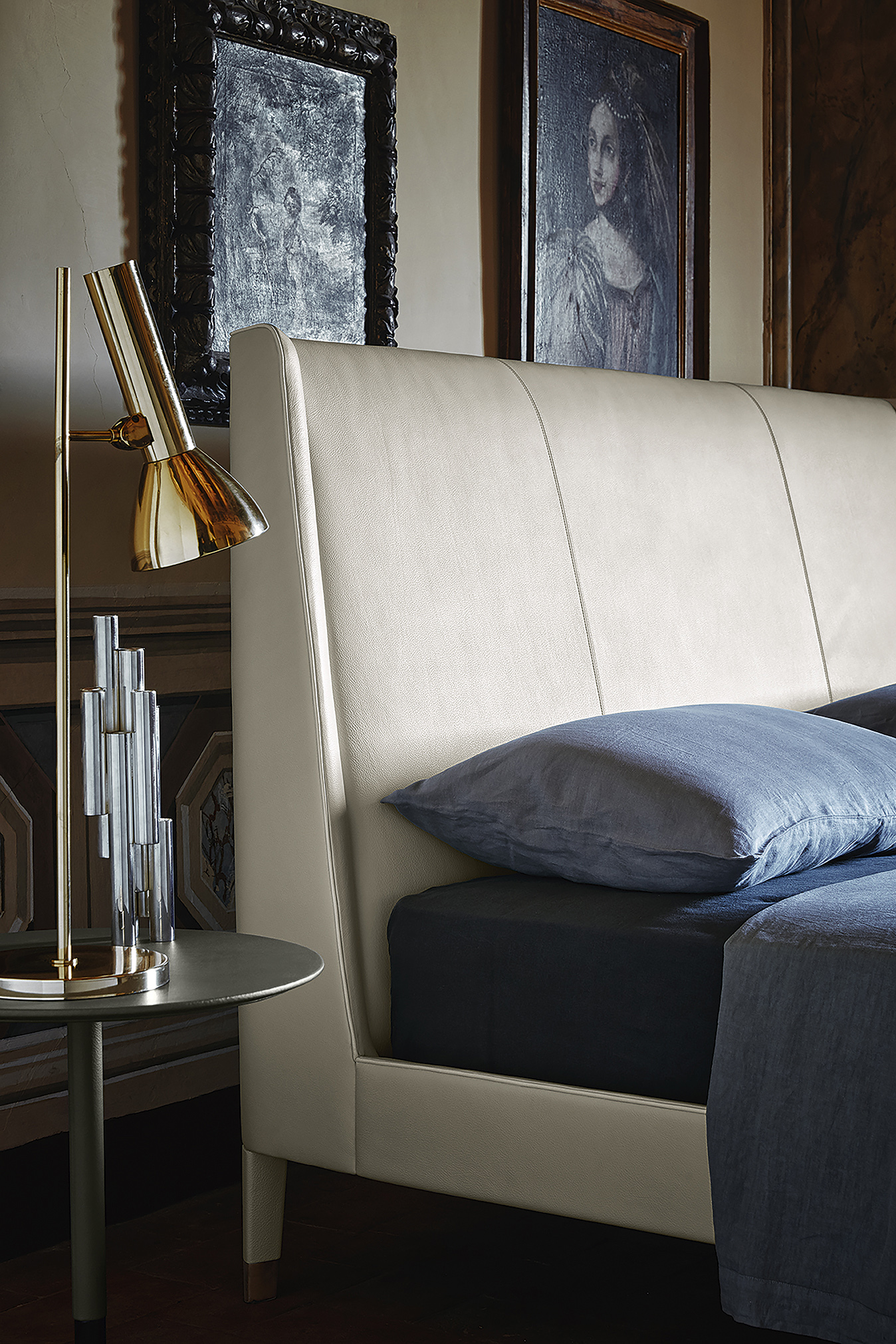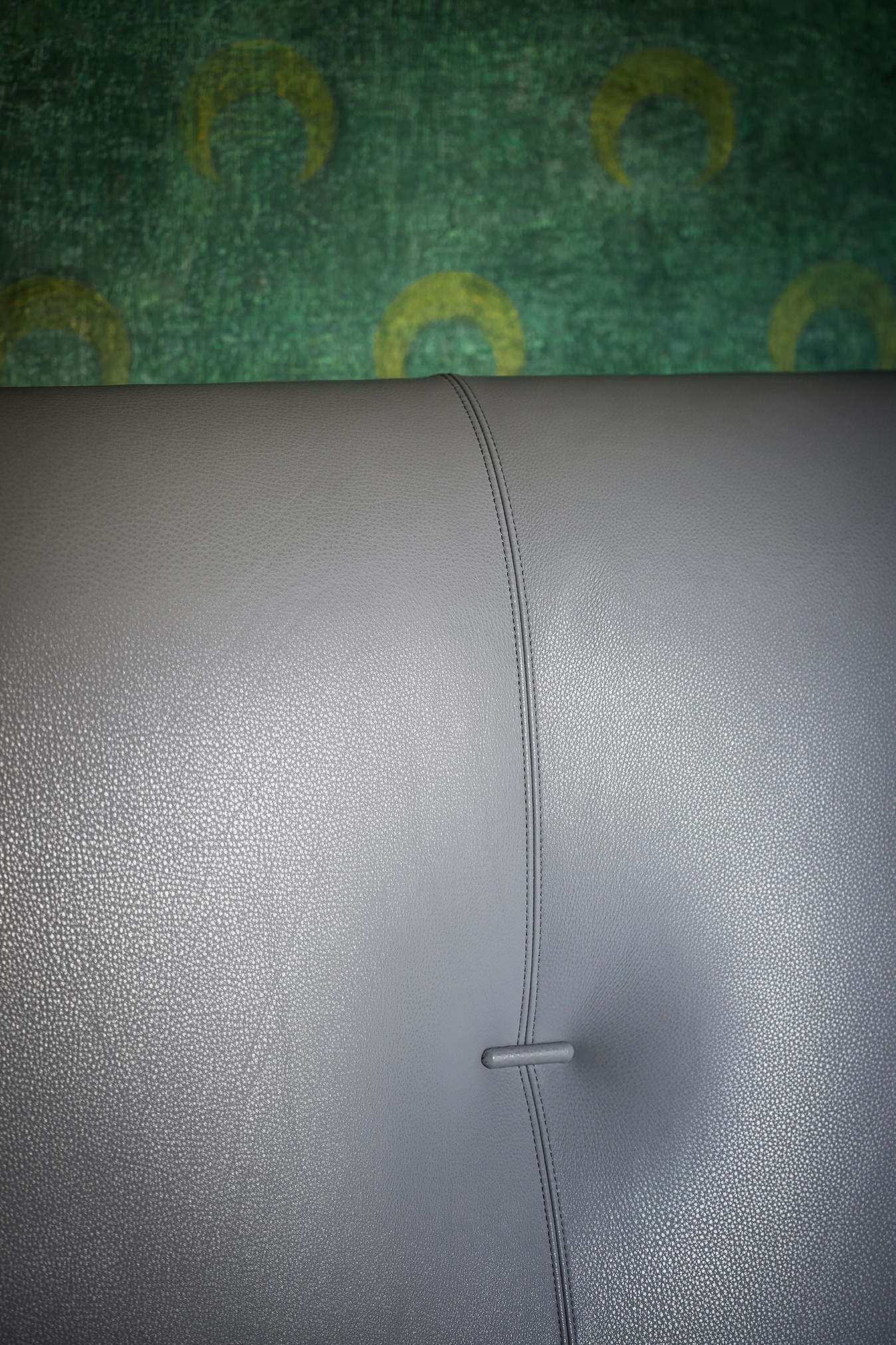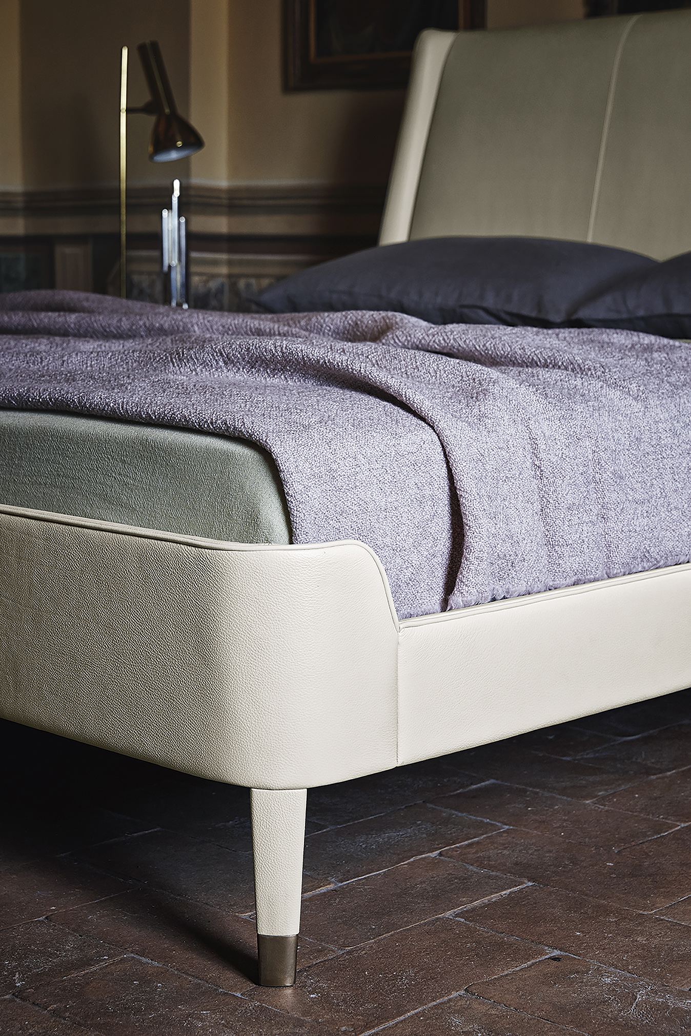 Изголовье кровати Suzie Wong изготовлено из массива бука и березовой фанеры с наполнителем из пенополиуретана. Доступны три варианта отделки: Suzie Wong с гладким изголовьем, Suzie Wong Extra с гладким изголовьем, украшенным парой цилиндрических пуговиц, обтянутых кожей в тон, и Suzie Wong De Luxe с изголовьем, украшенным вышивкой с геометрическим узором. Две формованные боковые части изготовлены из формованного пенополиуретана. Боковины из тюльпанового дерева с лёгкой подкладкой из пенополиуретана. Изножье изготовлено из фанеры из тополя, два угла из формованного пенополиуретана. Обивка выполнена из кожи Pelle Frau®. Помимо конических ножек, обтянутых кожей, предлагается также вариант из массива ясеня с морилкой цвета мокко или венге. Изножье также доступно в двух вариантах: высоком и низком, на одном уровне с каркасом кровати, образуя с ним бесшовную поверхность.