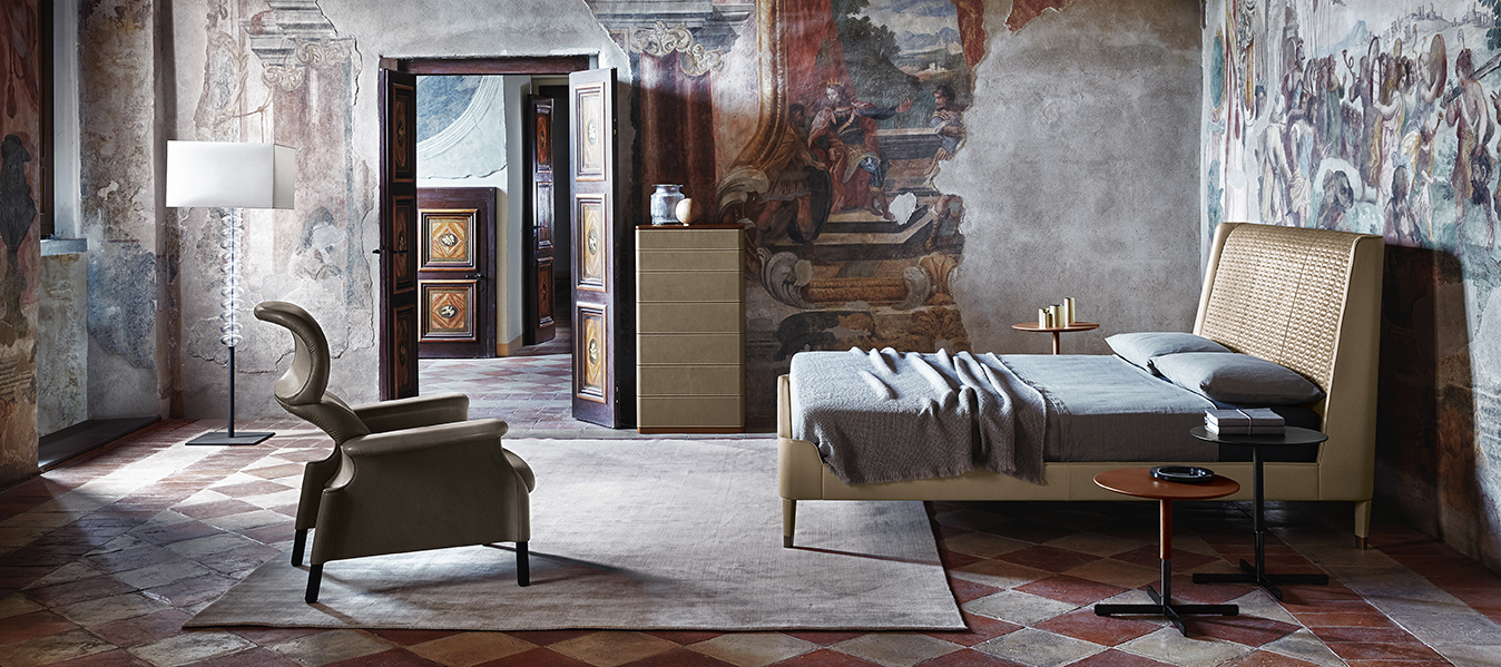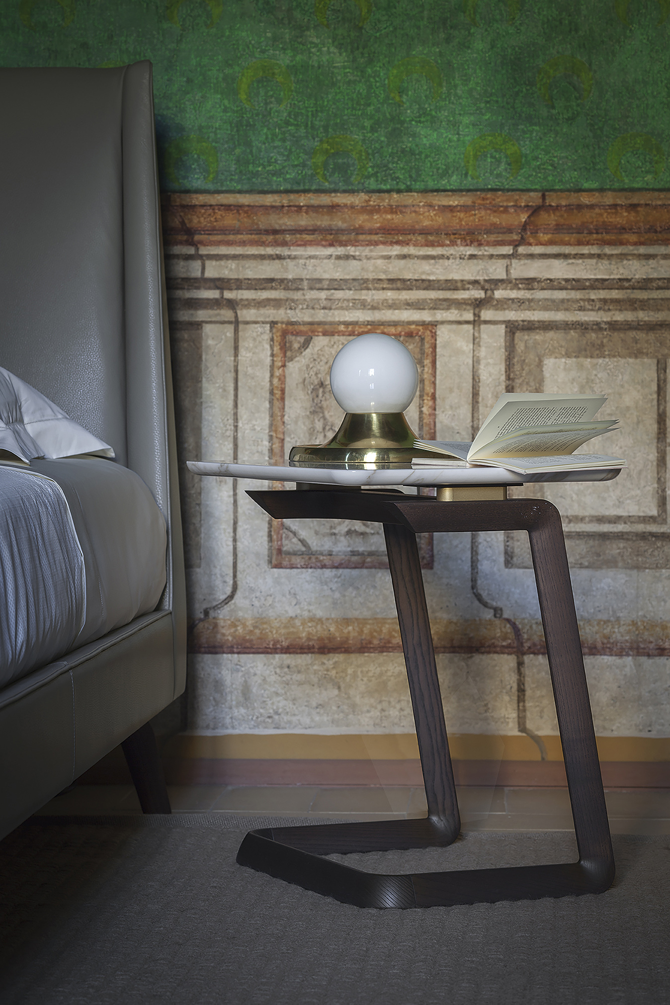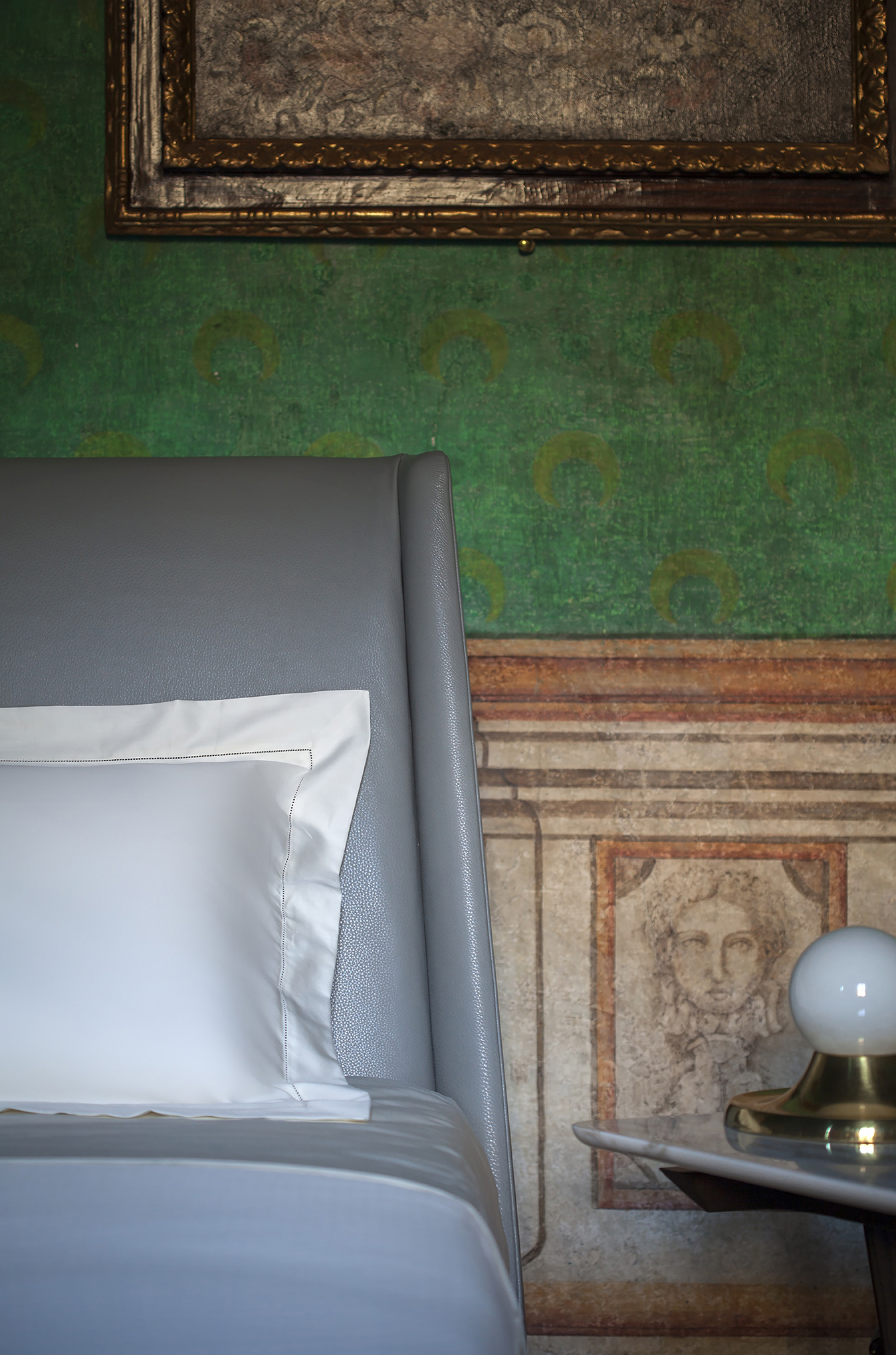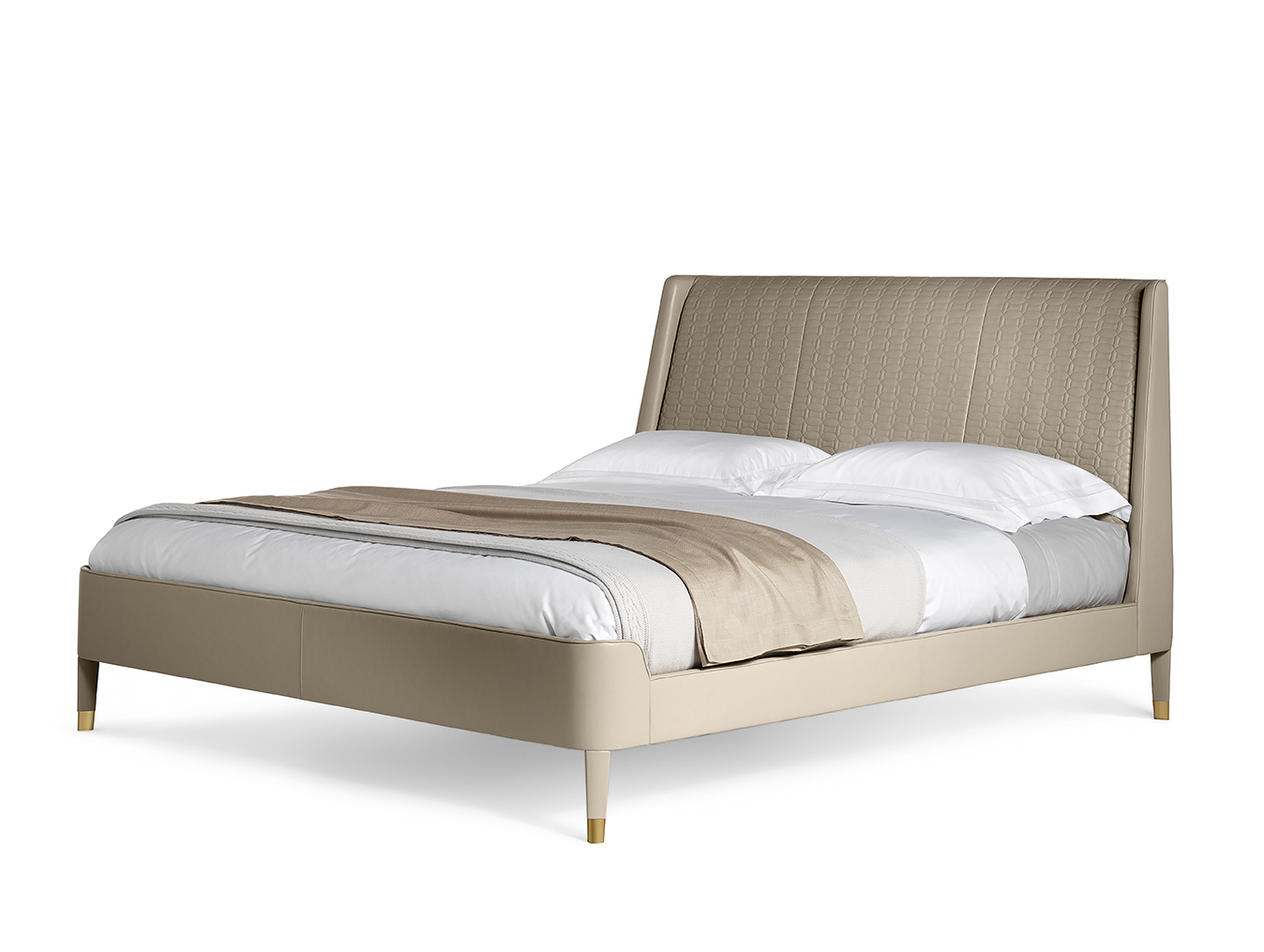 Изголовье кровати Suzie Wong изготовлено из массива бука и березовой фанеры с наполнителем из пенополиуретана. Доступны три варианта отделки: Suzie Wong с гладким изголовьем, Suzie Wong Extra с гладким изголовьем, украшенным парой цилиндрических пуговиц, обтянутых кожей в тон, и Suzie Wong De Luxe с изголовьем, украшенным вышивкой с геометрическим узором. Две формованные боковые части изготовлены из формованного пенополиуретана. Боковины из тюльпанового дерева с лёгкой подкладкой из пенополиуретана. Изножье изготовлено из фанеры из тополя, два угла из формованного пенополиуретана. Обивка выполнена из кожи Pelle Frau®. Помимо конических ножек, обтянутых кожей, предлагается также вариант из массива ясеня с морилкой цвета мокко или венге. Изножье также доступно в двух вариантах: высоком и низком, на одном уровне с каркасом кровати, образуя с ним бесшовную поверхность.