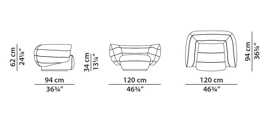 Каркас из чилийской сосны и фанеры. Основание — чёрная окрашенная сосна. Наполнение — пенополиуретан разной плотности с акриловым покрытием. Обивка выполнена из сшитых кожаных полос с внутренней прослойкой из акрилового волокна. Доступно только в мягкой коже.