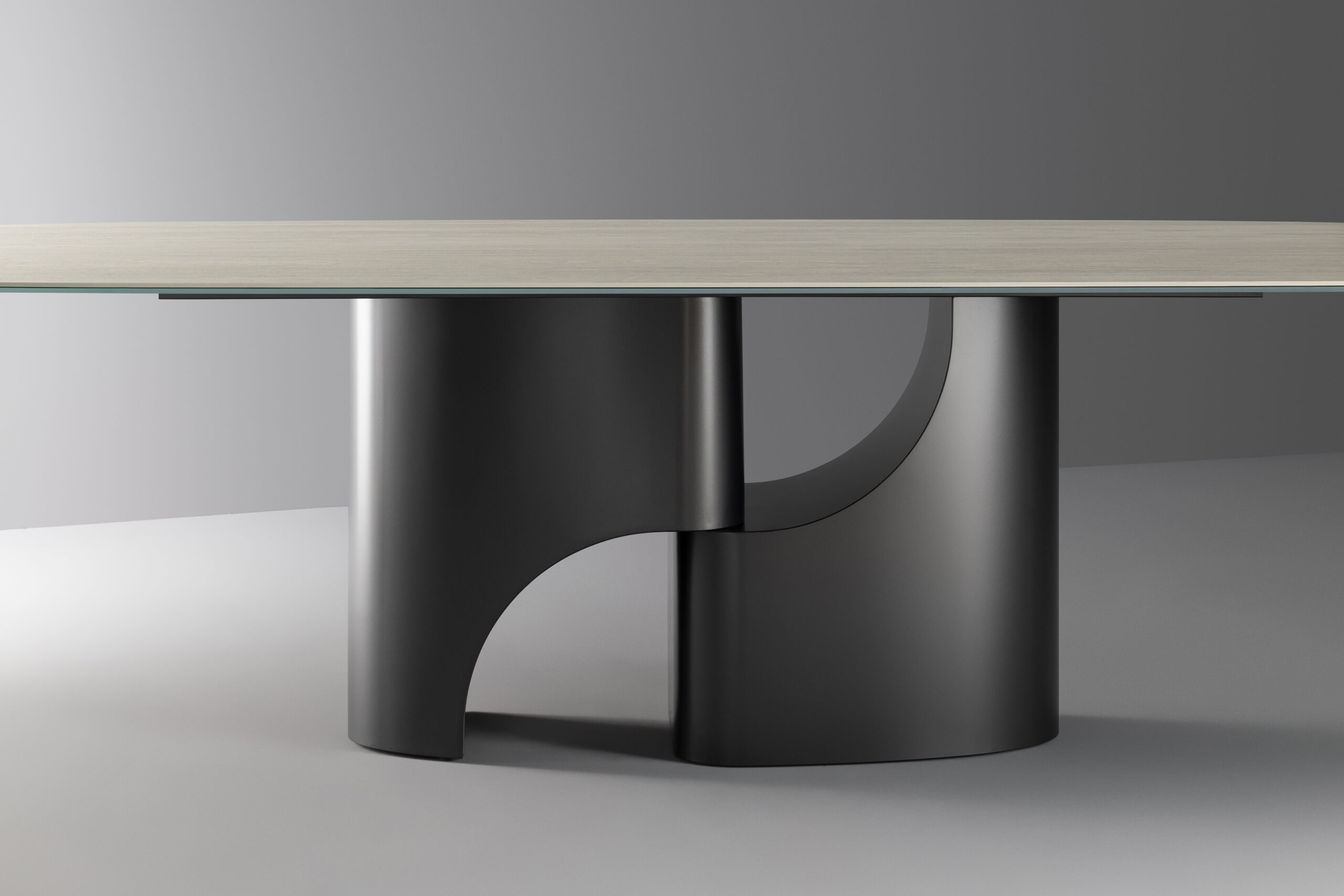Стол Taijitu — это история о балансе, ритме и искусстве жить осознанно. Его выразительное металлическое основание состоит из двух изогнутых элементов эллиптического сечения, вдохновлённых древним символом Taijitu — воплощением гармонии и идеального равновесия противоположностей. Повернутые на 180 градусов, эти модули образуют скульптурную центральную опору, в которой игра полных и пустых форм превращается в визуальный акцент интерьера, приглашая к созерцанию. Высокое мастерство исполнения и утончённые варианты металлической отделки подчёркивают геометрию формы, создавая выразительные световые акценты. Taijitu не просто стол — это предмет, возвышающий повседневный интерьер до уровня философского высказывания, сочетая эстетику и глубинный смысл.