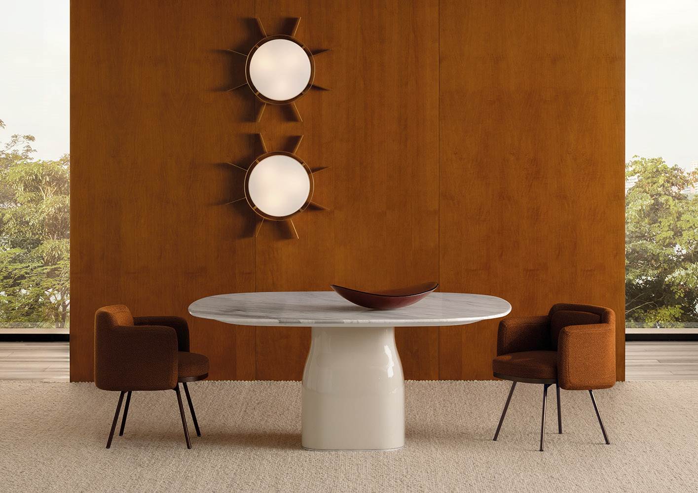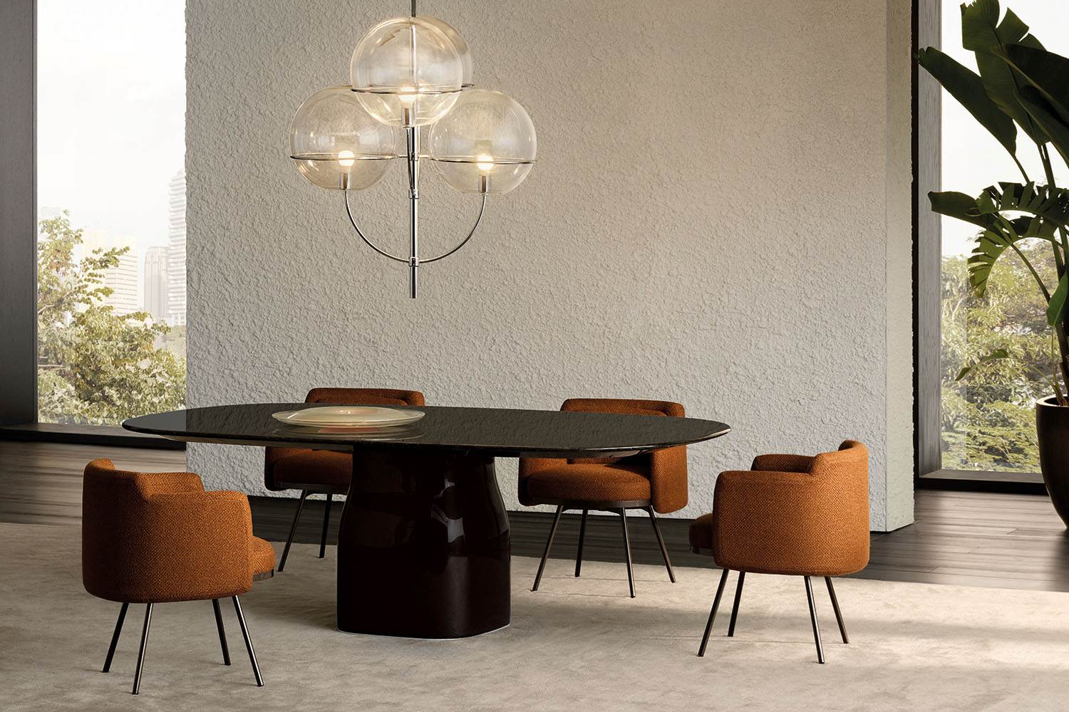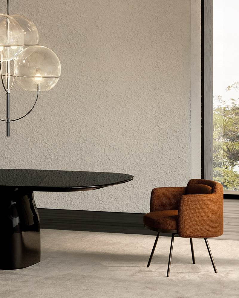 Tape Dining — лаконичный и стильный стул, в котором японская точность соединяется с итальянской элегантностью. Отличительной чертой является декоративная вставка в виде «ленты» из сателитной кожи у основания сиденья. Компактная форма и высокий комфорт делают эту модель универсальной для разных пространств.