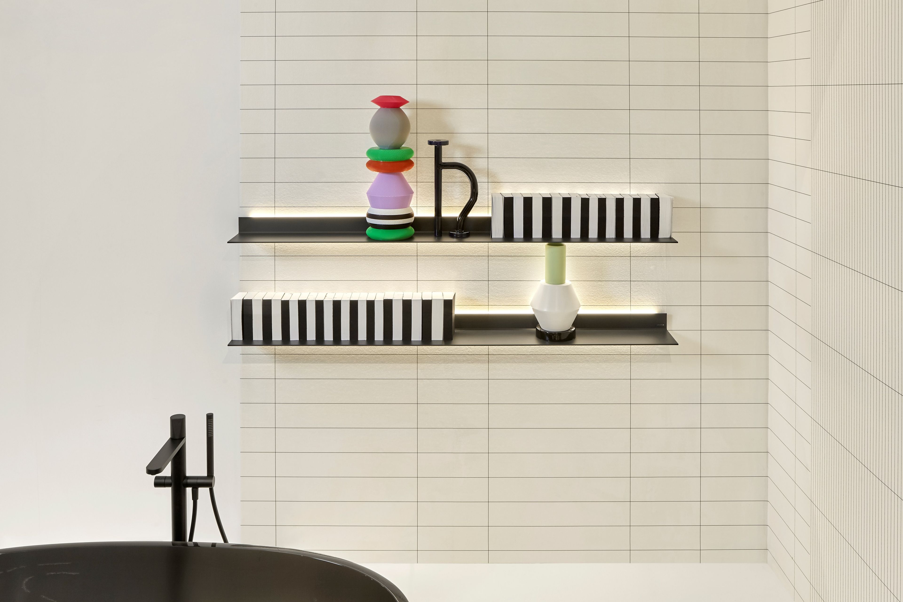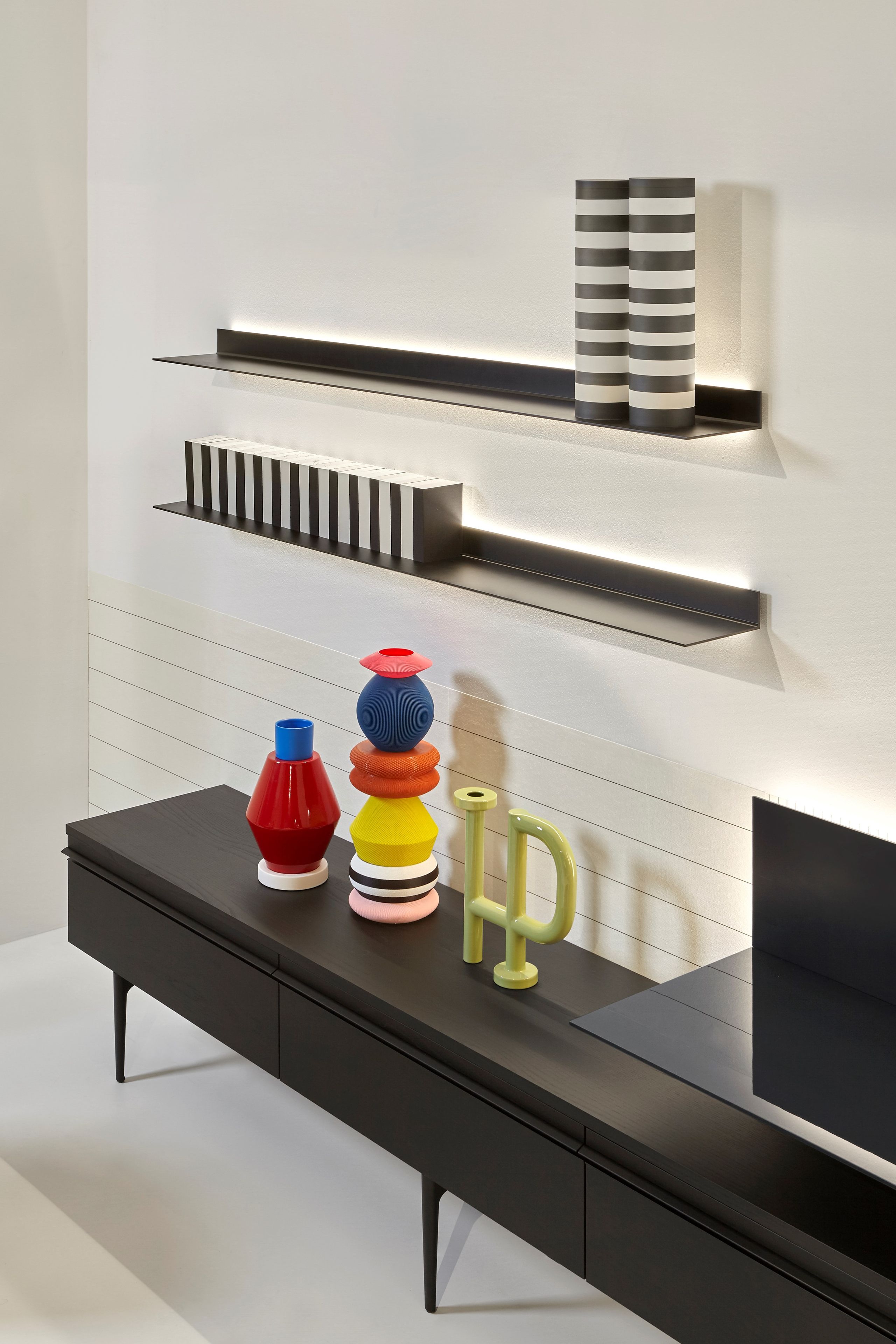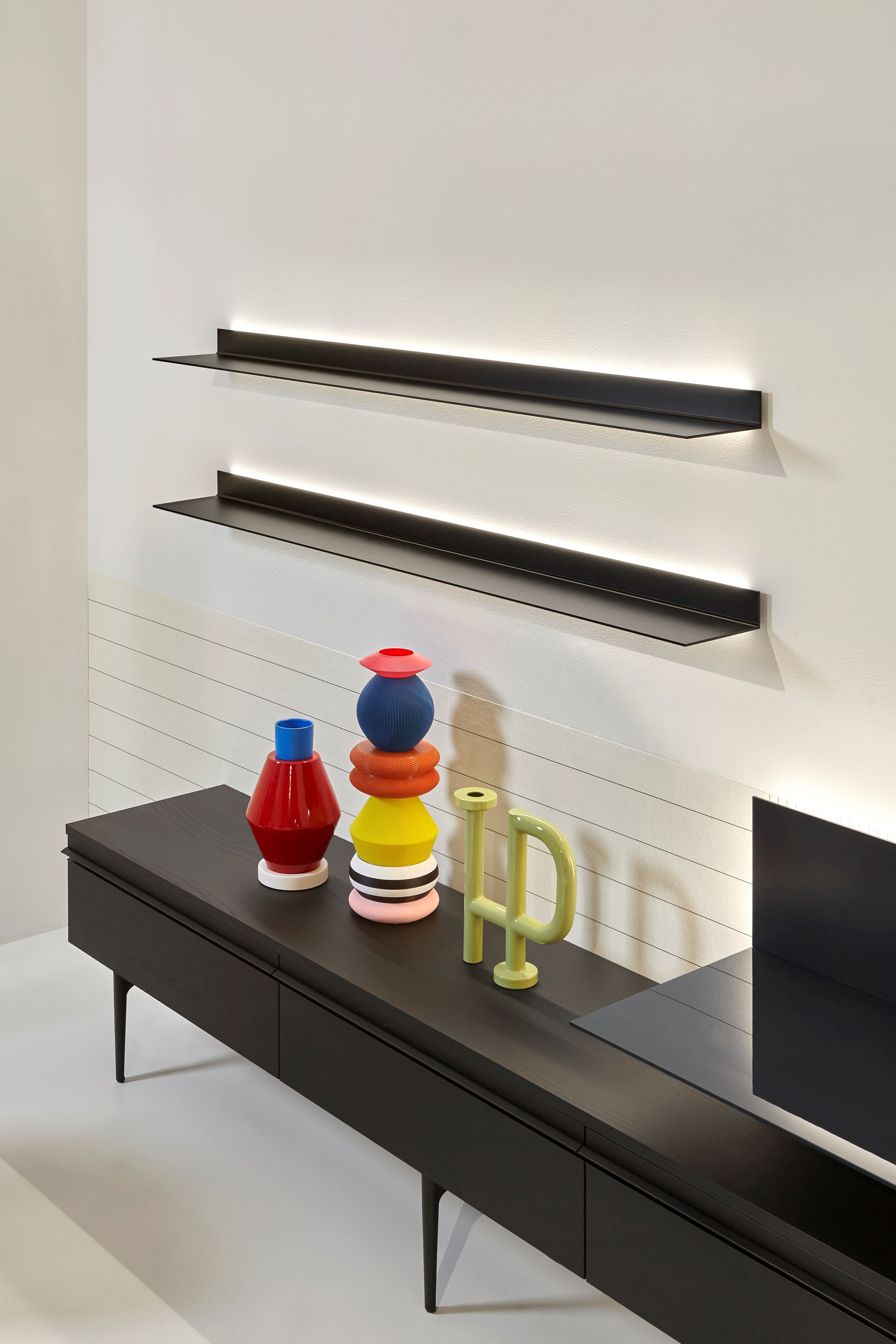 Эффект: тонкий стальной конструктив создаёт ощущение «легкости» — предметы на полке оказываются в центре внимания.