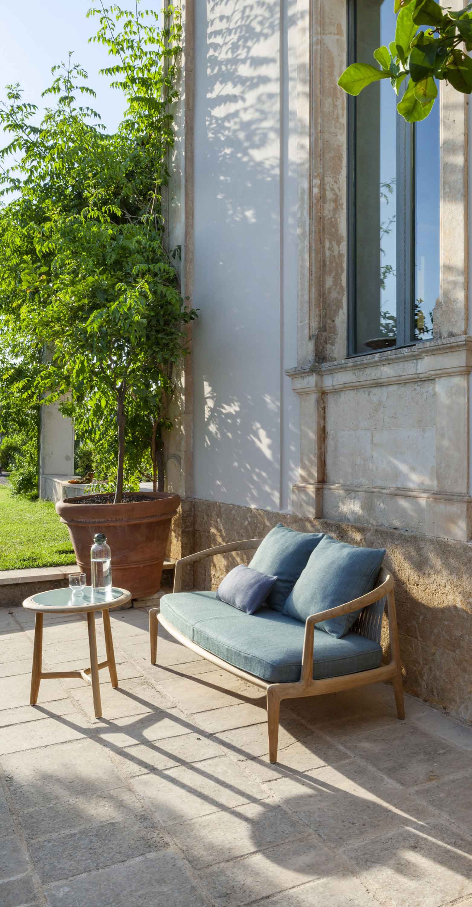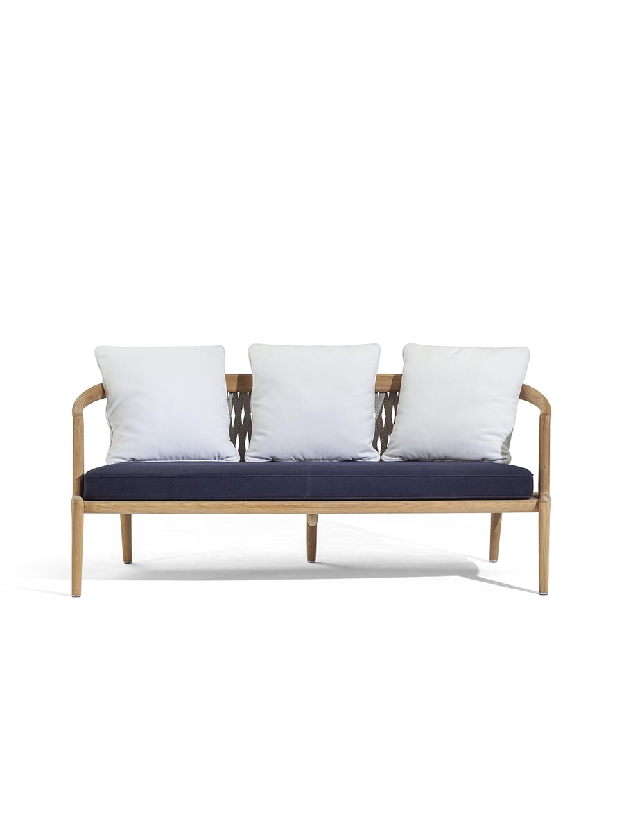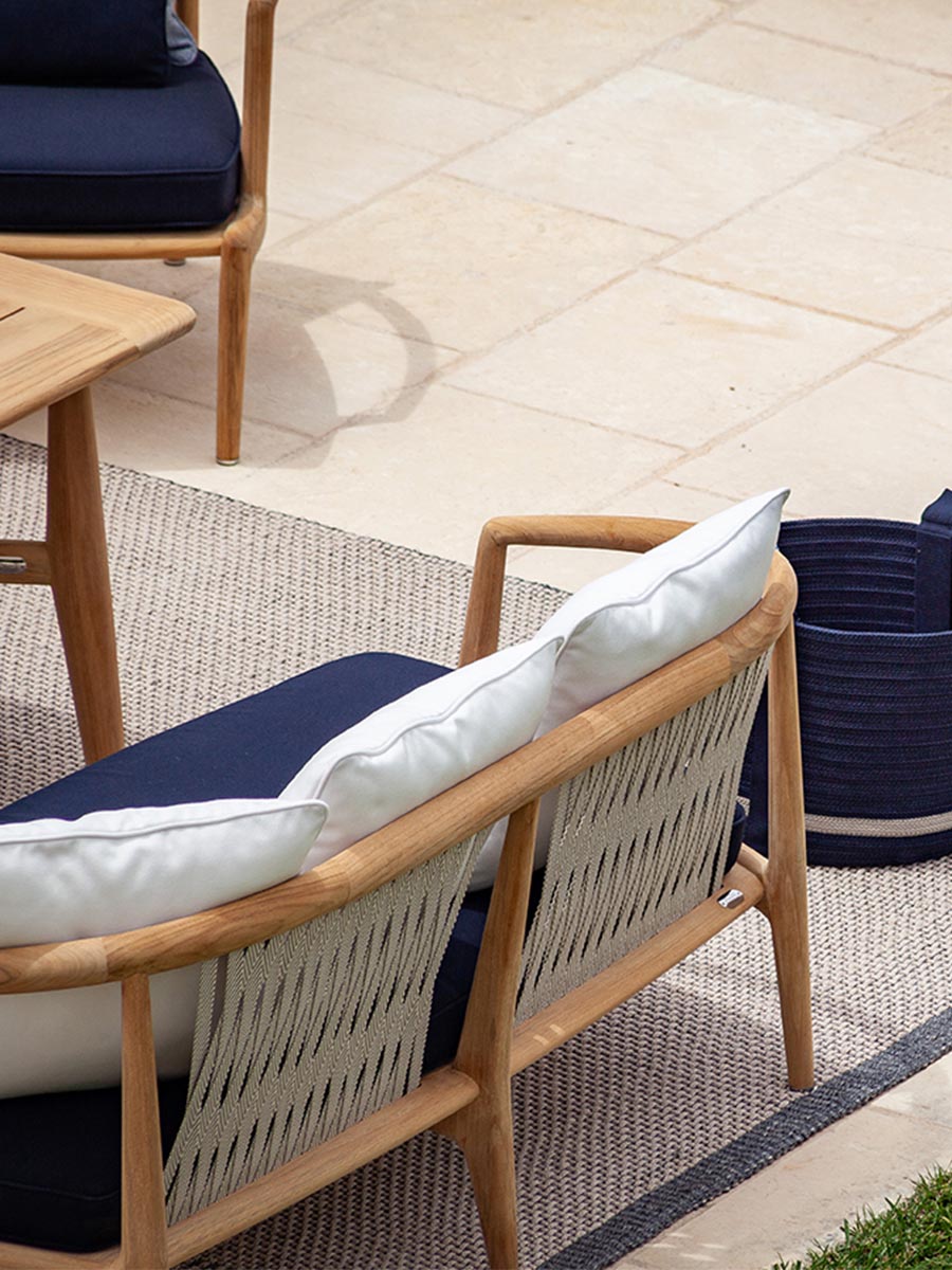 Пространства на открытом воздухе для неформального образа жизни. Двухместный садовый диван из тика с натуральной отделкой – универсальный предмет мебели для террас, патио, веранд, крыш и палуб яхт и кораблей. Узкий, органичный дизайн – воплощение безупречного мастерства. Спинка выполнена из специального переплетения двухцветной хлопковой тесьмы экрю и серо-коричневого цвета, на которой размещены свободные подушки для отдыха на открытом воздухе (две или три подушки со съемными чехлами на выбор). Вся обивка спроектирована таким образом, чтобы вода быстро стекала и высыхала. Диван вместе с креслом и невысоким столом создают более неформальную обеденную зону. Он подходит для жилых и общественных помещений и является частью The Secret Garden, коллекции для улицы, разработанной Роберто Лаццерони, которая дополняет ассортимент Poltrona Frau Boundless Living Outdoor Collections. Диван Secret Garden изготовлен из 100% сертифицированной древесины FSC™.