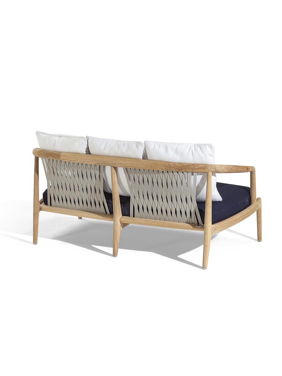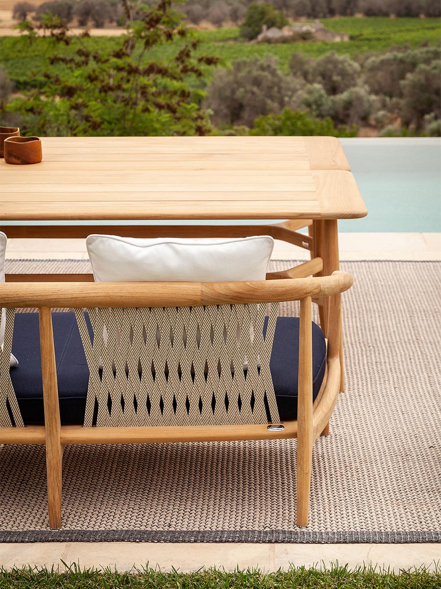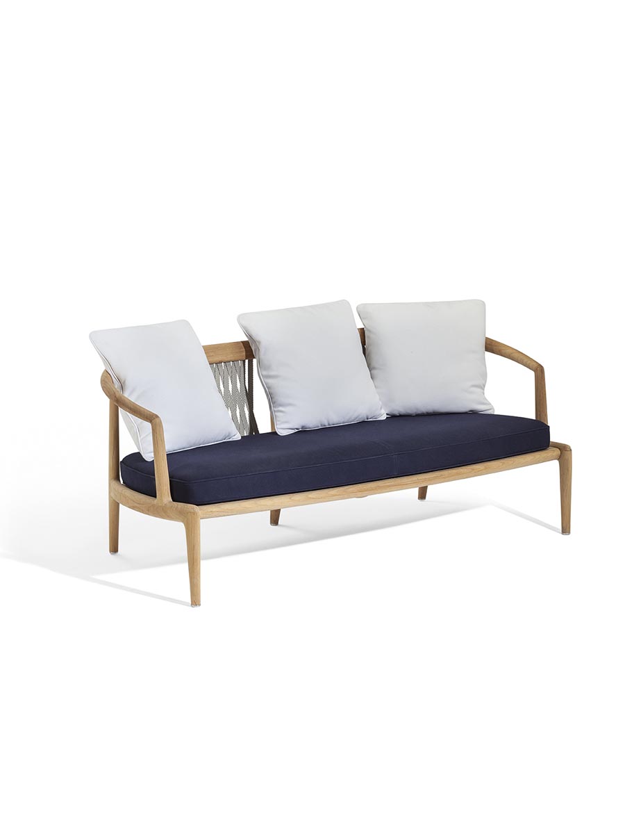 Пространства на открытом воздухе для неформального образа жизни. Двухместный садовый диван из тика с натуральной отделкой – универсальный предмет мебели для террас, патио, веранд, крыш и палуб яхт и кораблей. Узкий, органичный дизайн – воплощение безупречного мастерства. Спинка выполнена из специального переплетения двухцветной хлопковой тесьмы экрю и серо-коричневого цвета, на которой размещены свободные подушки для отдыха на открытом воздухе (две или три подушки со съемными чехлами на выбор). Вся обивка спроектирована таким образом, чтобы вода быстро стекала и высыхала. Диван вместе с креслом и невысоким столом создают более неформальную обеденную зону. Он подходит для жилых и общественных помещений и является частью The Secret Garden, коллекции для улицы, разработанной Роберто Лаццерони, которая дополняет ассортимент Poltrona Frau Boundless Living Outdoor Collections. Диван Secret Garden изготовлен из 100% сертифицированной древесины FSC™.