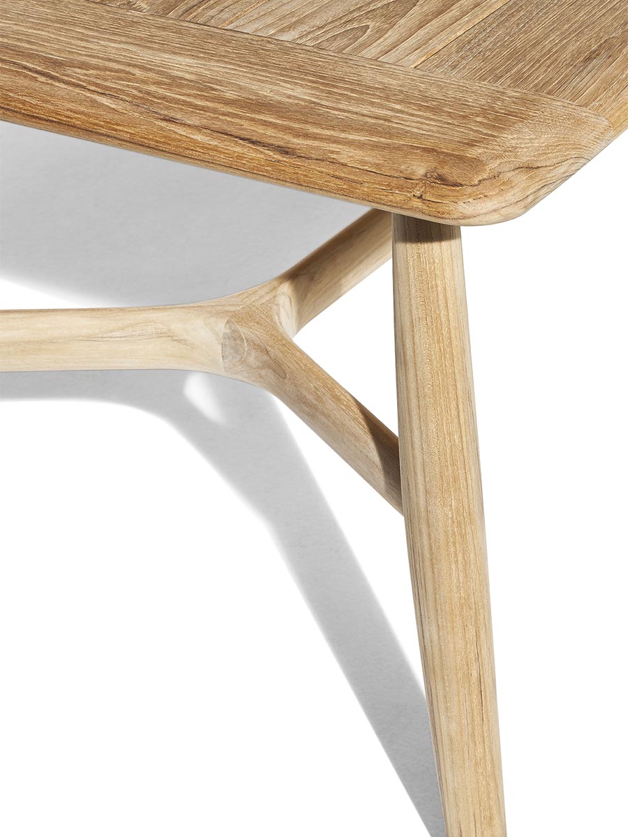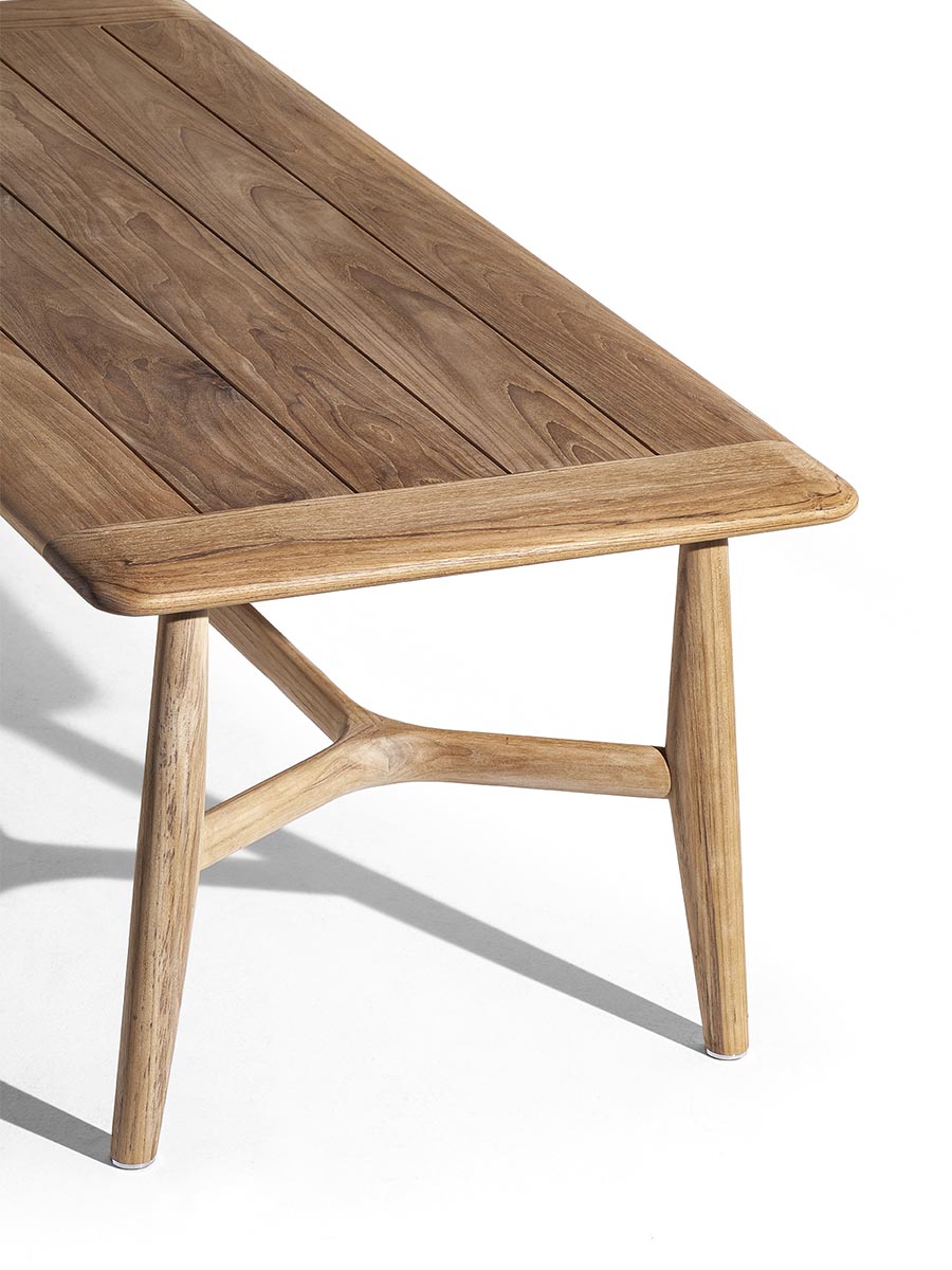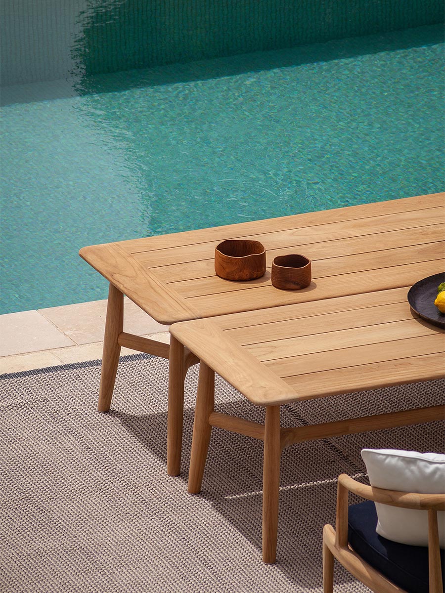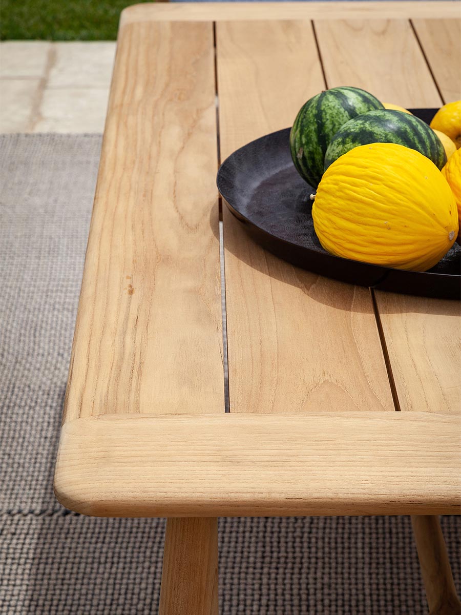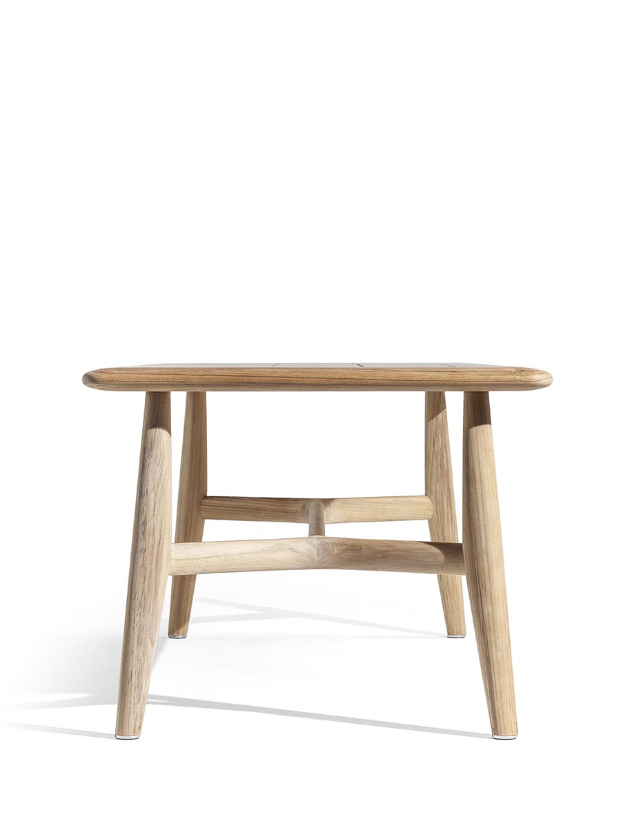 Стол для отдыха на свежем воздухе, предназначенный как для дружеской компании, так и для более неформальных обедов, отличается вместительными размерами и уменьшенной высотой, что позволяет ему эргономично сочетаться с двухместным диваном и креслами из коллекции садовой мебели The Secret Garden, разработанной Роберто Лаццерони. Каркас и столешница изготовлены из массива тикового дерева с натуральной отделкой. Решётчатый дизайн столешницы напоминает классический морской мотив. Стол The Secret Garden, входящий в коллекцию Poltrona Frau Boundless Living Outdoor Collections, изготовлен из 100% сертифицированной древесины FSC™.