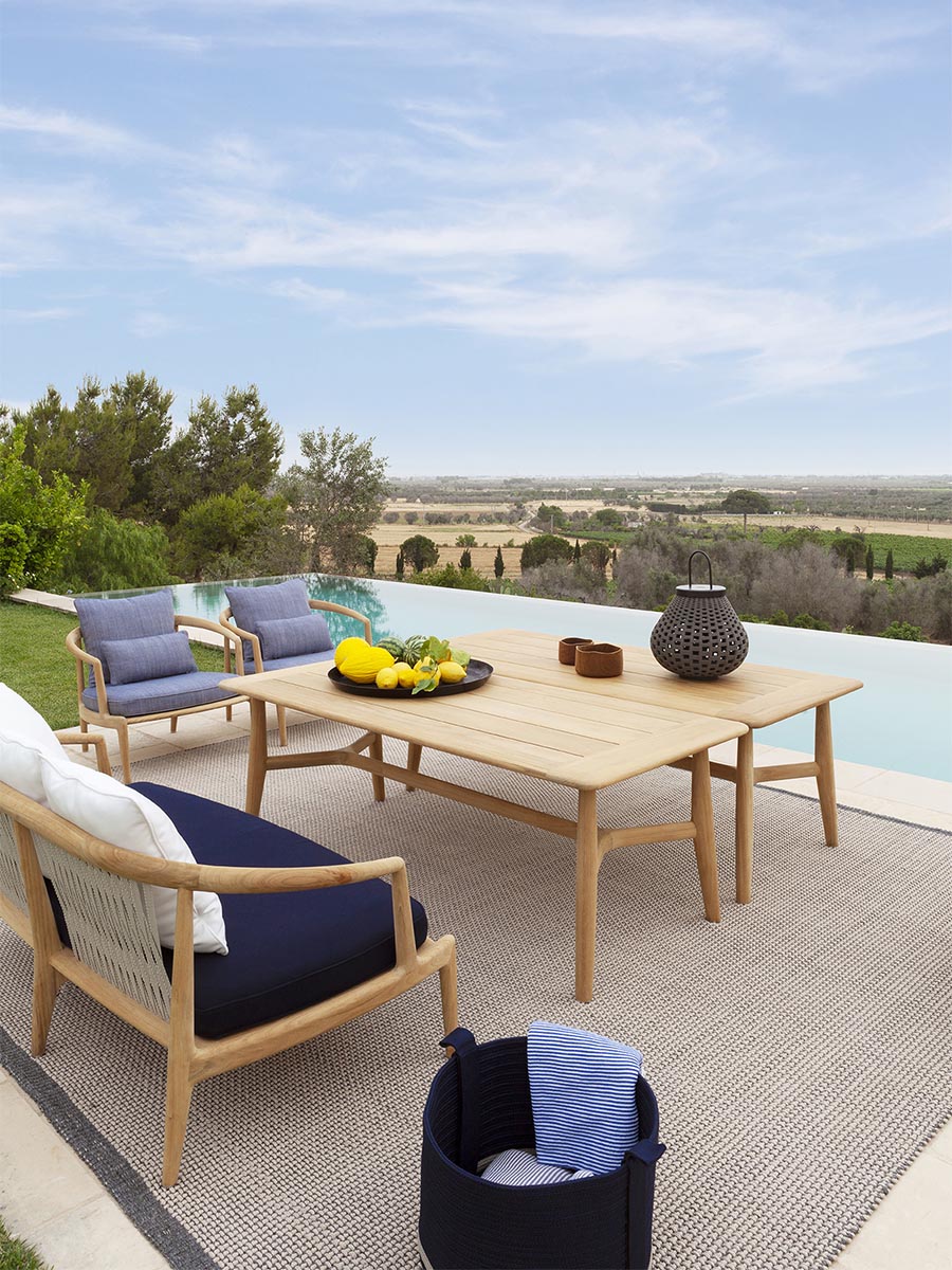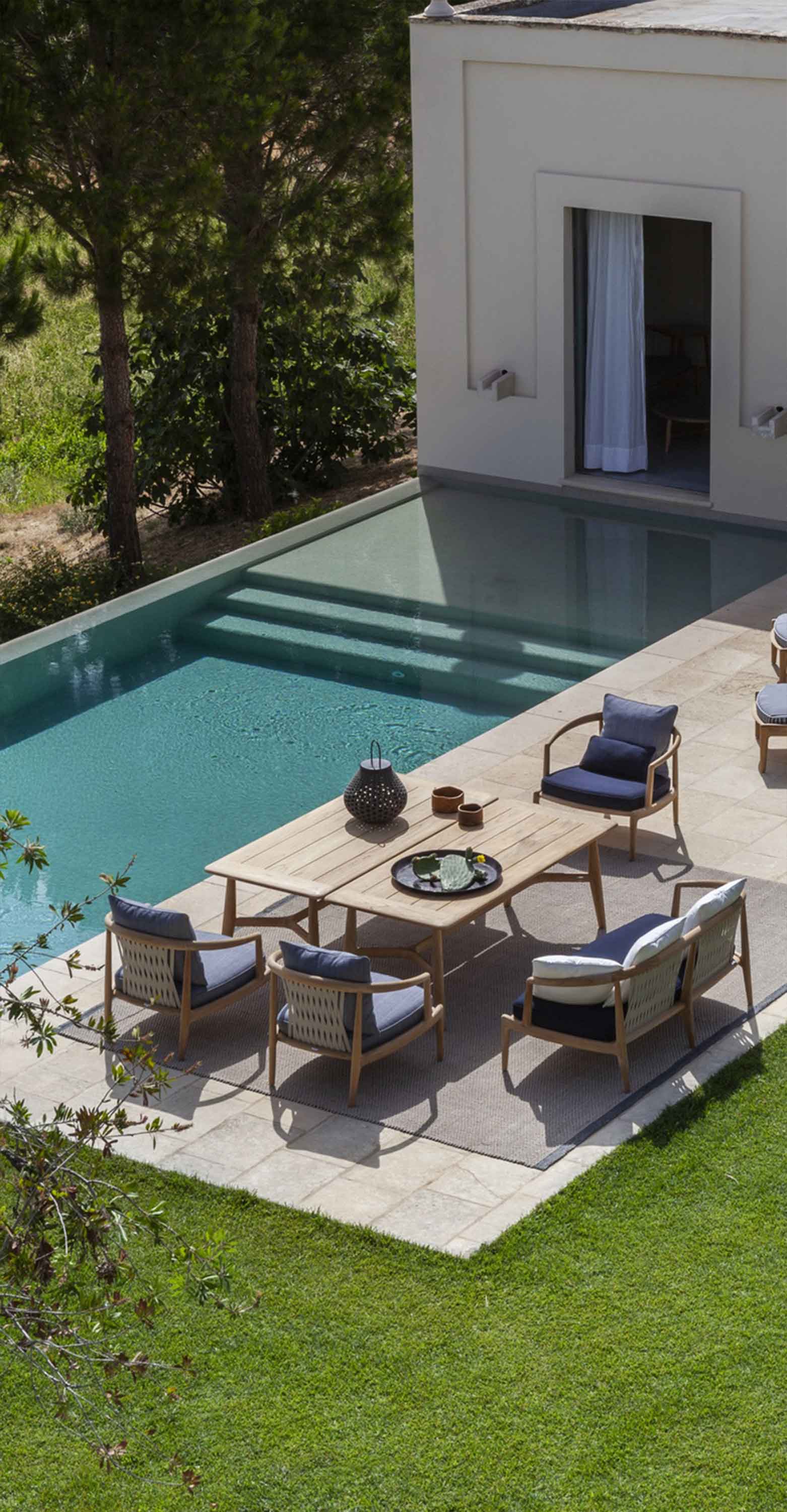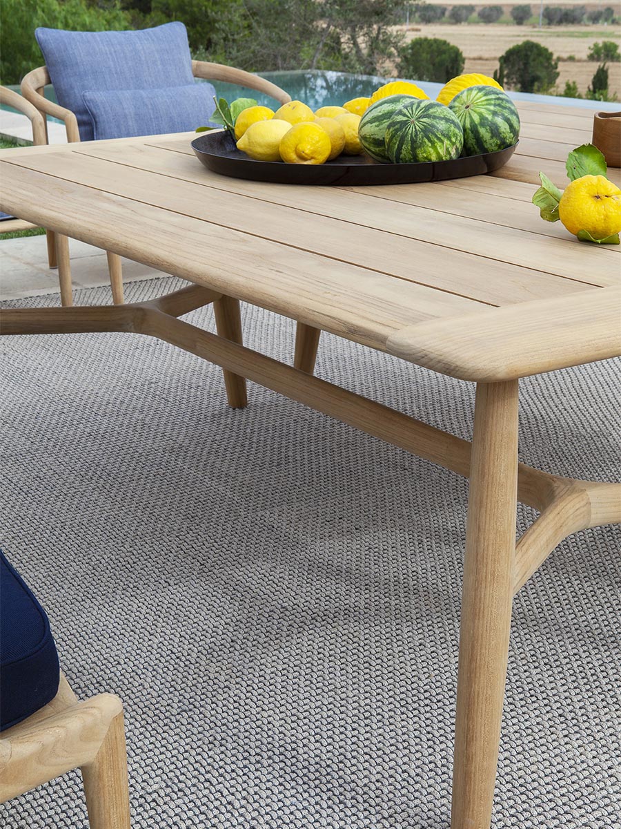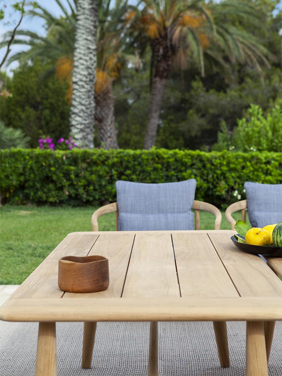 Стол для отдыха на свежем воздухе, предназначенный как для дружеской компании, так и для более неформальных обедов, отличается вместительными размерами и уменьшенной высотой, что позволяет ему эргономично сочетаться с двухместным диваном и креслами из коллекции садовой мебели The Secret Garden, разработанной Роберто Лаццерони. Каркас и столешница изготовлены из массива тикового дерева с натуральной отделкой. Решётчатый дизайн столешницы напоминает классический морской мотив. Стол The Secret Garden, входящий в коллекцию Poltrona Frau Boundless Living Outdoor Collections, изготовлен из 100% сертифицированной древесины FSC™.