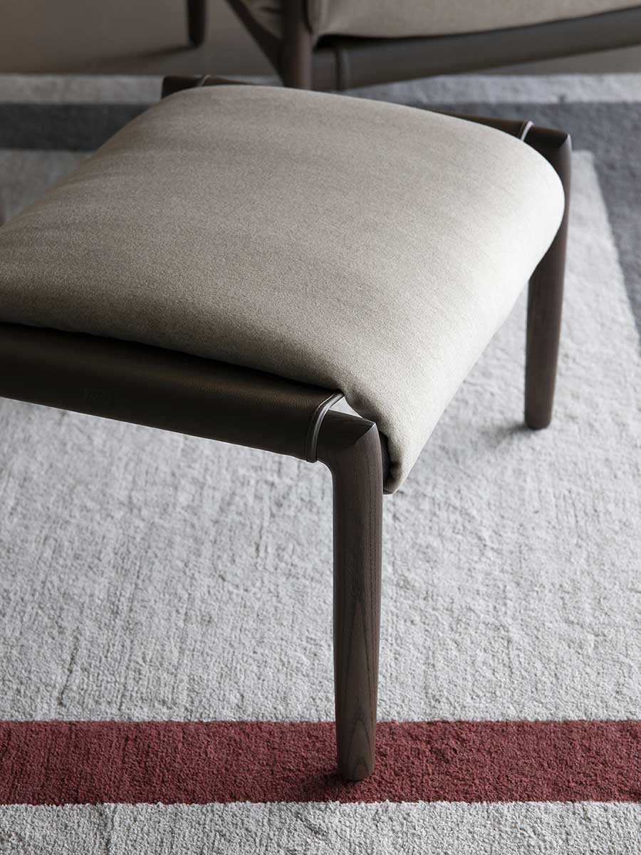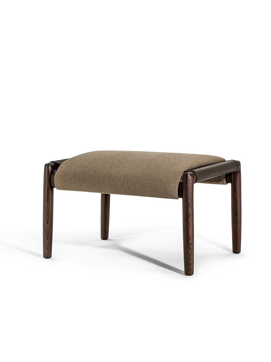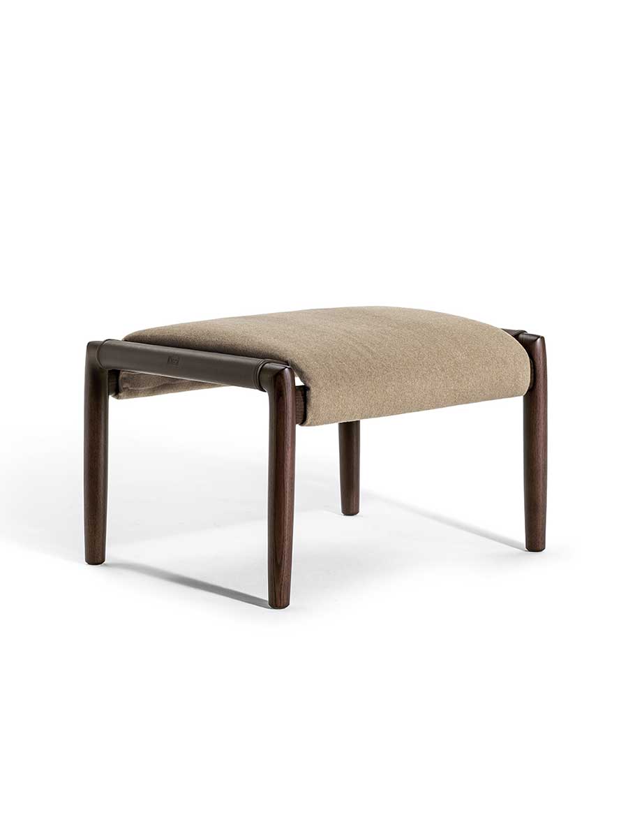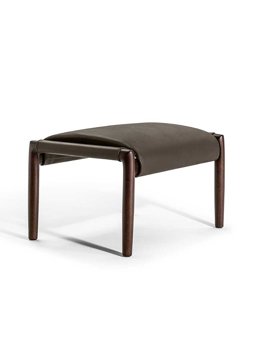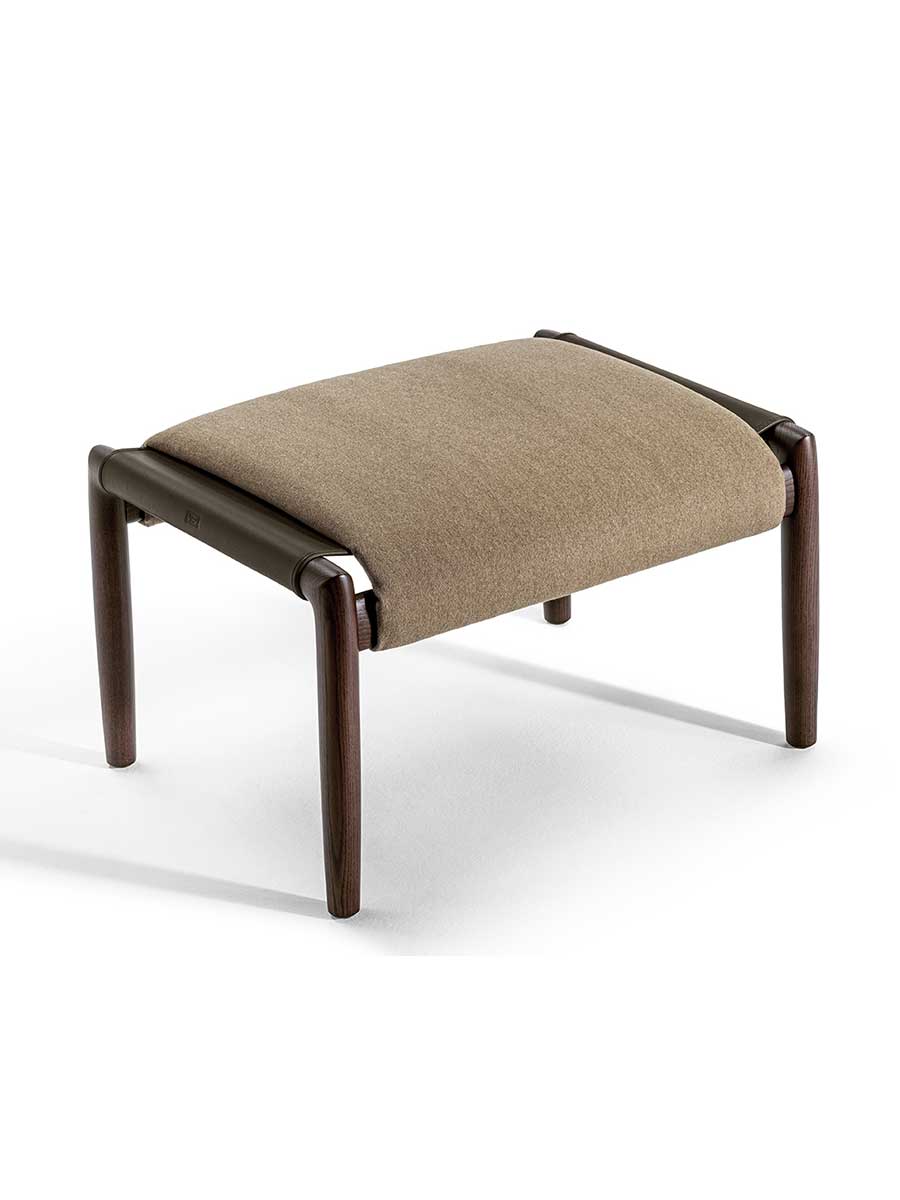 Каркас пуфа Times Lounge выполнен из массива ясеня и отличается двумя круглыми ножками по бокам, соединенными двумя овальными перекладинами, которые перекликаются с дизайном кресла. Пуф доступен в отделке цвета мокко или венге. Полоса из кожи Pelle Frau® образует упругую поверхность, на которую натянут второй мягкий чехол из пенополиуретана и полиэстеровой ваты. Обивка доступна из кожи Pelle Frau® или ткани. В обоих случаях верхний мягкий чехол можно снять.