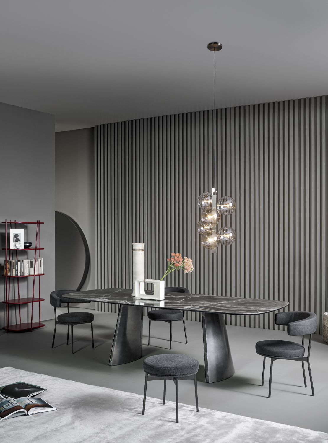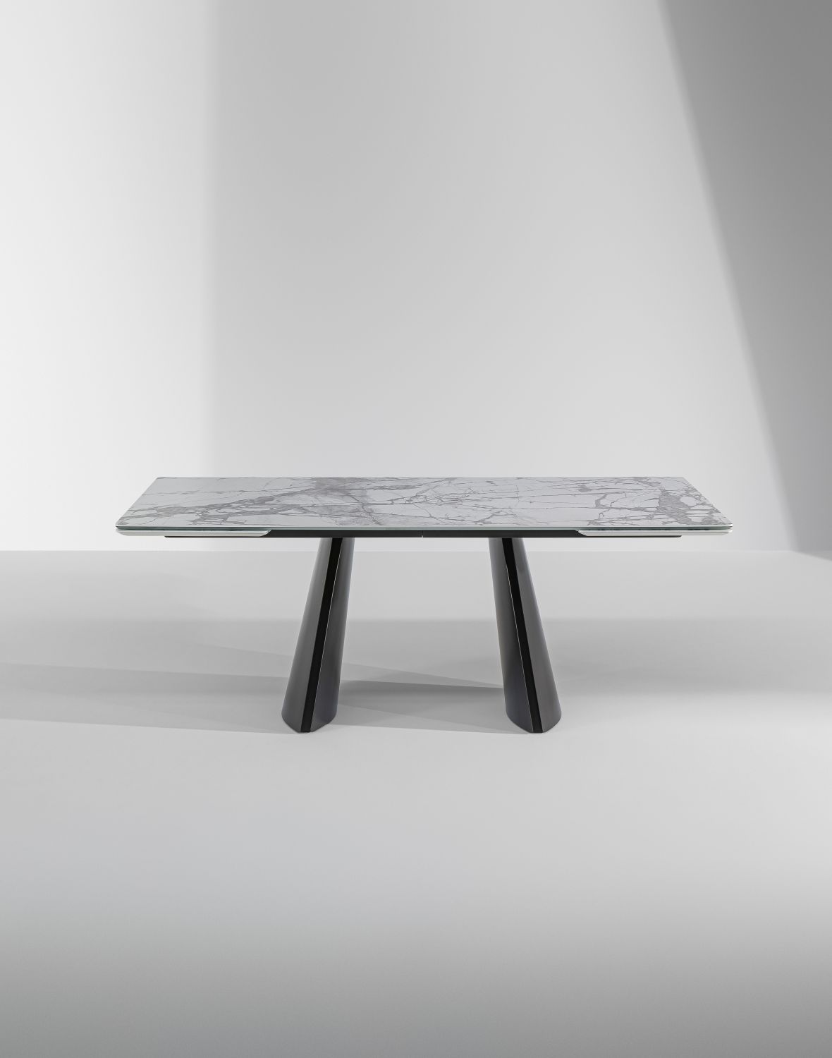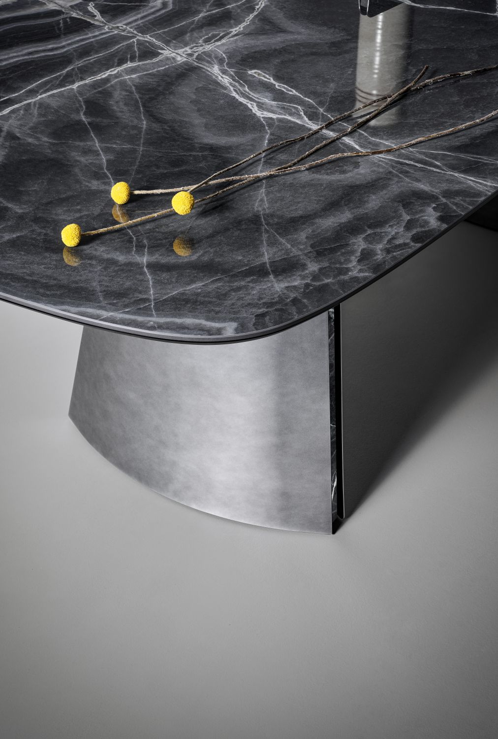 Навеянный архитектурой традиционных японских синтоистских ворот, стол Torii получил не только своё имя, но и уникальные тектонические черты конструкции. Его основание сформировано из двух изящно наклонённых металлических элементов, создающих ощущение устойчивости и одновременно лёгкости. Элегантная столешница подчёркивает строгость форм и представлена в вариантах из дерева, мрамора или керамики. В версии с отделкой, согласованной по материалу и цвету между столешницей и декоративными вставками на ножках, особенно ярко раскрывается утончённая эстетика дизайна от студии Marconato & Zappa.