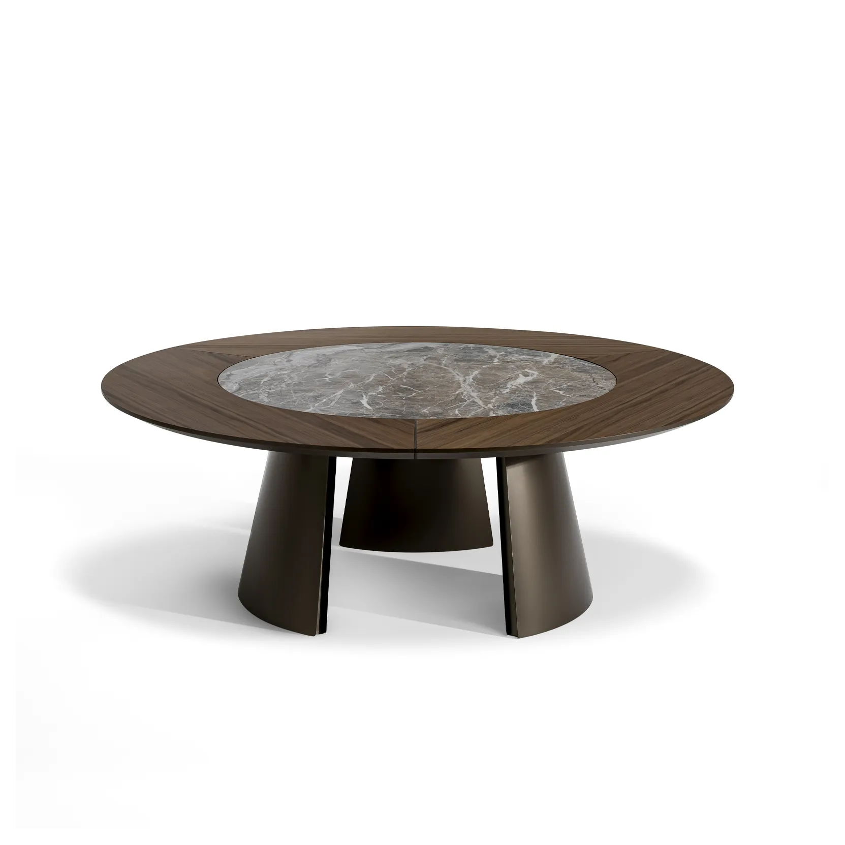 В версии Torii ST (Swivel Top) стол оснащён крупной круглой столешницей с выразительным сочетанием материалов: внешняя часть выполнена из дерева, а центральная вращающаяся вставка — из керамики. Такой дуэт функциональности и эстетики создаёт эффектную центральную композицию в интерьере.