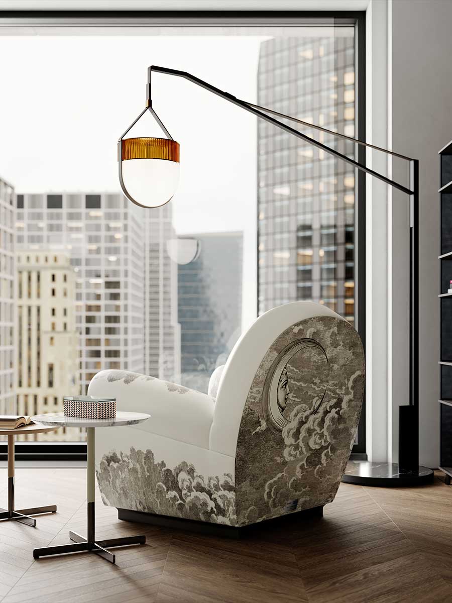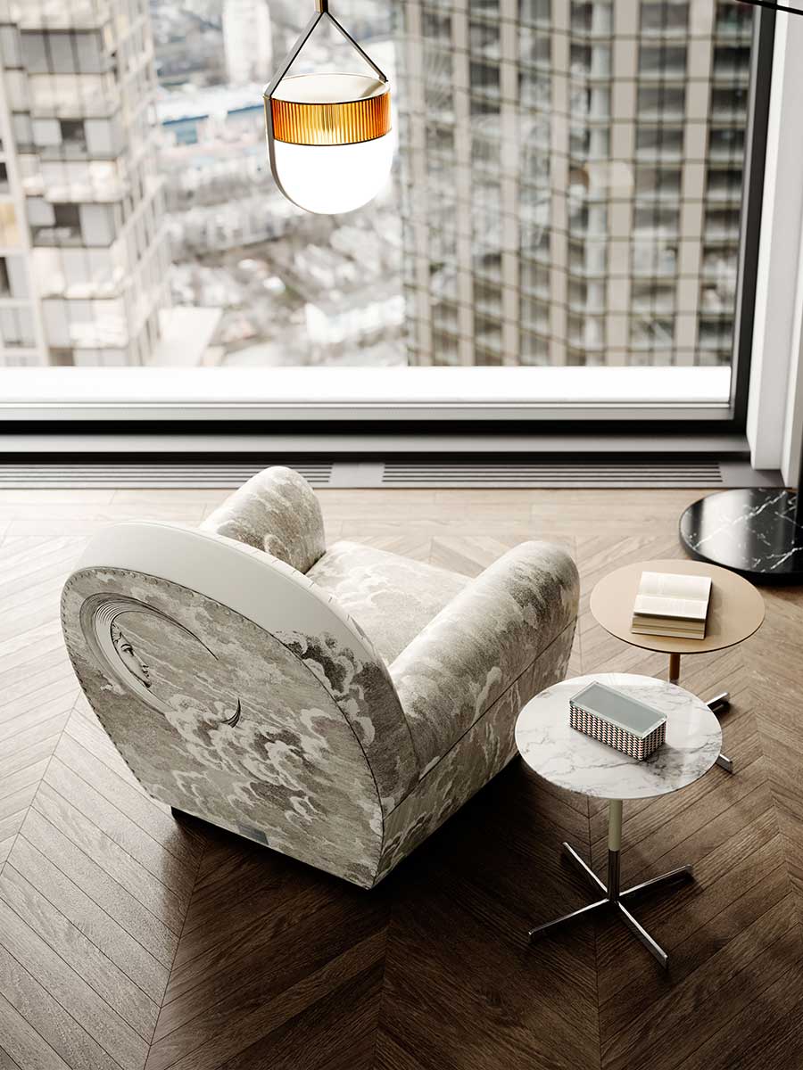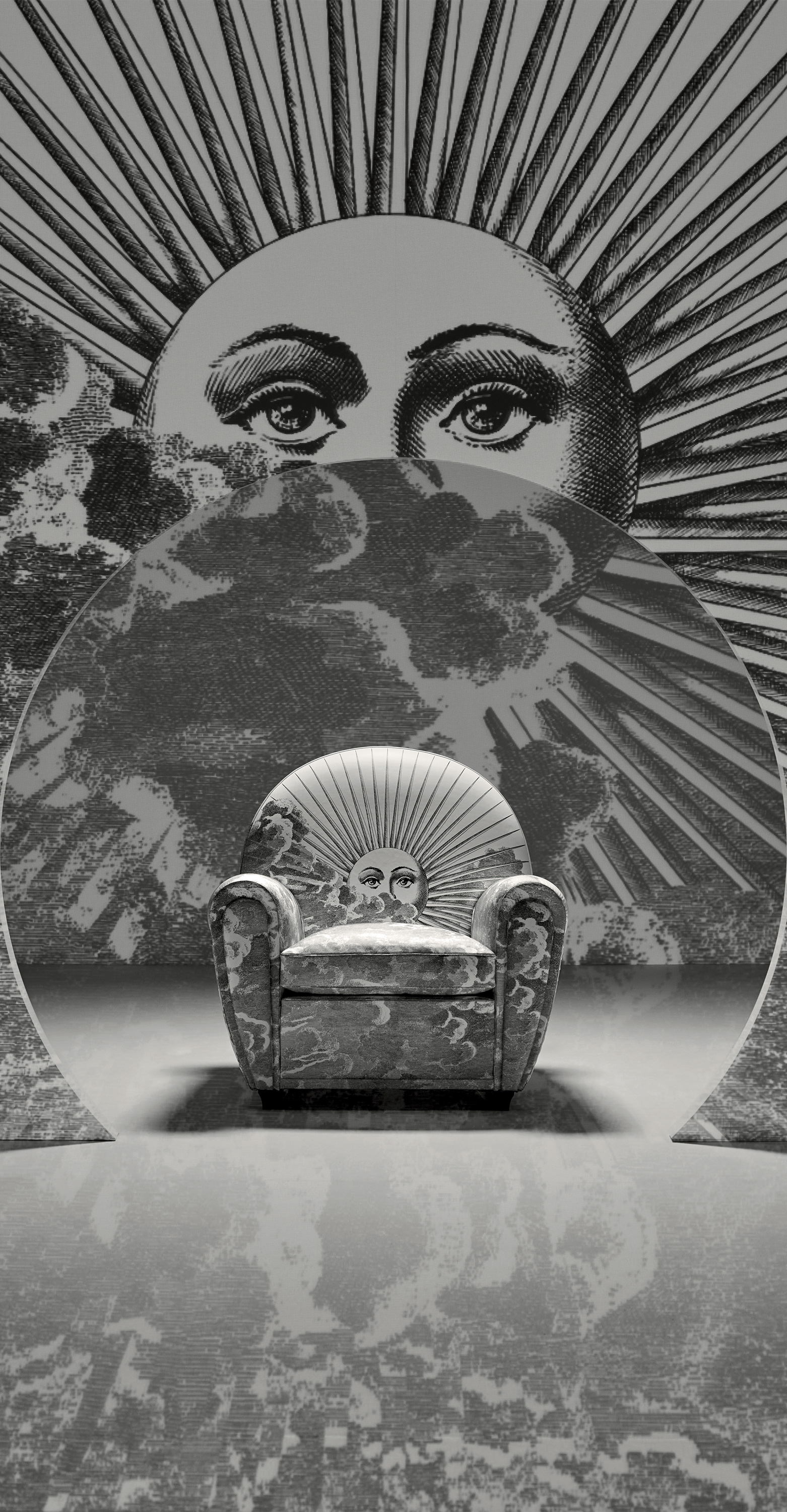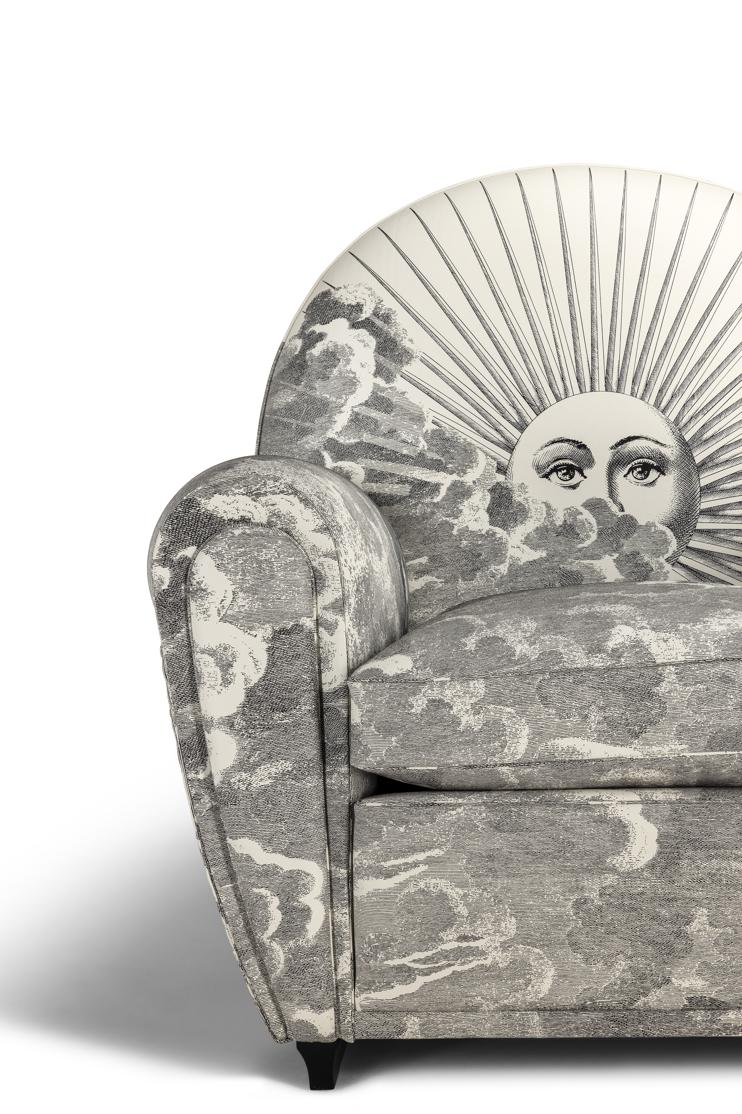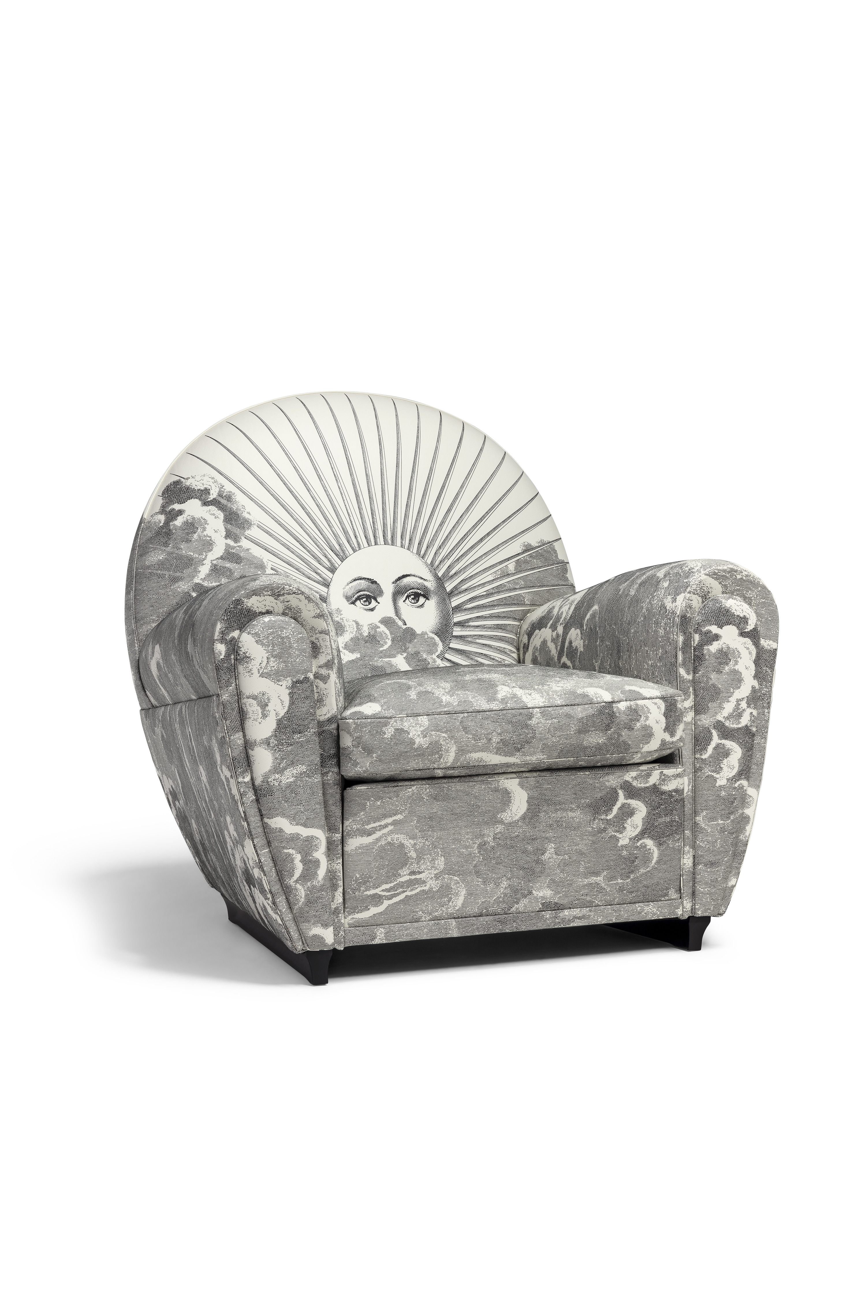Кресло Vanity Fair XC Imagine Edition, пронумерованное индивидуально и обтянутое тканью Pelle Frau® с напечатанным узором FornasettiSole e Nuvole, выпущено ограниченной серией из 50 экземпляров. Каждое кресло поставляется с уникальным кожаным чехлом и подписанным сертификатом подлинности.