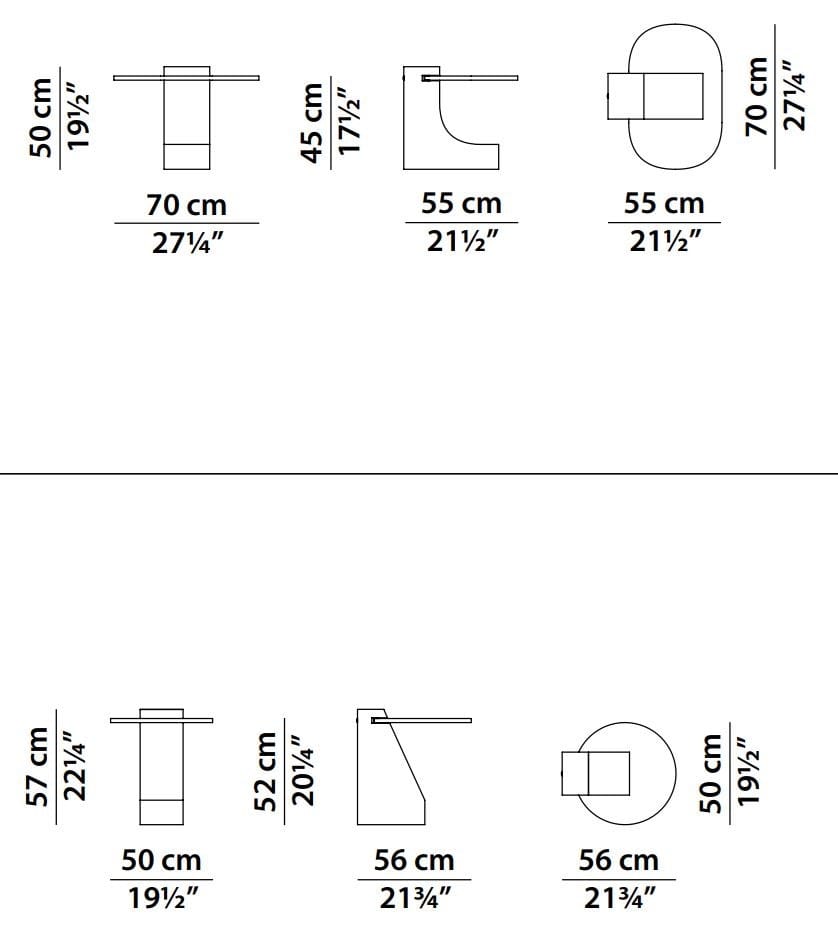 Основание из цельного мрамора Bianco Gioia или Rosso Lepanto (в зависимости от размера), с водоотталкивающей защитной пропиткой. Вставки из металла с латунной отделкой (в моделях 55x70 h50 и 56x50 h57). Столешница из литого стекла, созданная по уникальной технологии с нарочито неровной фактурой. Натуральные дефекты мрамора (трески, прожилки и т.д.) могут быть заделаны смолой и не считаются браком.