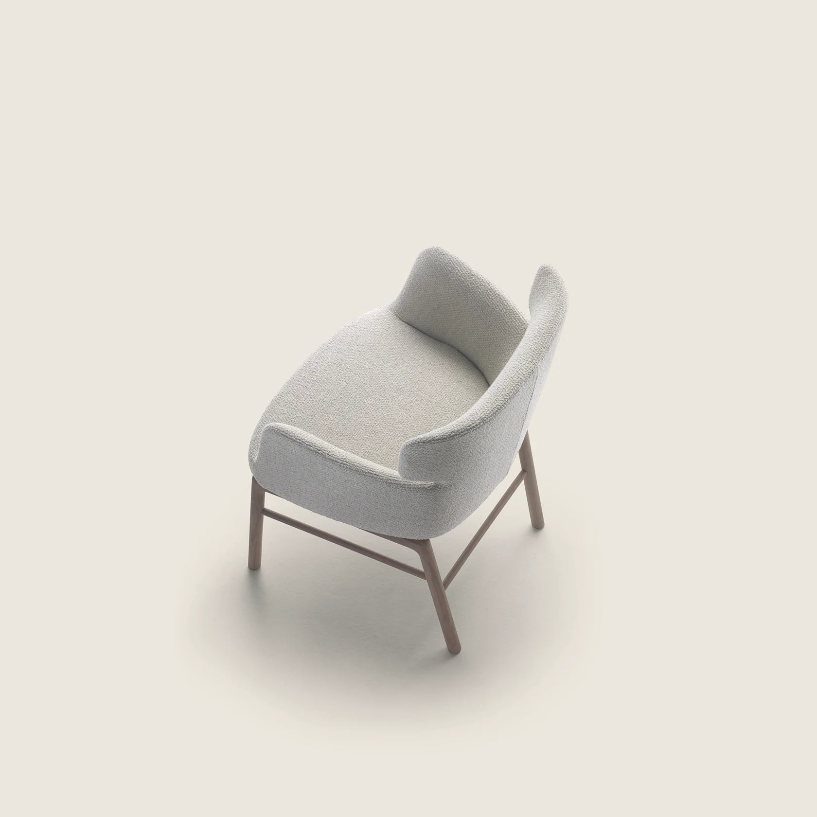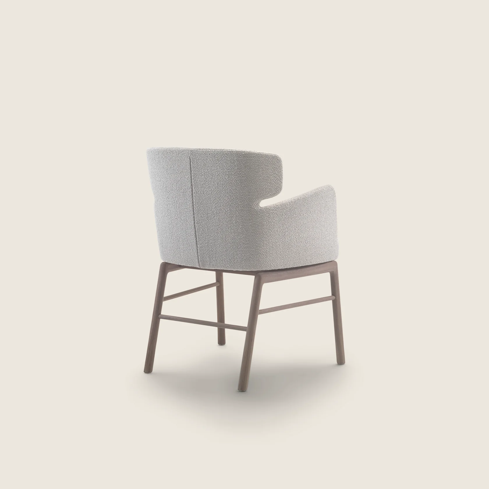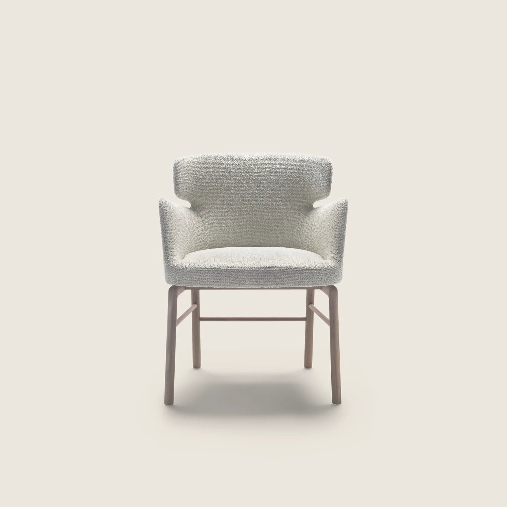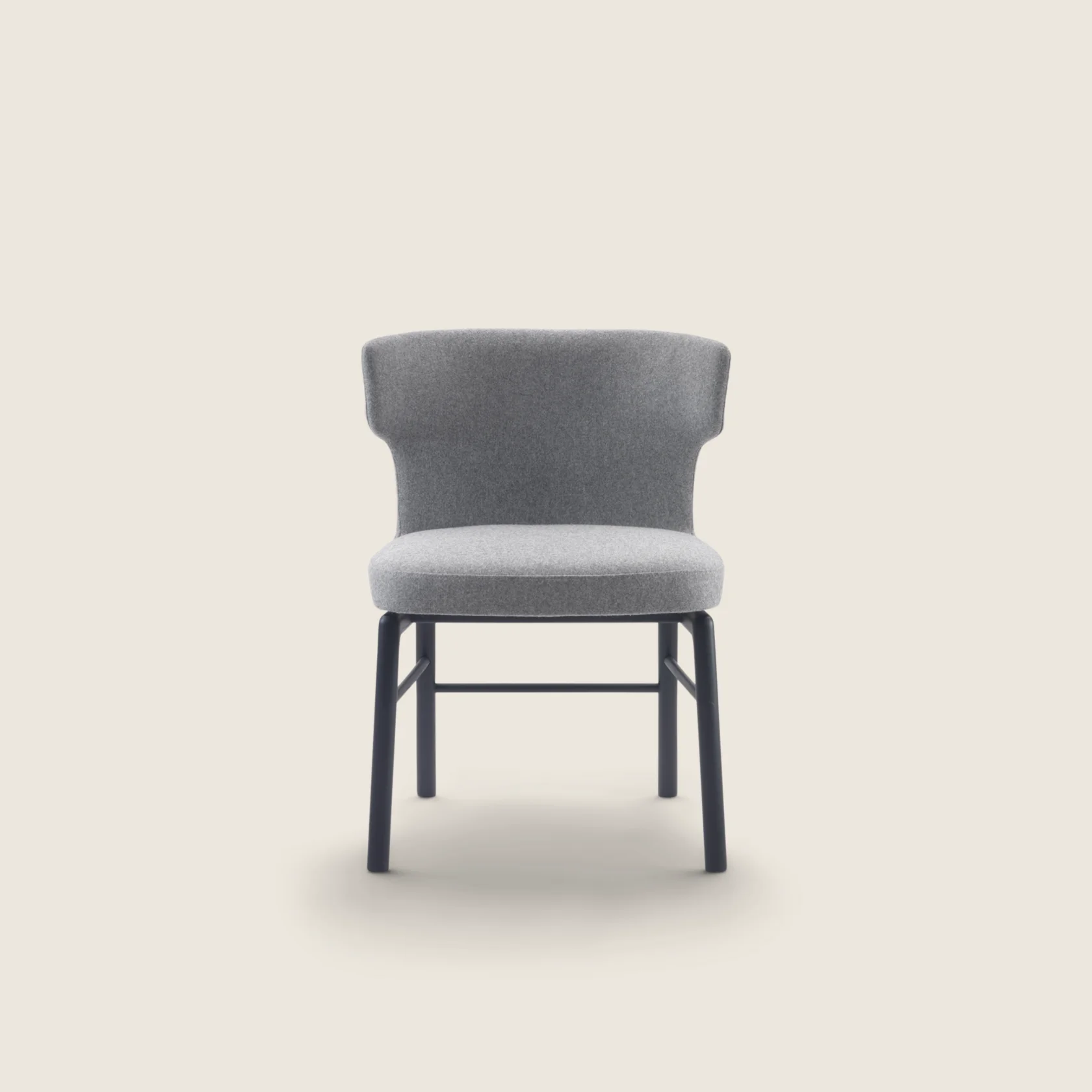 Особенности: Стул с обтекаемыми линиями и сбалансированными пропорциями, обеспечивающий высокий уровень комфорта. Обивка доступна в различных тканях и кожах, что позволяет адаптировать стул под различные стили интерьера.