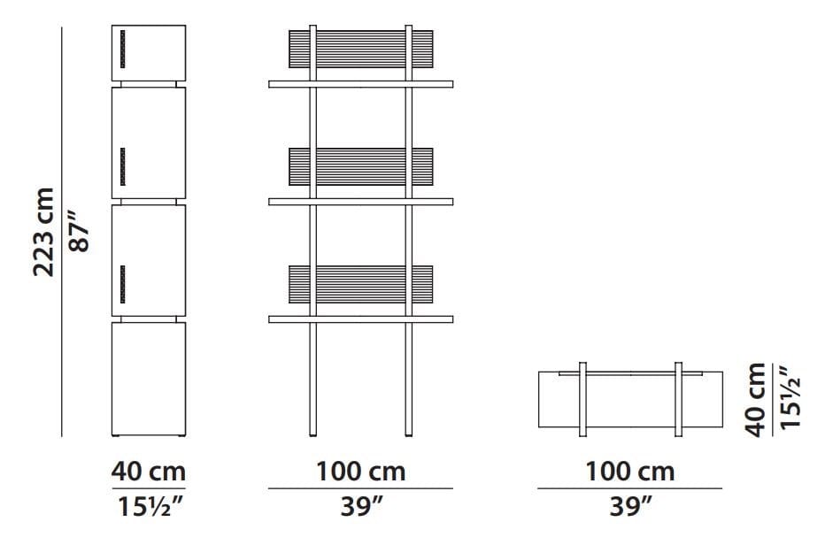 Полки и боковины: внутренняя алюминиевая структура, облицованная пластинами из полированного вручную латуни с прозрачным покрытием.