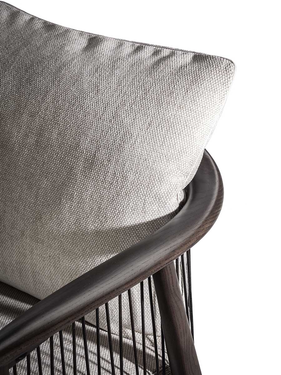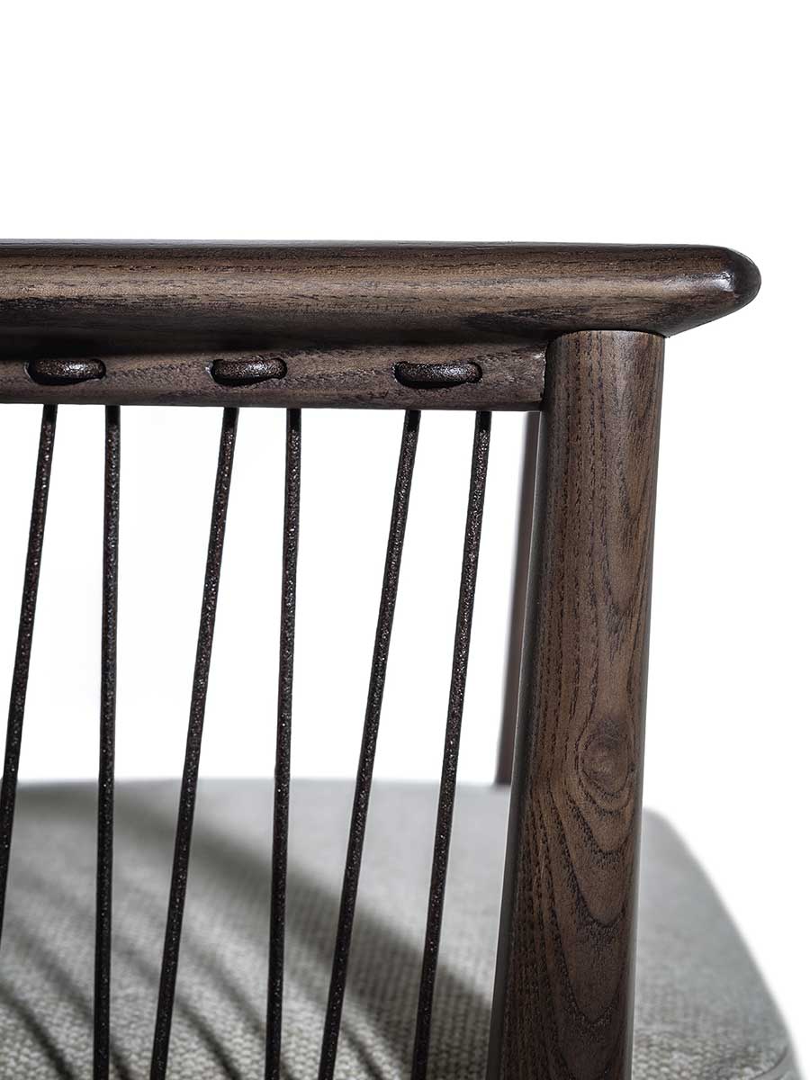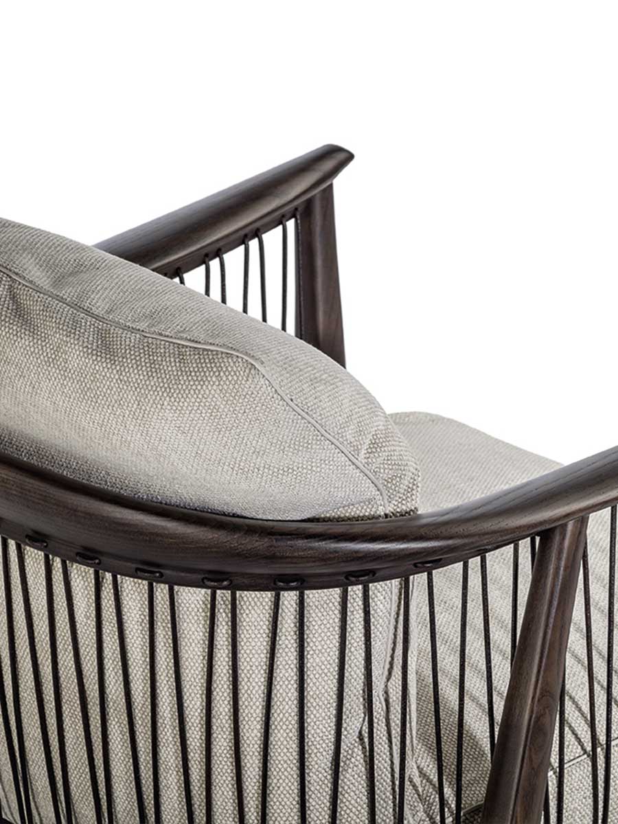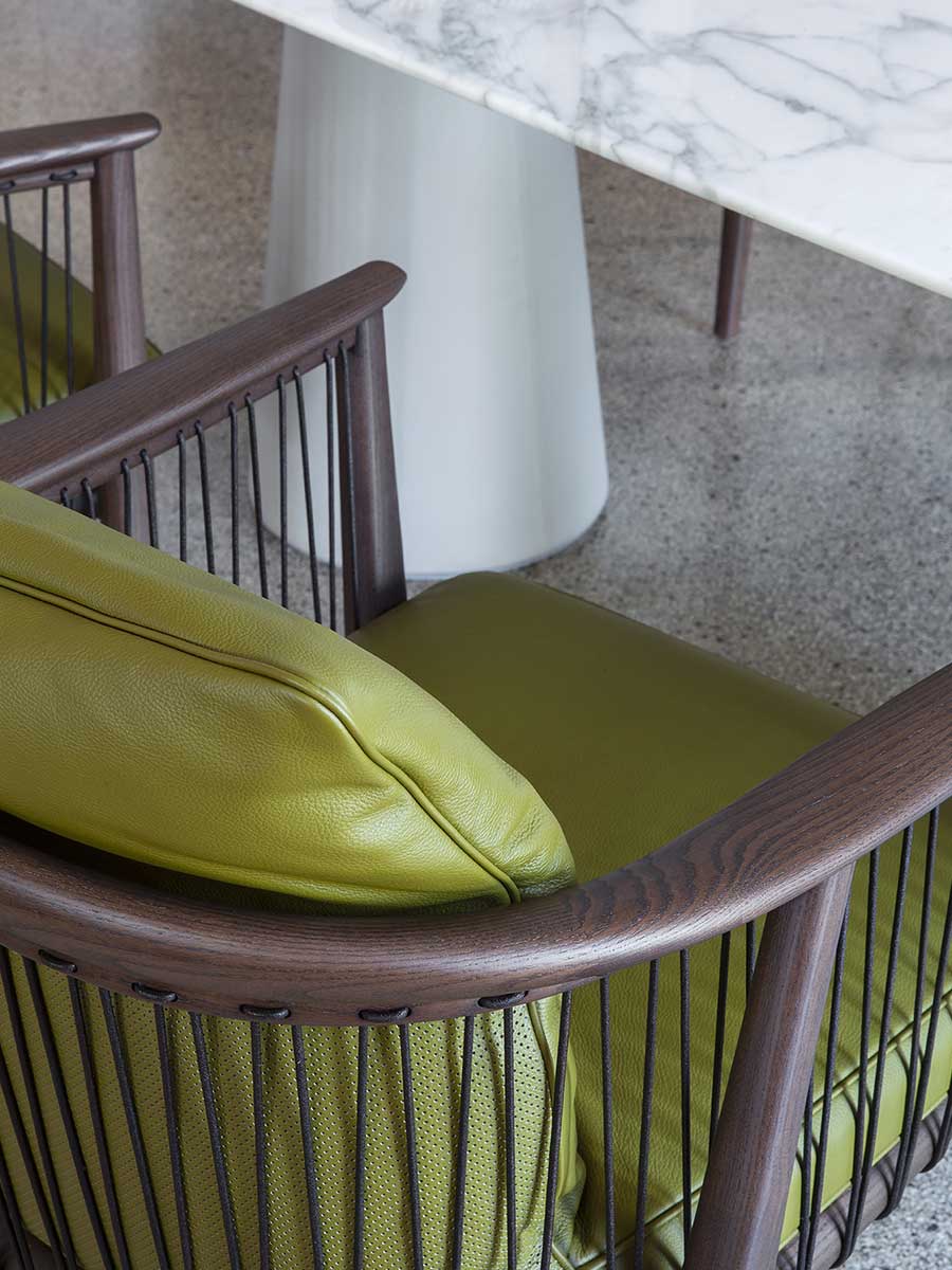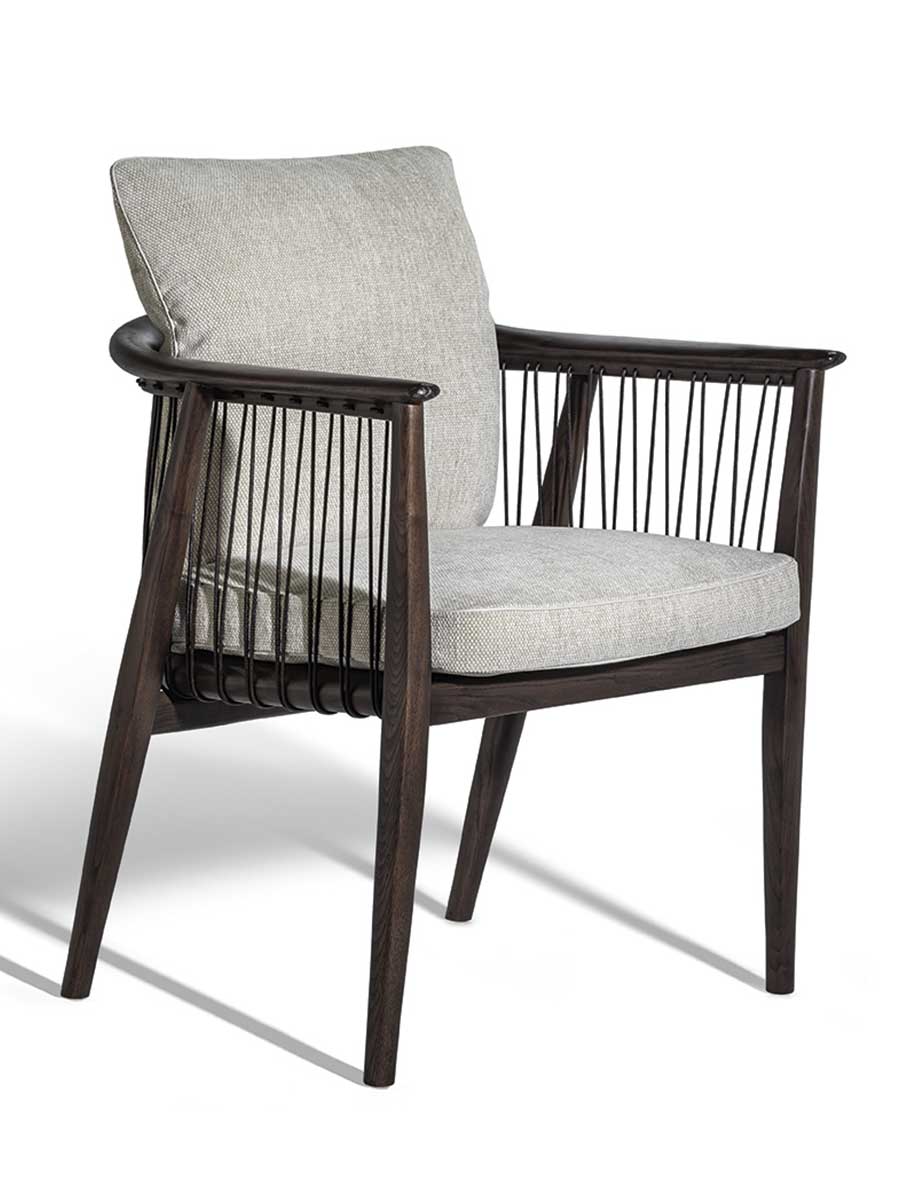 Каркас кресла Viola изготовлен из массива ясеня цвета мокко или венге и украшен переплетением шнурков из тёмно-коричневой или натуральной кожи. Пружинная система сиденья состоит из эластичных ремней. Сиденье и спинка оснащены мягкими подушками. Подушка сиденья наполнена пенополиуретаном и синтепоном, а спинка — пухом и имеет вставку из пенополиуретана. Две подушки образуют единое целое и крепятся к каркасу двумя кнопками. Съемная обивка кресла Viola выполнена из кожи Pelle Frau® или ткани.