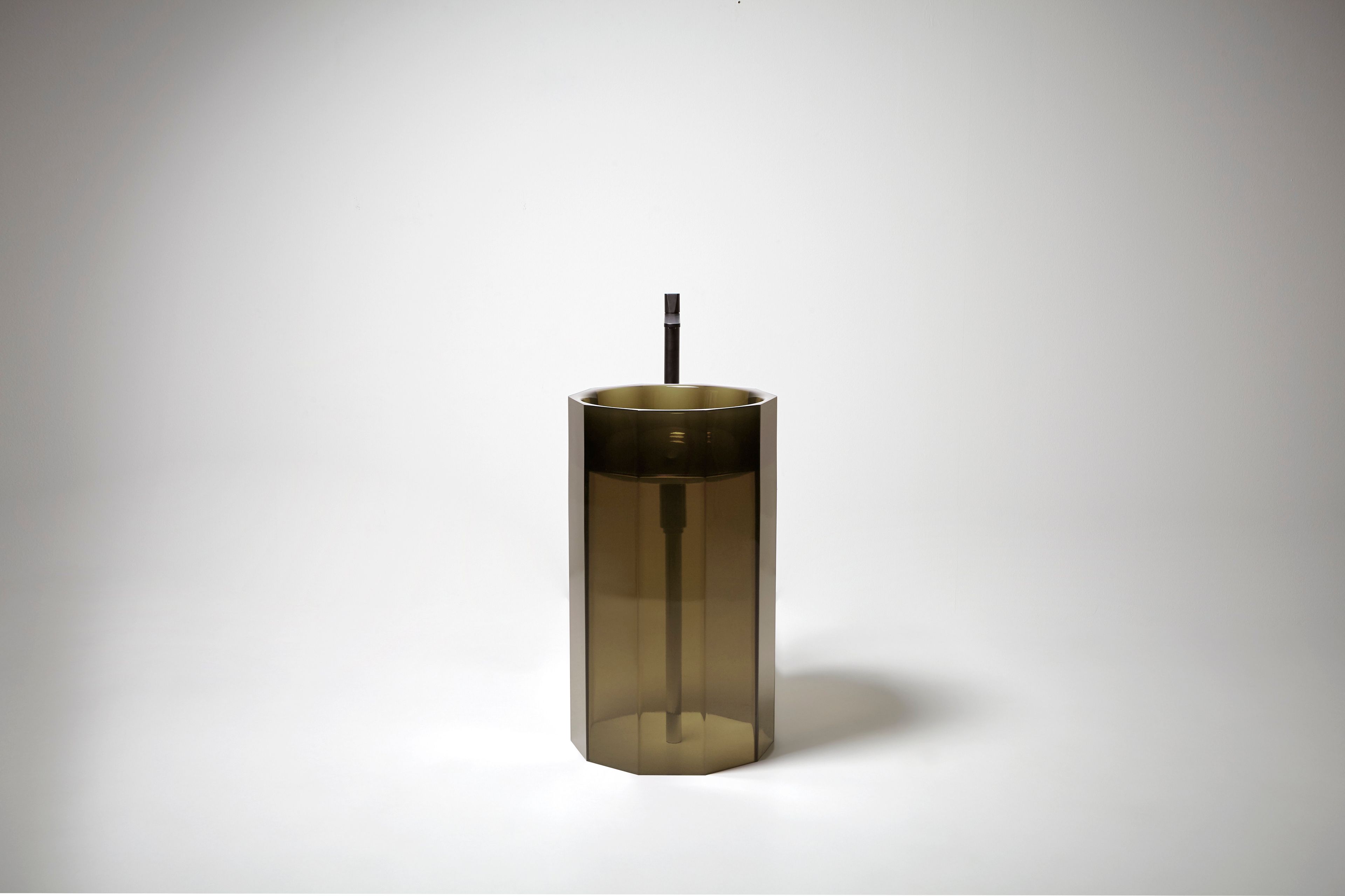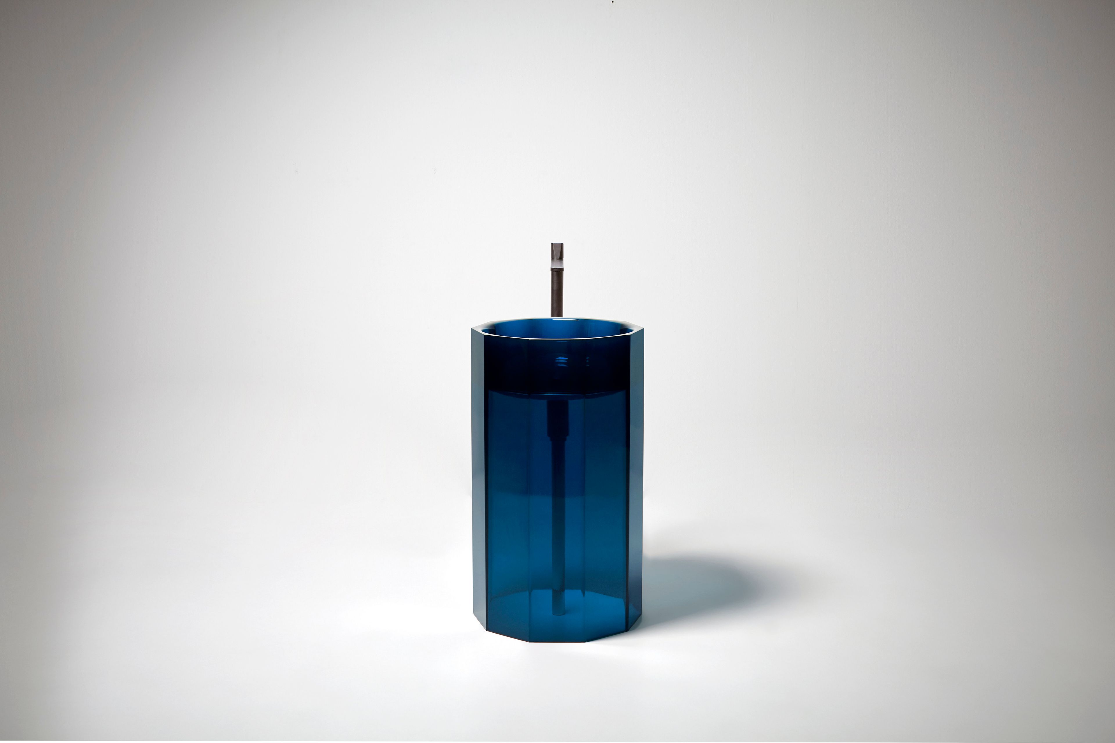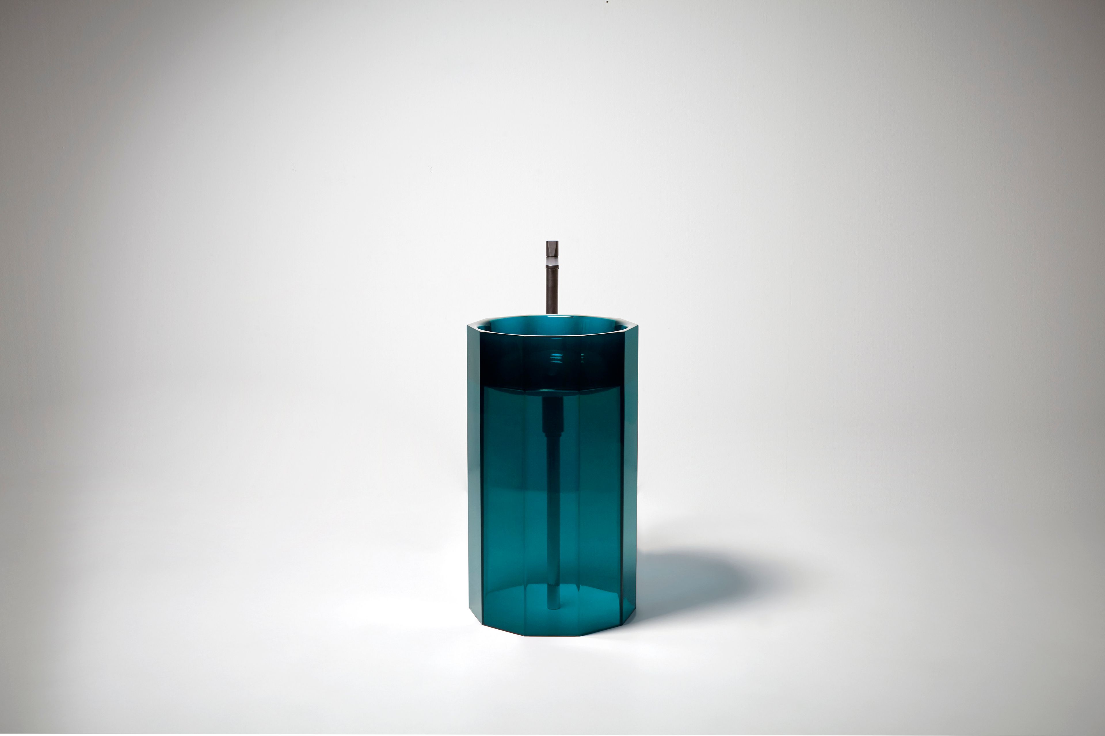 Десятиугольная форма придаёт изделию особую архитектурную выразительность, не отвлекая от главного — движения воды. Напротив, такой дизайн усиливает ощущение природной стихии, заключённой в объём, который воспринимается как драгоценный сосуд.