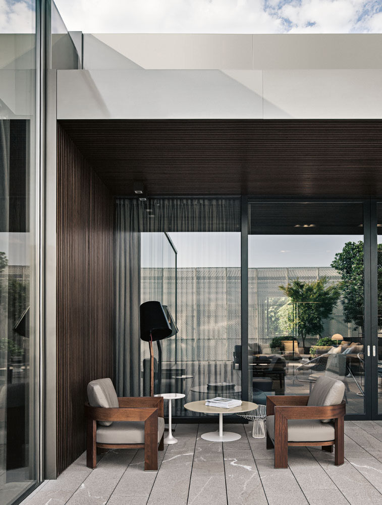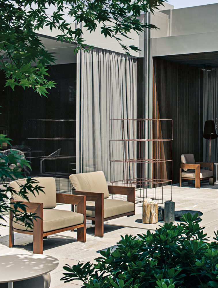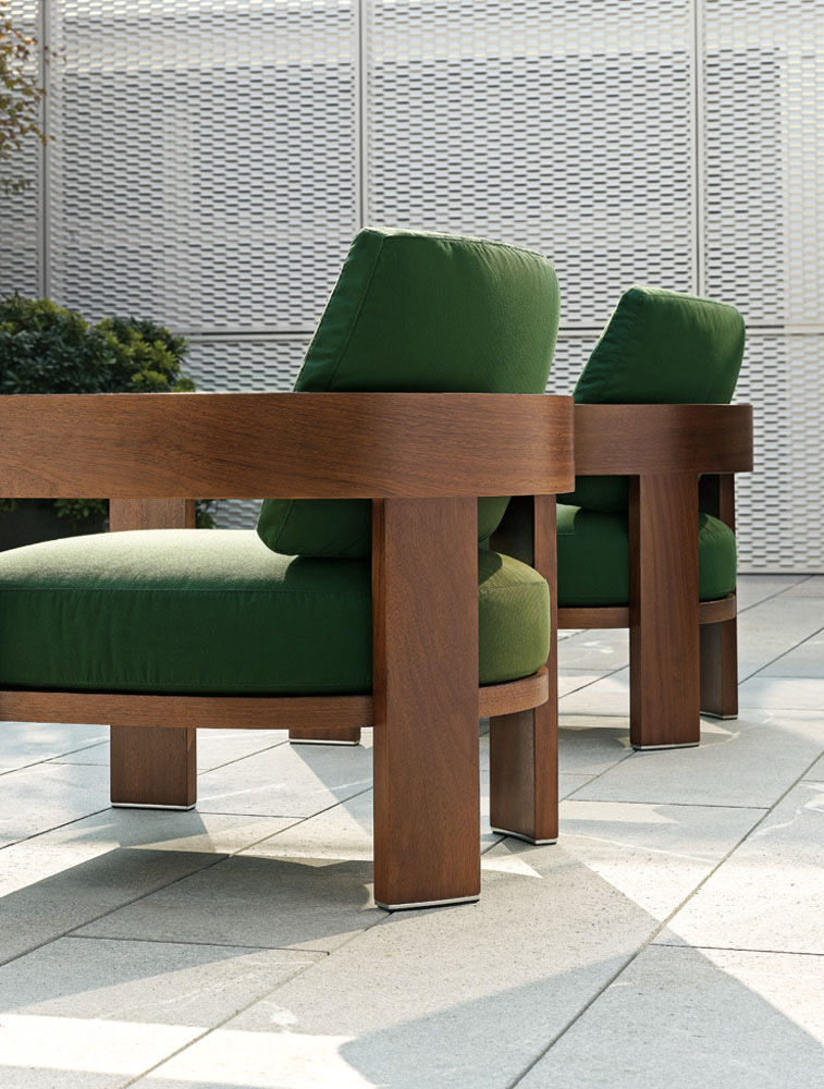 Warhol Iroko Outdoor — кресло с чёткой архитектурной формой и каркасом из массива дерева ироко. Этот материал славится устойчивостью к влаге и температурным перепадам, что делает кресло идеальным для открытых пространств. Обивка — из текстиля, предназначенного для улицы, с возможностью выбора цвета. Детали из нержавеющей стали и продуманная эргономика завершают изысканный облик.