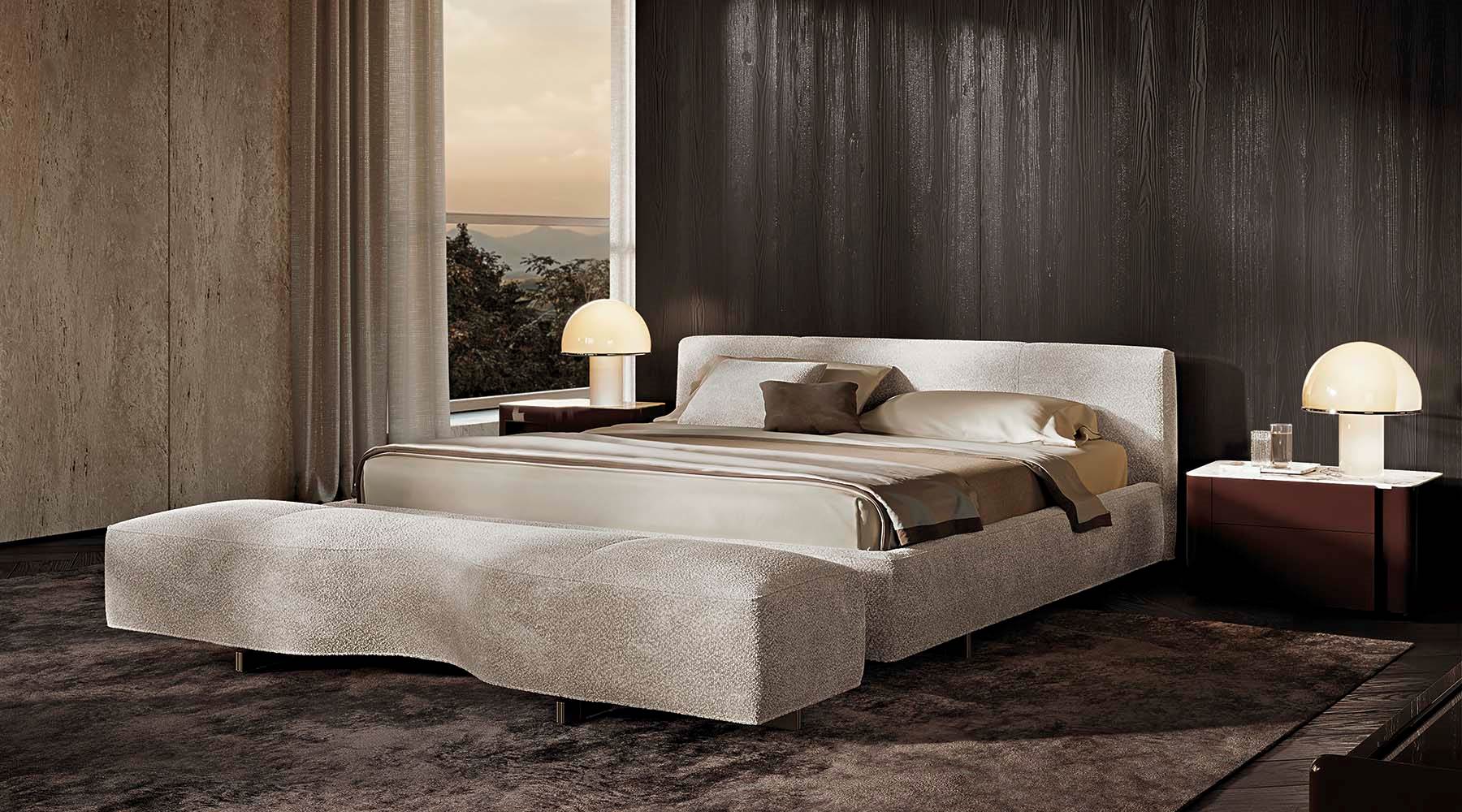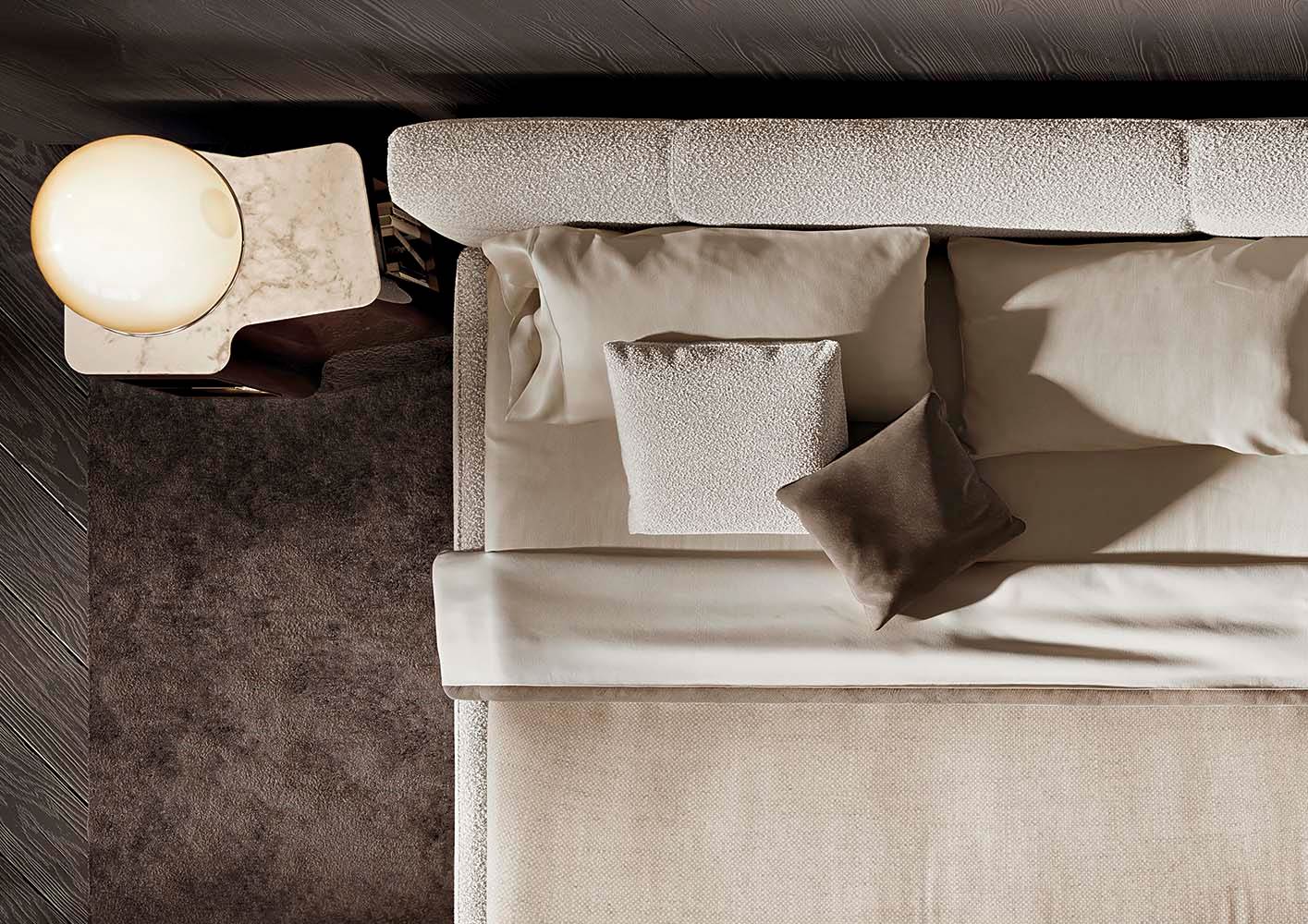 Yves Bed — лёгкая и современная кровать с утончённой геометрией. Упрощённое прямое изголовье с мягкой обивкой обеспечивает комфорт в положении сидя. Металлическое основание скрыто под низкой мягкой юбкой, создающей впечатление воздушности. Модель хорошо сочетается с мягкой мебелью коллекции Yves.