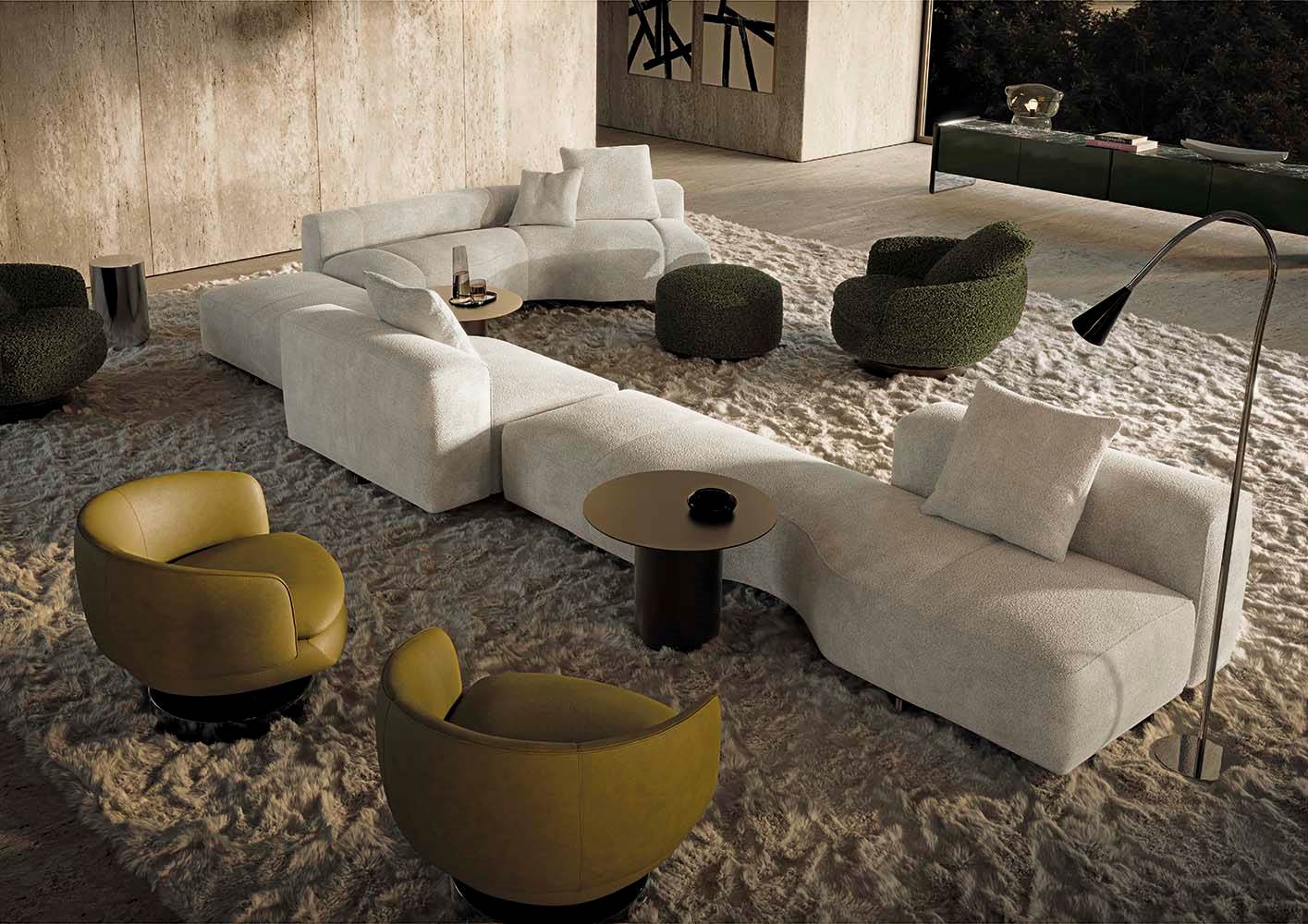 Yves — это диван с изысканным силуэтом и архитектурной точностью линий. Его сдержанный, но выразительный дизайн нацелен на создание сбалансированного и современного пространства. Благодаря продуманным пропорциям и мягкому наполнению, он сочетает визуальную лёгкость с полноценным комфортом. Тонкая опора подчёркивает «парящую» посадку.